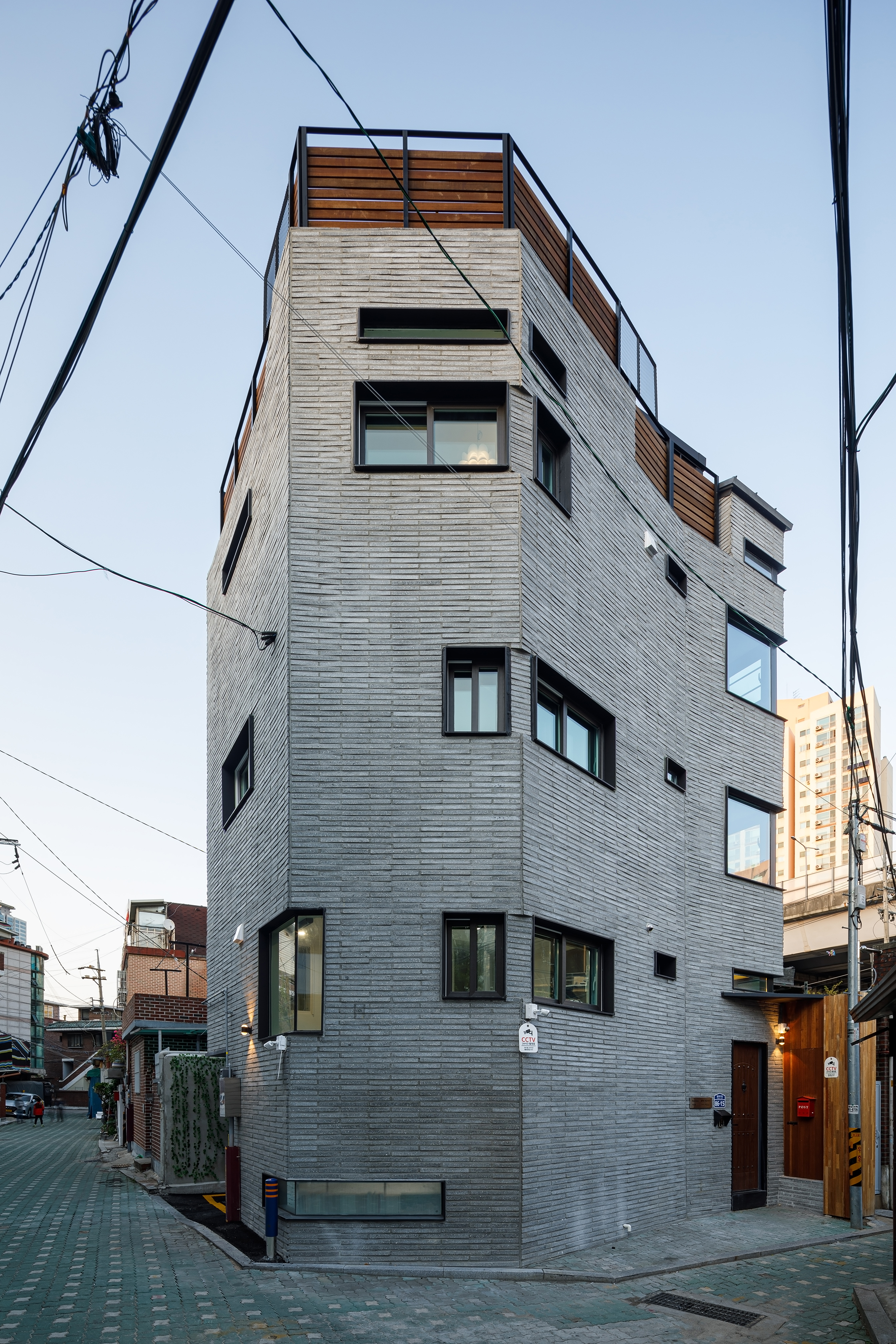 “Bigining Yoon” is a detached house with a son of an elementary school student and a double-income couple on a 53m2 site facing a narrow road in Jongam-dong's residential area. Since grandmothers..