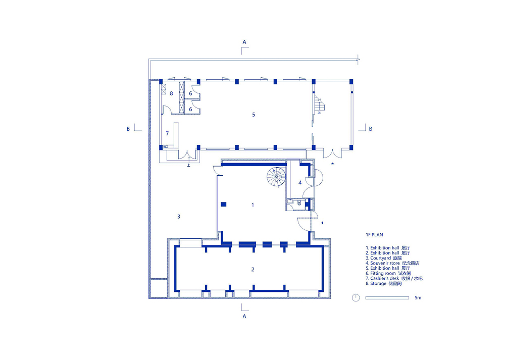 오래된 건물의 형태는 여전히 볼 수 있다. 남쪽에서 북쪽으로 배열된 3개의 블록으로 구성되어 리드미컬한 계단 형태를 이루고 있는데, 우리는 이것을 층수에 따라 건물 1, 2, 3으로 정의한다. 1관은 정면에 창문이 많고, 내부는 5개의 독립된 공간으로 구분되어 있다. 2관 동쪽에는 큰 목련 나무가 있고, 건물 내부는 2층 높이의 공간이다. 북쪽의 3관 건물은 정면에 정사각형 창문이 배열된 사무실 공간으로 변형되었다.