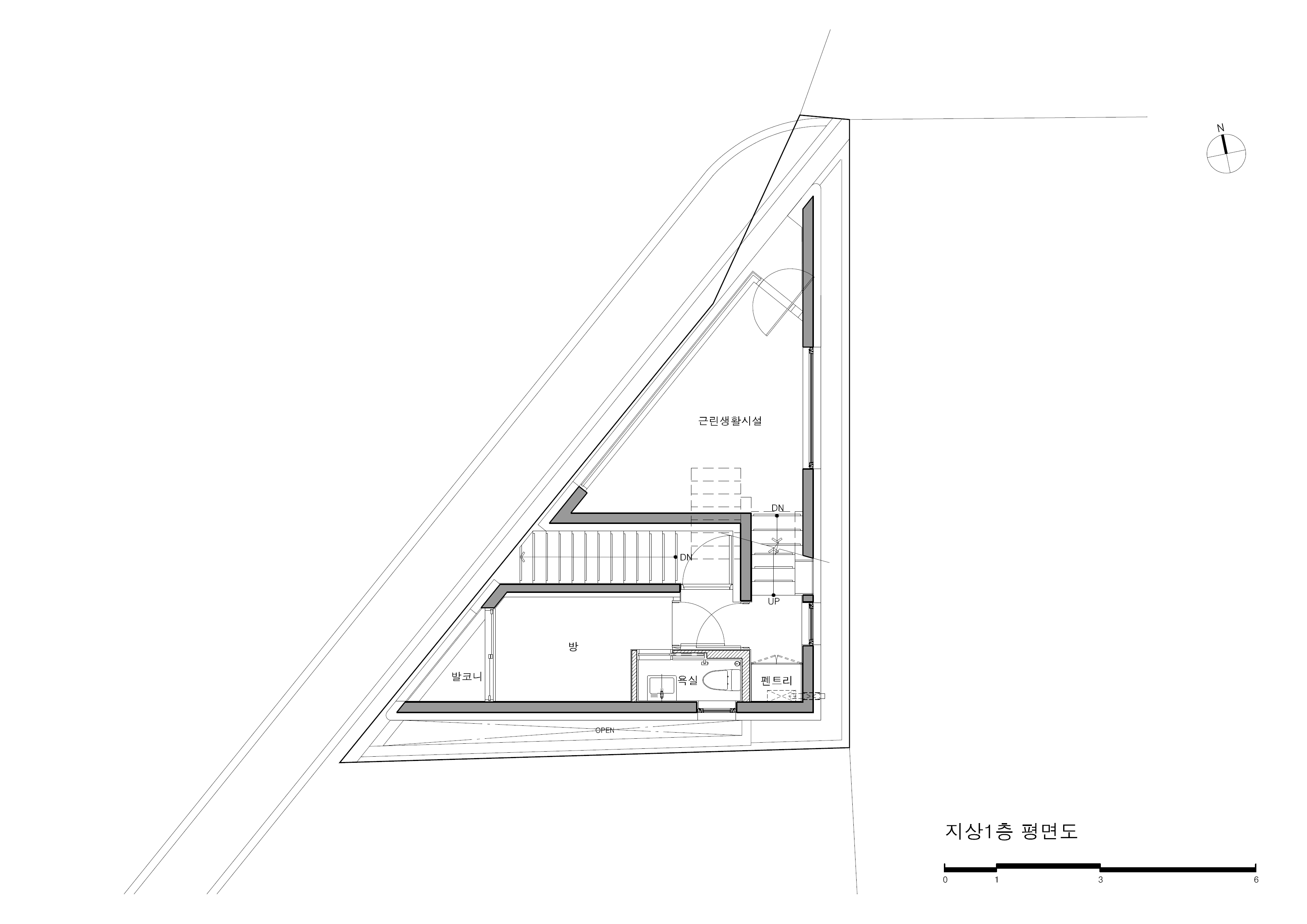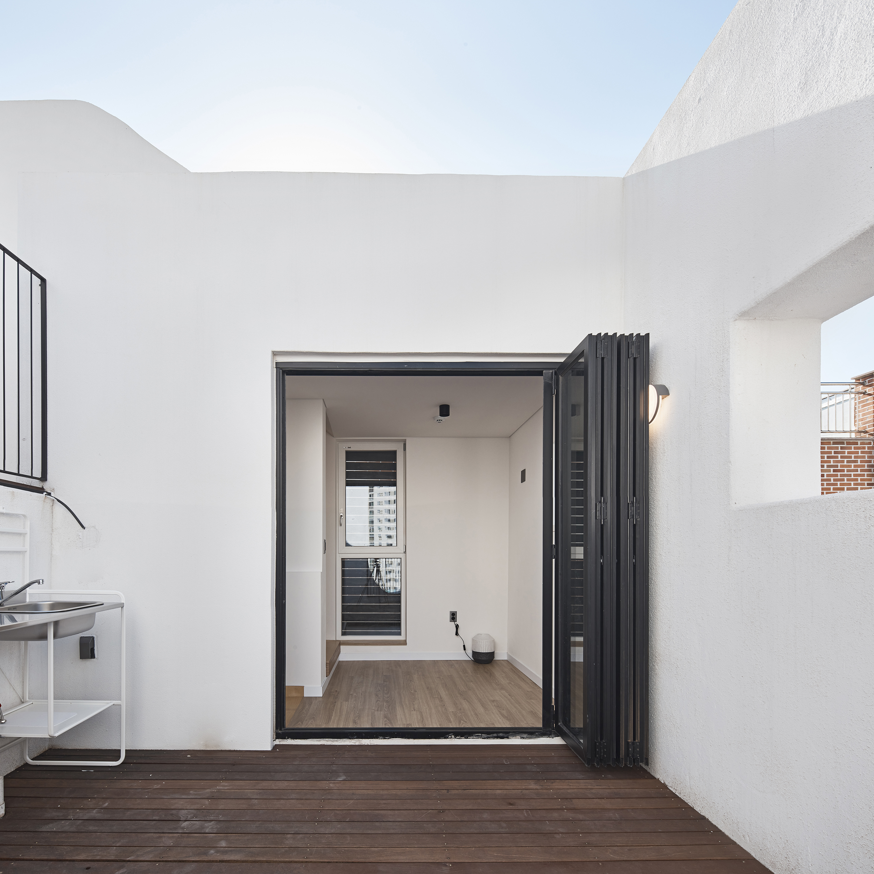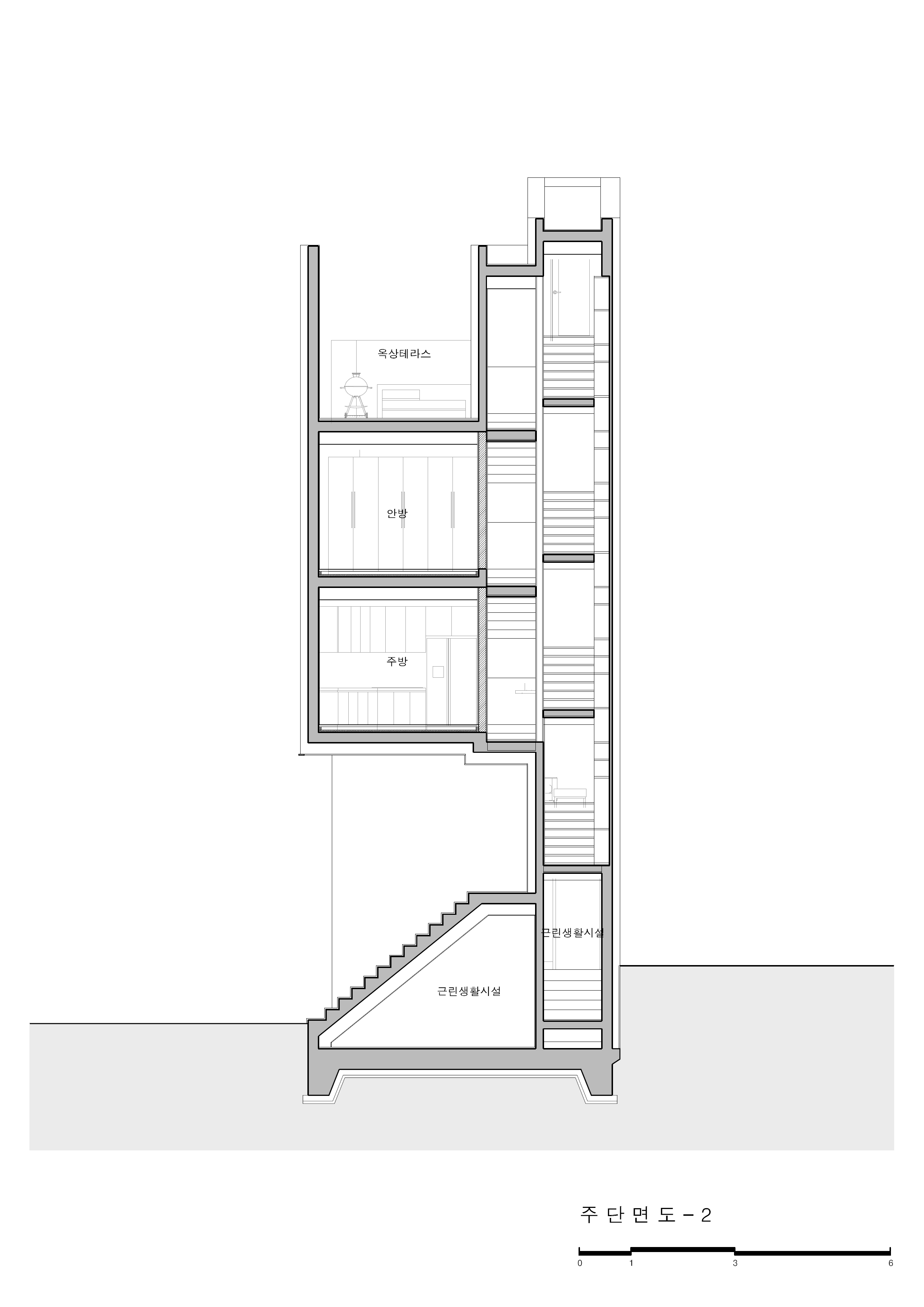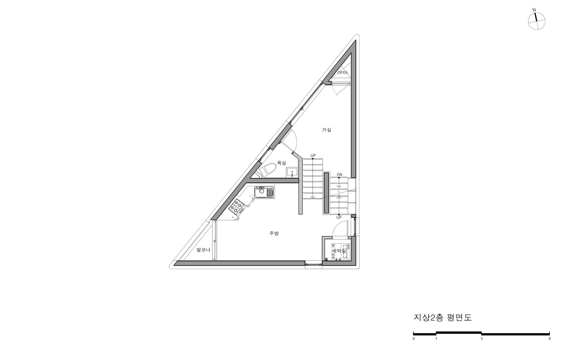 Bongcheon Yeonga(奉天聯家) is located on one side of Bongcheon Hill, at the corner of the road and at the intersection of the road, between the forests of five-story buildings, and is on 10-pyeong lot next to the sloping road. A beautiful streetscape that catches the curiosity and attention of residents while adapting to the existing city skyline was completed in a location where anyone passing by could see it but passed by without seeing it. In a limited space of 10 pyeong, a skip floor using stair landings connects the spaces above and below, and with 4 private rooms and 3 bathrooms, 3 generations from old parents to their children will live in the future.