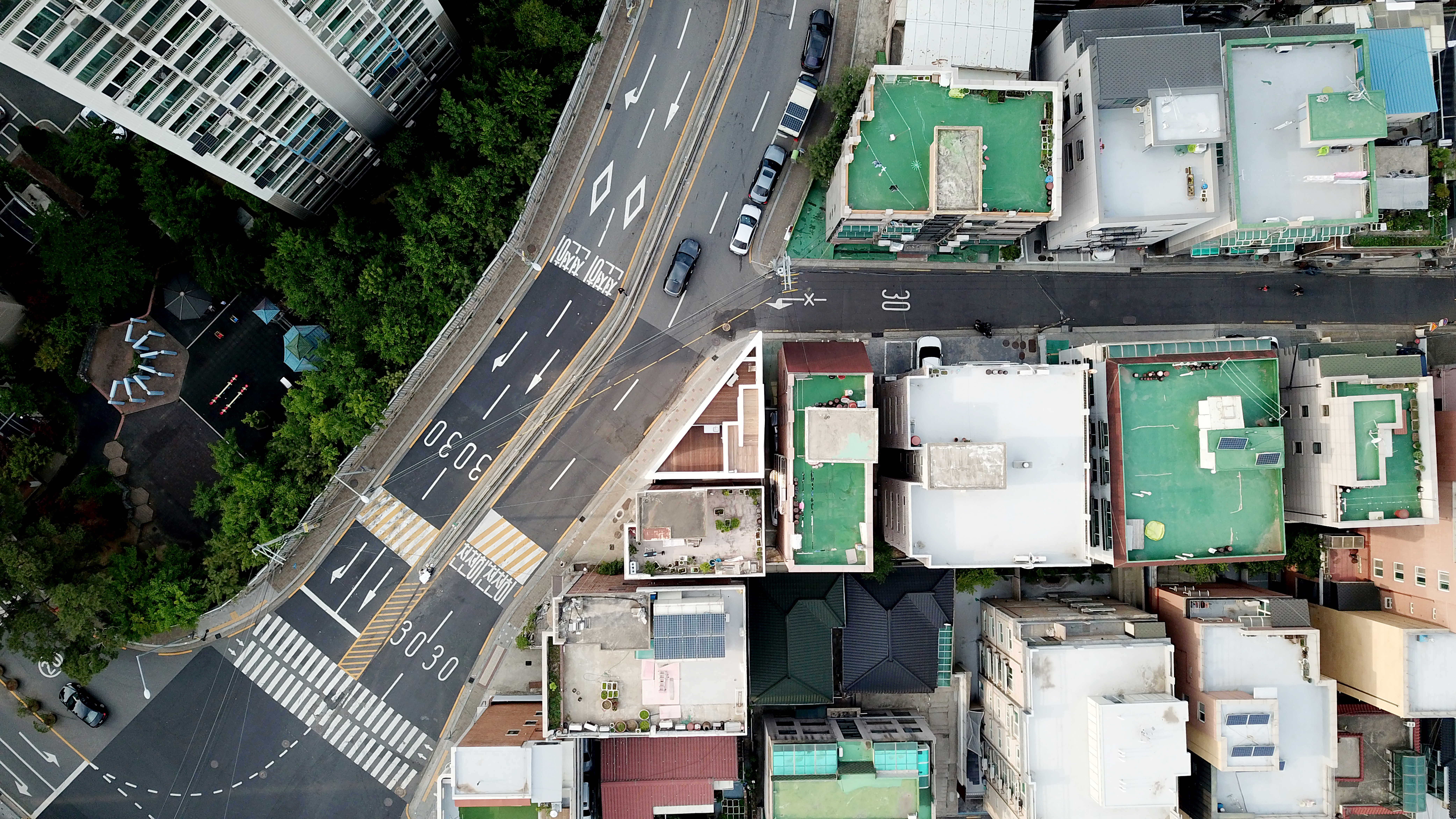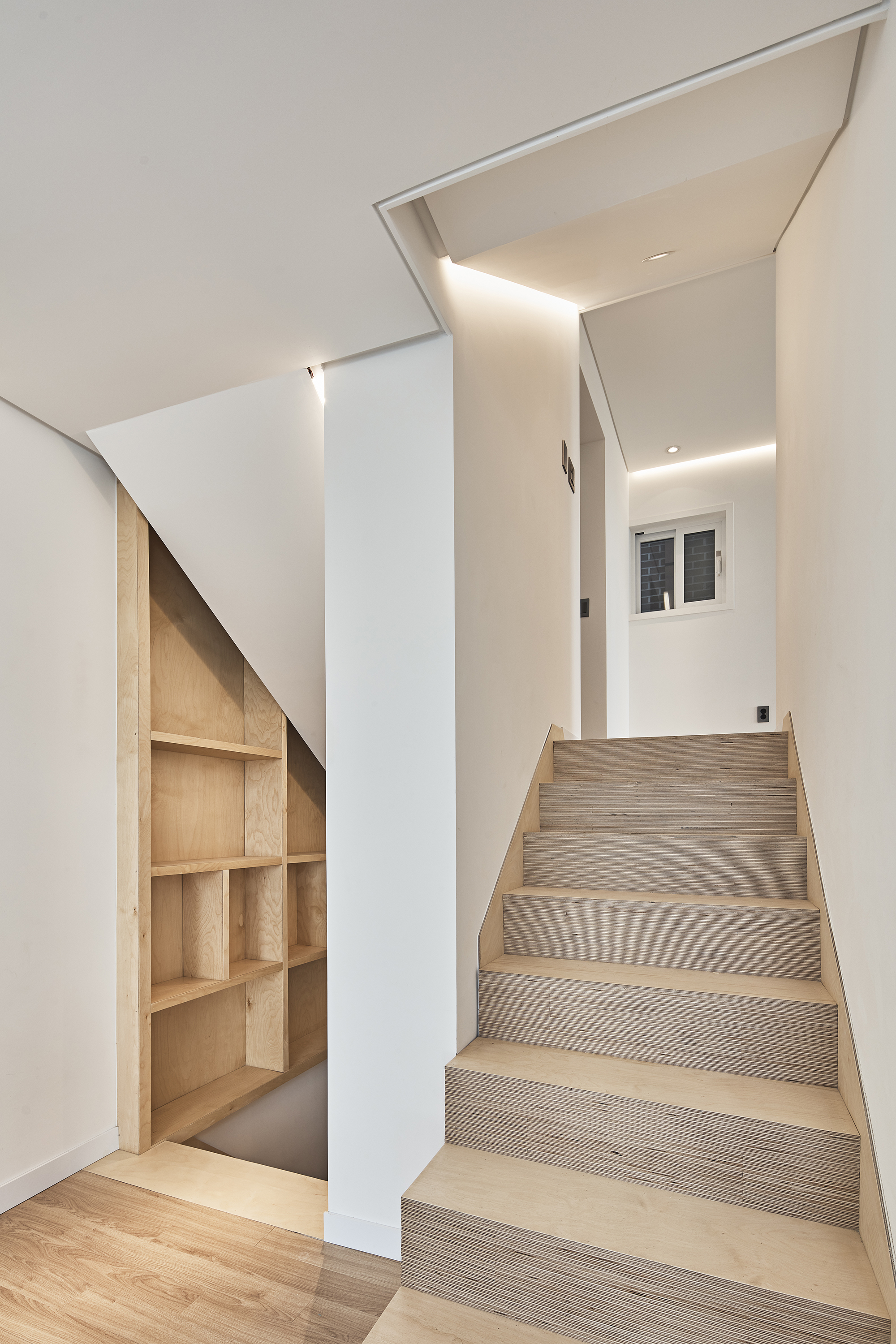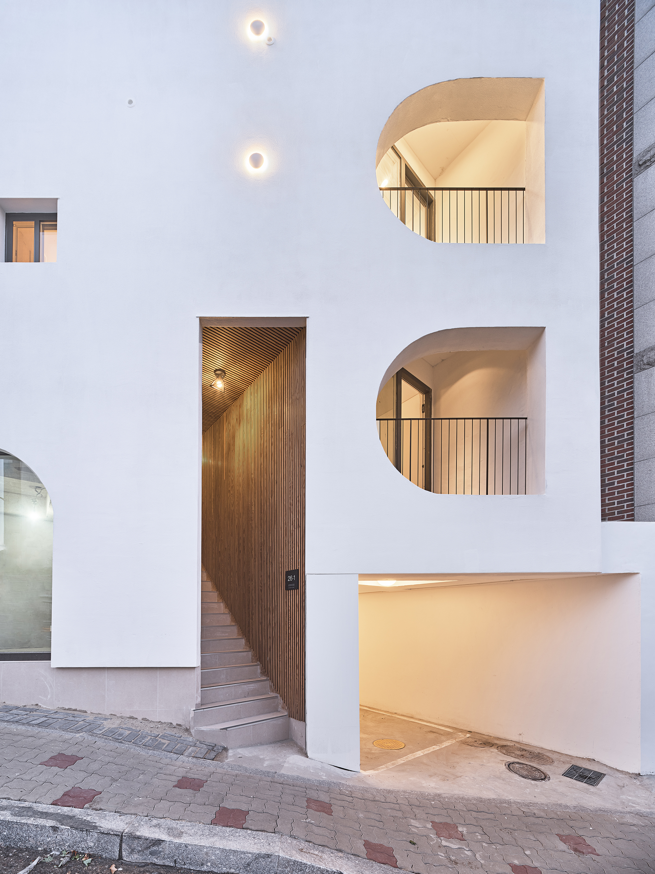 Bongcheon Yeonga(奉天聯家) is located on one side of Bongcheon Hill, at the corner of the road and at the intersection of the road, between the forests of five-story buildings, and is on 10-pyeong lot next to the sloping road. A beautiful streetscape that catches the curiosity and attention of residents while adapting to the existing city skyline was completed in a location where anyone passing by could see it but passed by without seeing it. In a limited space of 10 pyeong, a skip floor using stair landings connects the spaces above and below, and with 4 private rooms and 3 bathrooms, 3 generations from old parents to their children will live in the future.