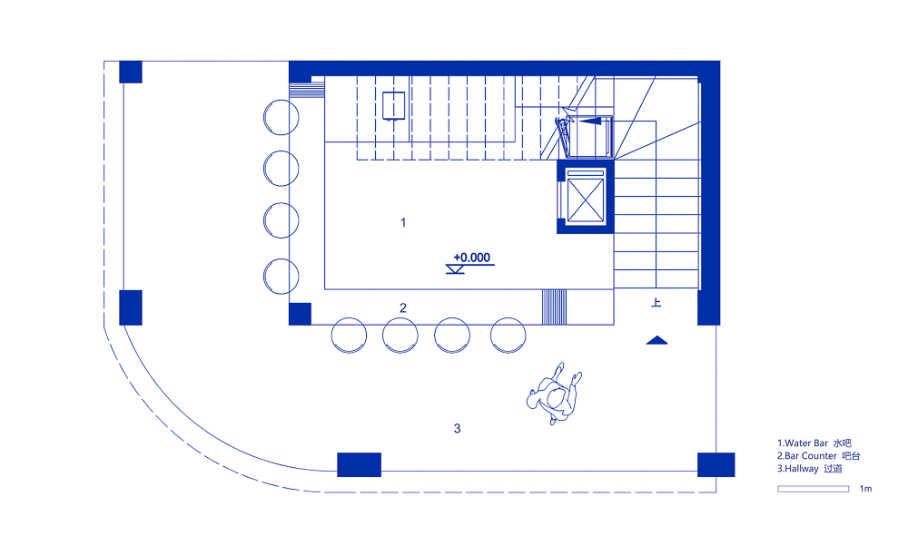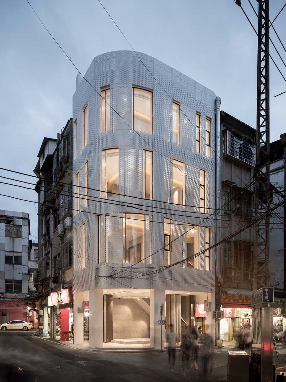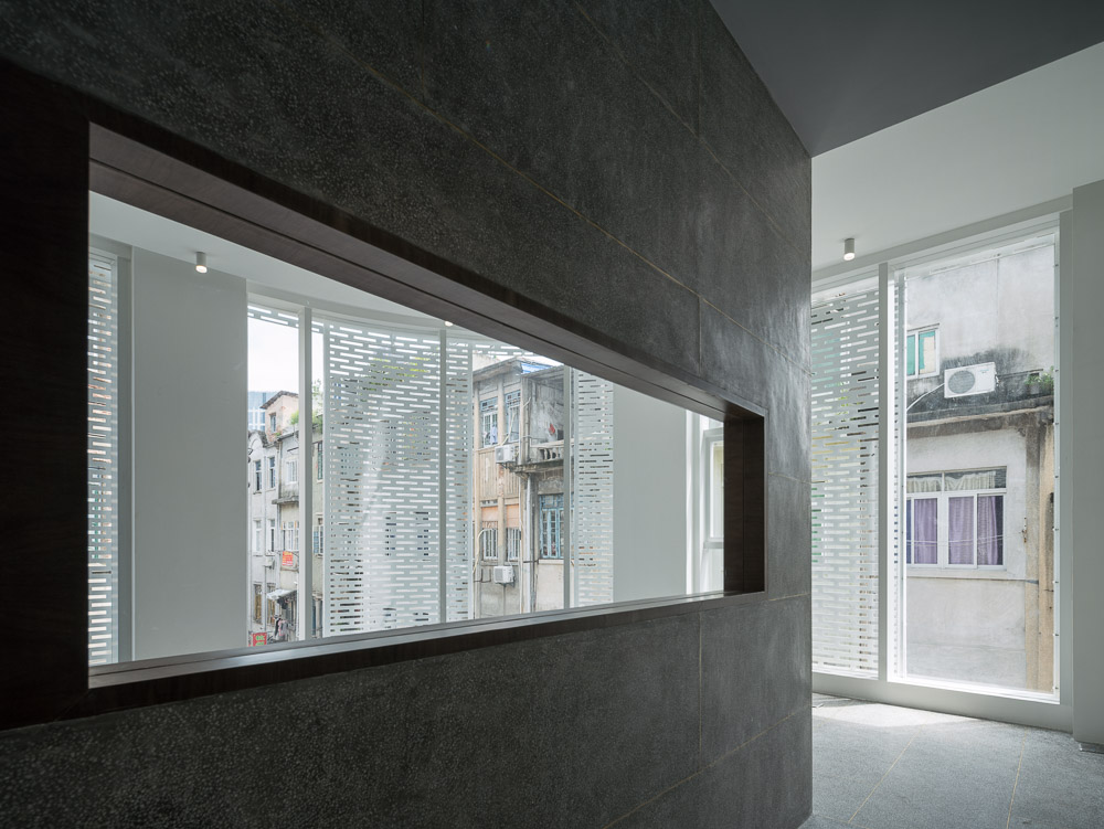 Interior design emphasizes the contrast of light and heavy, dark and light to the external facade. In addition, terrazzo is applied in the area of floor and wall, and consequently forms a grey core vertically running through 5 floors. In the evening, the livest time in the Zhongshan Road area, it can be seen even in the distance as a self-luminous volume with massive inner core and lightsome frock.