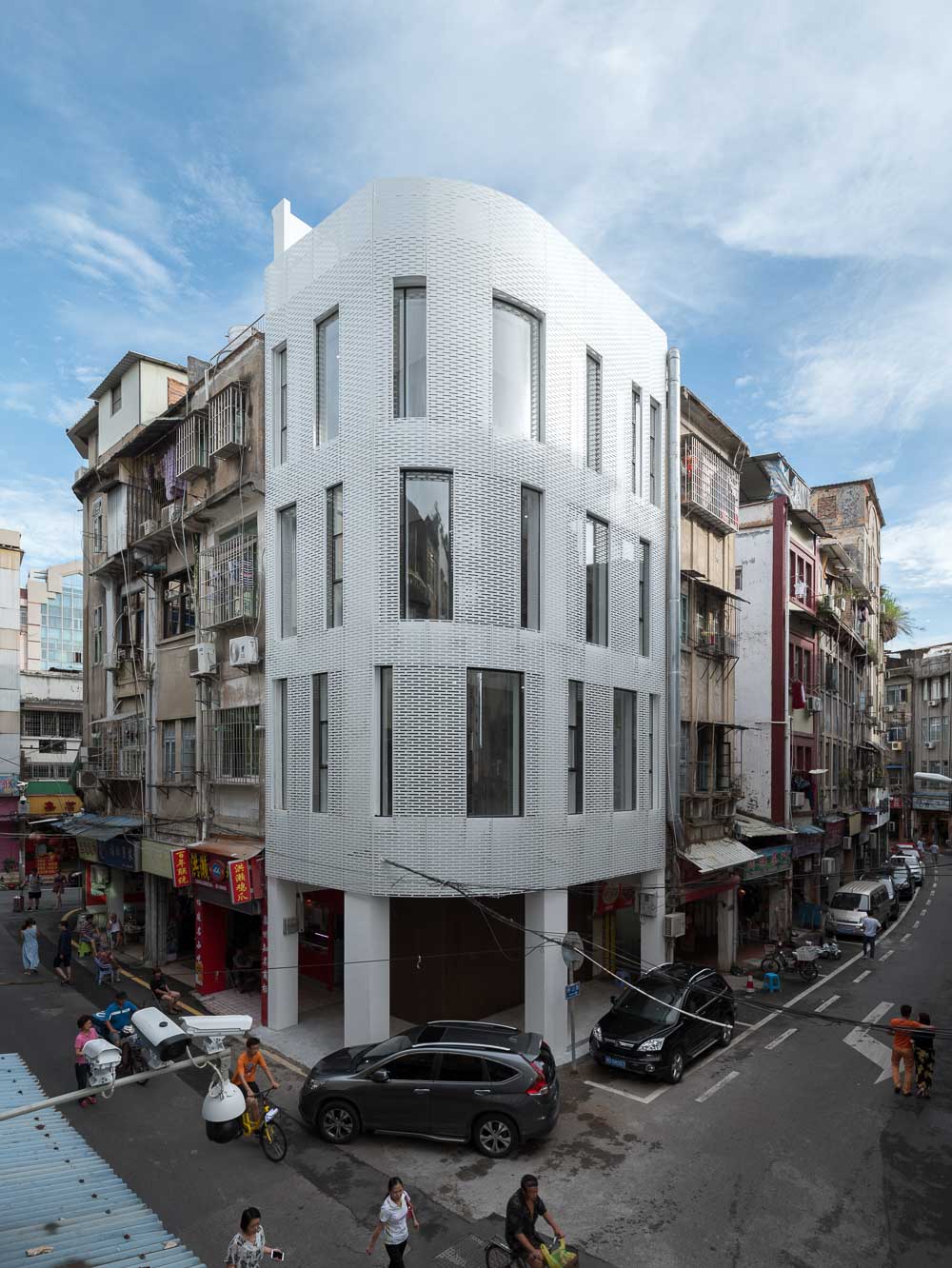 대지의 맥락 및 건축적 기능은 기능적 요구 사항을 만족시키면서 동시에 설계시, 고려해야 하는 중요요소다. 주변의 모든 건물은 아케이드이지만, 도로 측 입면은 오랜 시간과 유지 관리 부족으로 다소 지저분해 보였다. 새롭게 디자인된 입면은 옛 거리에 경쾌하고 활기찬 분위기를 불어넣고, 전통적인 건축양식과 새로운 내적 관계를 형성한다. 따라서 건축가는 파사드의 기존 디자인을 알루미늄 격자로 수정하고 샤먼 현지 붉은 벽돌 크기를 모듈로 채택하여 현대적인 재료로 전통적 형태로 표현하며, 오래된 골목에 새로운 감각을 더했다. 또한, 건축가는 일일 일조량 데이터에 따라 변화되는 값을 계산하여 격자에 있는 개구부의 리듬을 형성하고, 단열과 차양을 동시에 해결했다.
