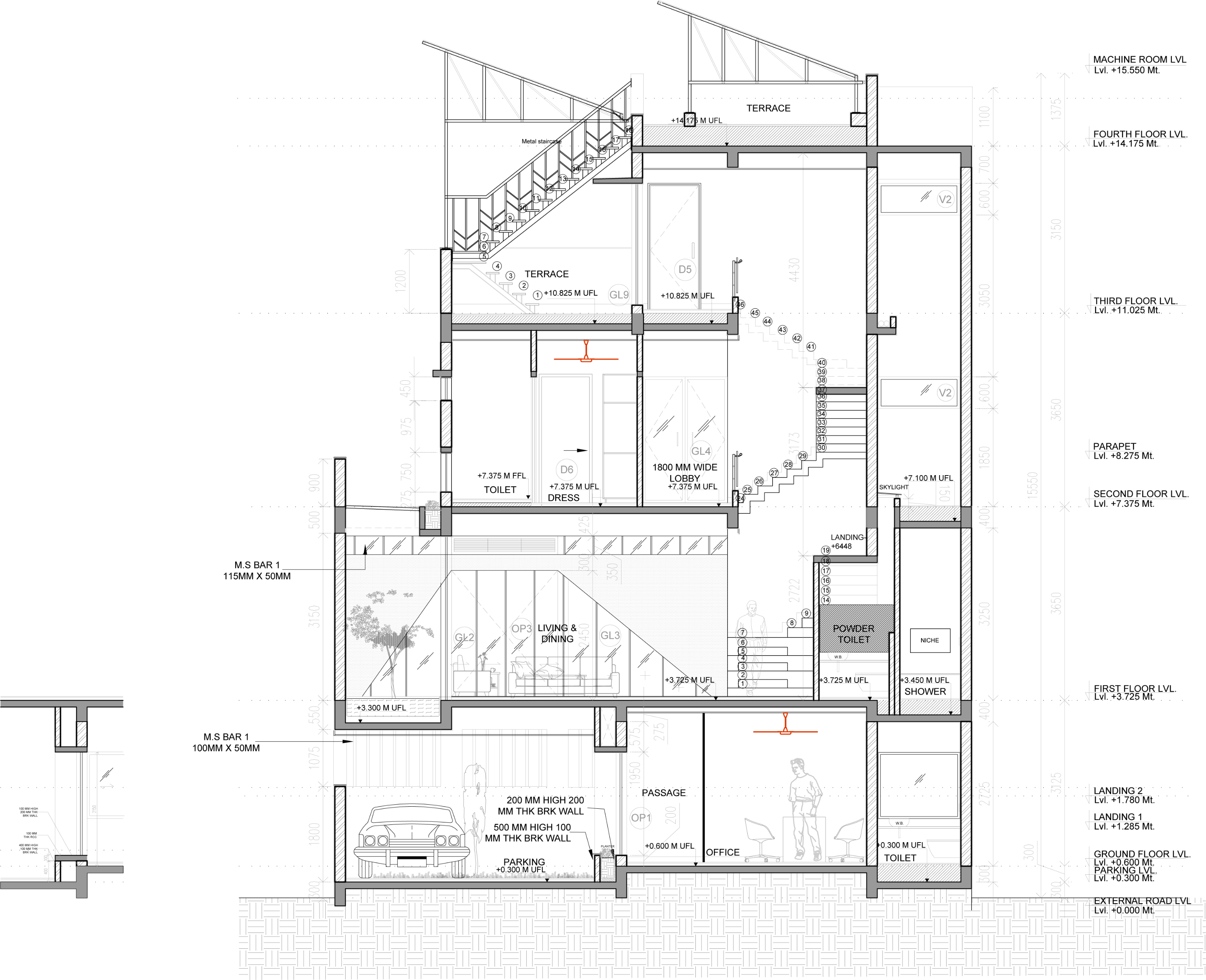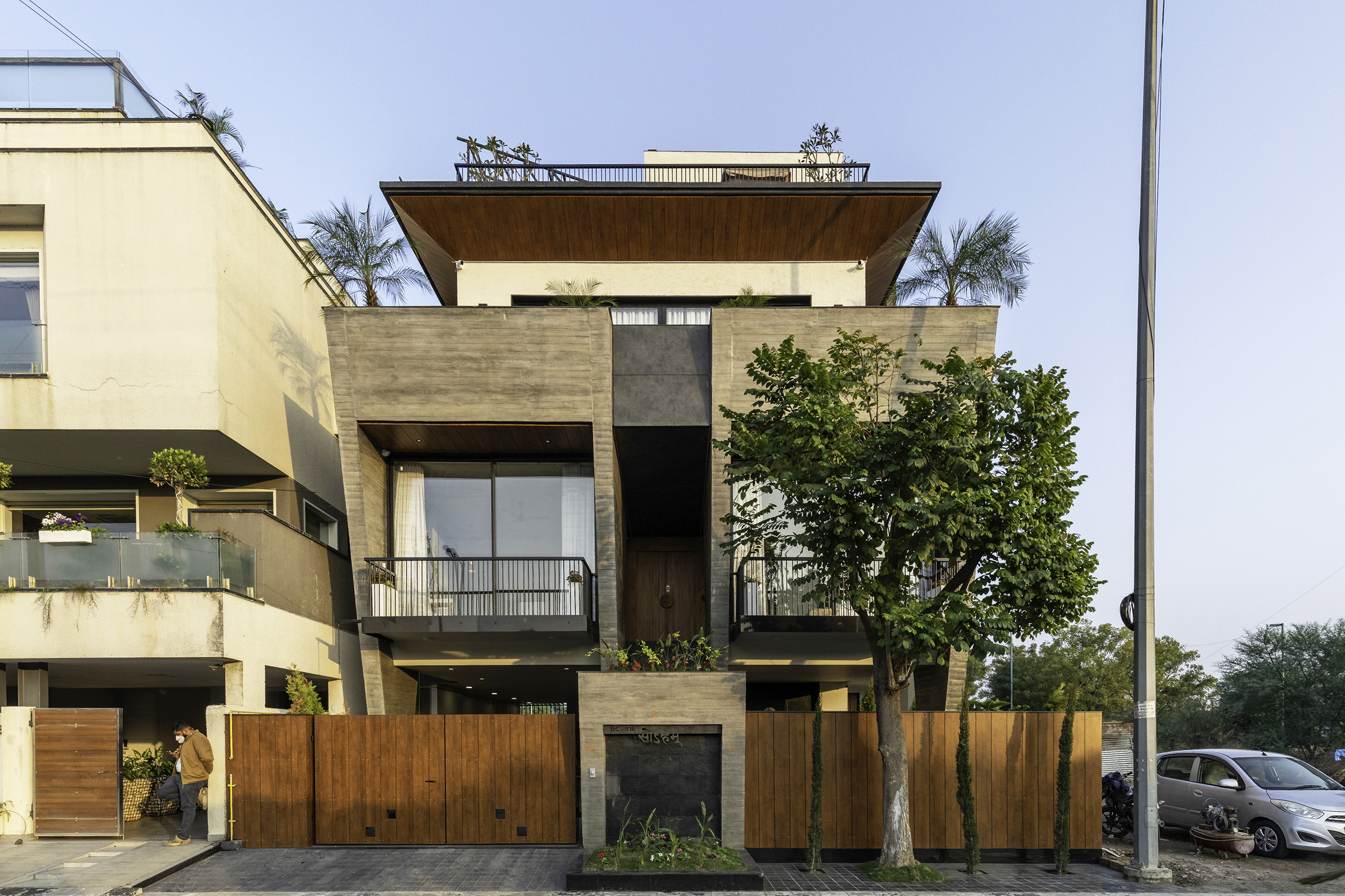 The design brief was to build a setting, grounded with texture and colour imbibing a calm and minimalistic environment. At first glance the four vertically stacked triangular planes of concrete whi..