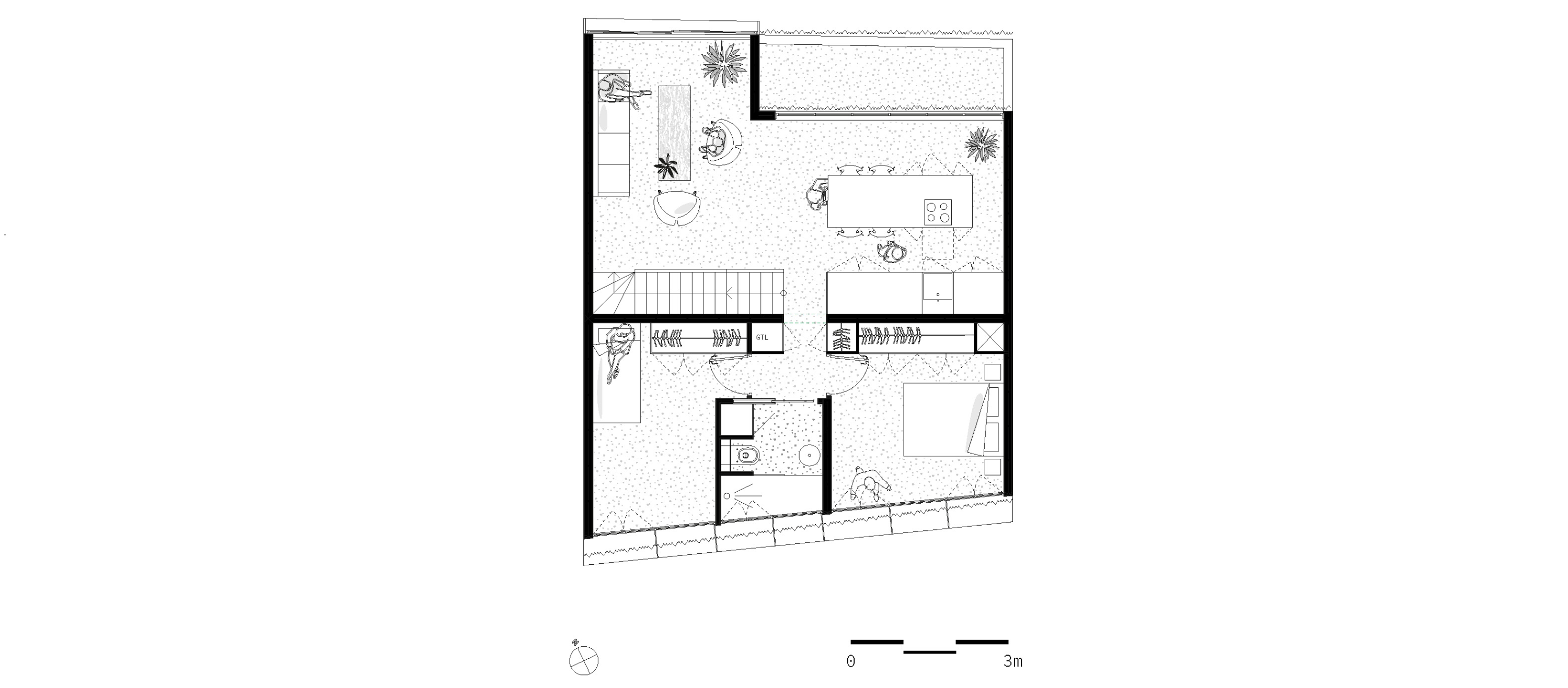 5층인 마지막 층은 테라스와 옥상 정원이 있다. 안뜰 쪽으로 열린 유리 벽은 자연 채광과 파리 도시의 전망을 제공한다. 4층의 아파트는 더 고전적인 스타일을 가지고 있으며, 주방 조리대는 거실쪽 좌석과 함께 길게 이어진다. 발코니의 식물은 맞은편 건물의 시선을 차단한다.