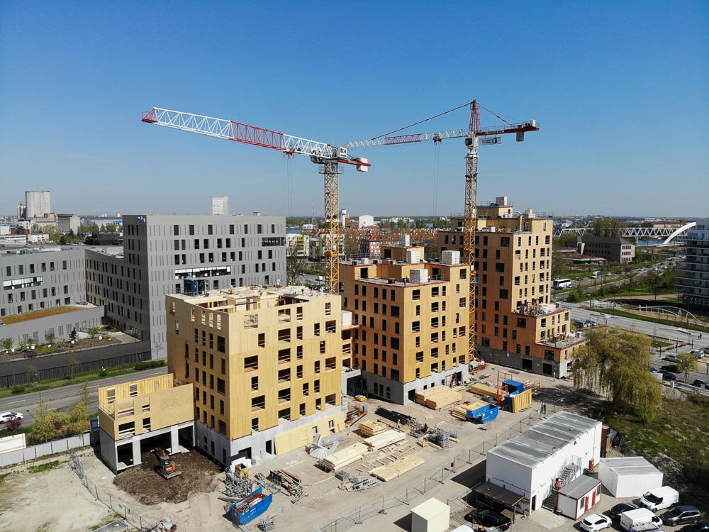 Most important 100% wood housing project in Europe and tallest in France, the ilot Biosource hosts 146 flats across its 11 stories. On a concrete basement stands the CLT floors whose partitions, elevator shaft and stairs are all made of CLT wood while offering spacious housing and generously letting in natural light.