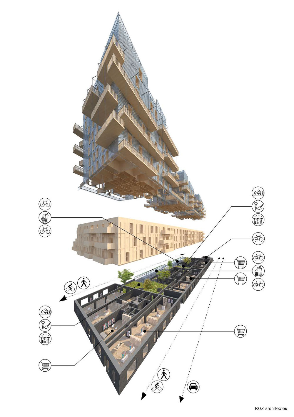 다양한 발코니를 가진 프랑스 최대 규모의 목조 주거시설, 센세이션 빌딩