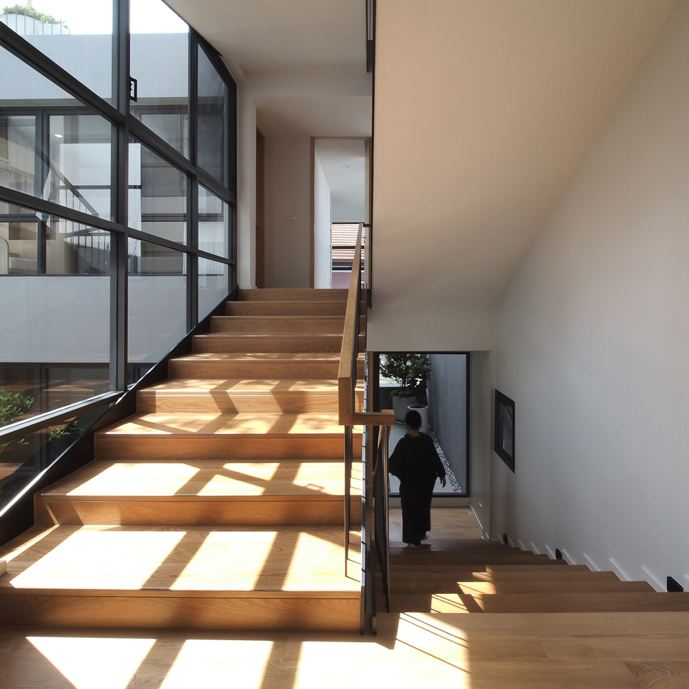 에이에스더블유에이는 칸막이로 분할된 집을 설계하여 공간 사이의 프라이버시를 위한 중앙 뜰과 집 앞에 있는 또 다른 작은 정원을 만들어 모든 방에 정원 뷰를 제공한다.