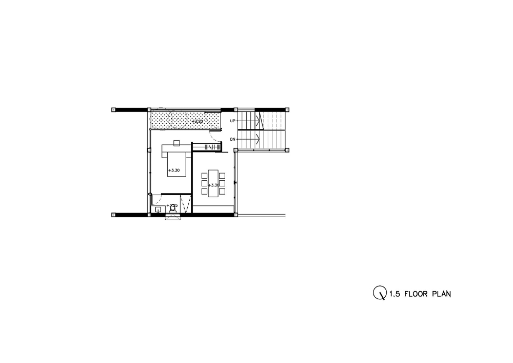 The idea of a split- level house is to separate each function by the central circulation, such as the staircase, and allow all users to have a comfortable view even in the narrow width house with natural light and ventilation while still having privacy in every room. The staircase divided the functions into the front and back parts of the house.
