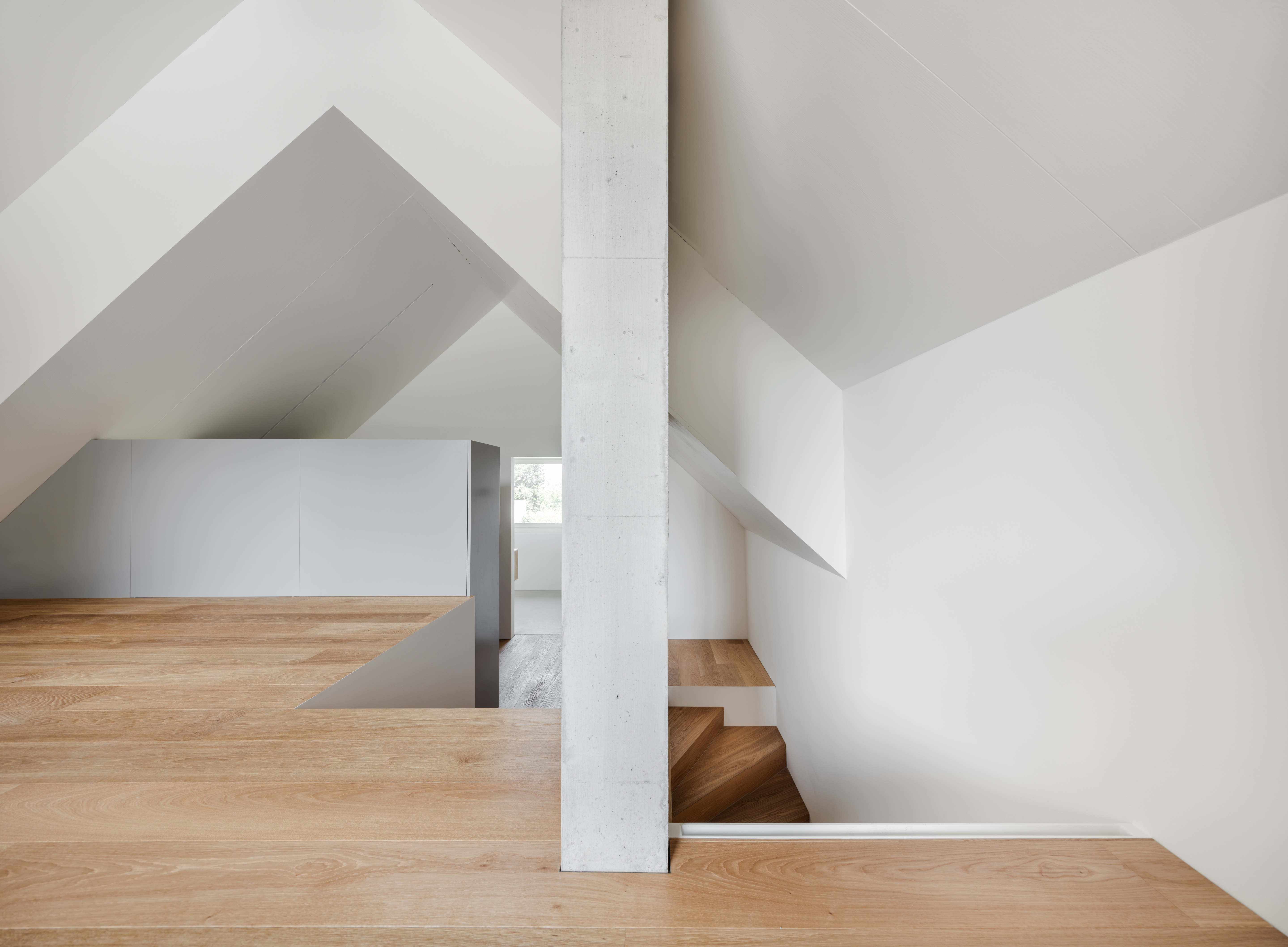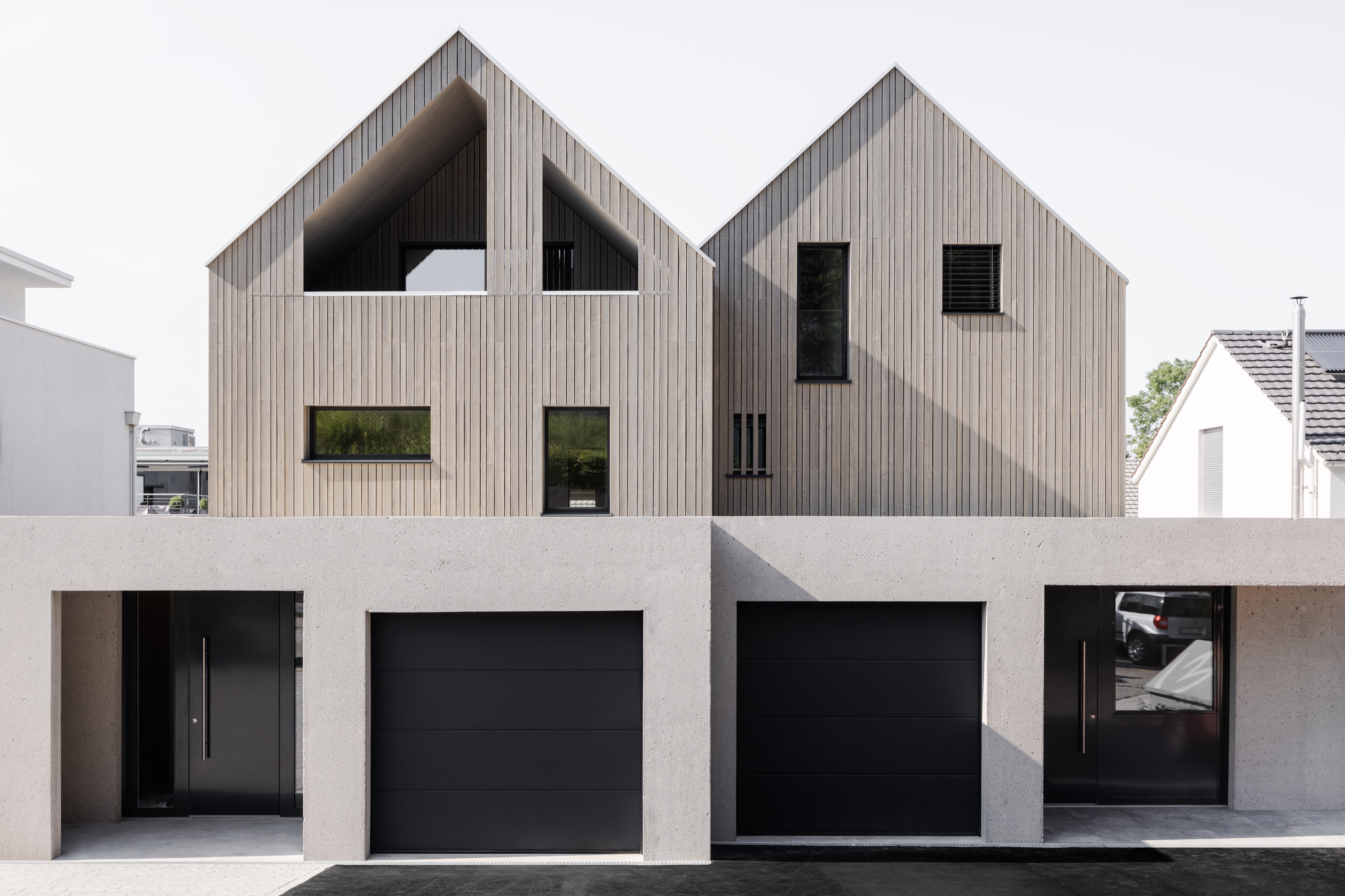 Situated in a moderately busy street of a calm neighborhood in Binningen - Switzerland, an exquisite semi-detached house is well integrated into an environment of single and multi-family houses. The project aimed to integrate two distinct users of double housing into one building. As a result, the form of the building reflects the unique design of two different users accommodated in a single house structure.