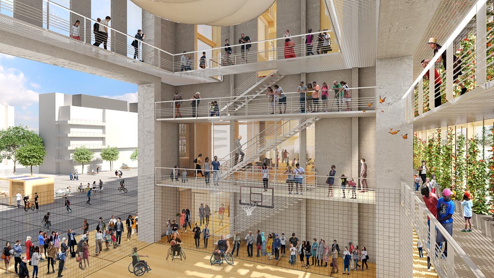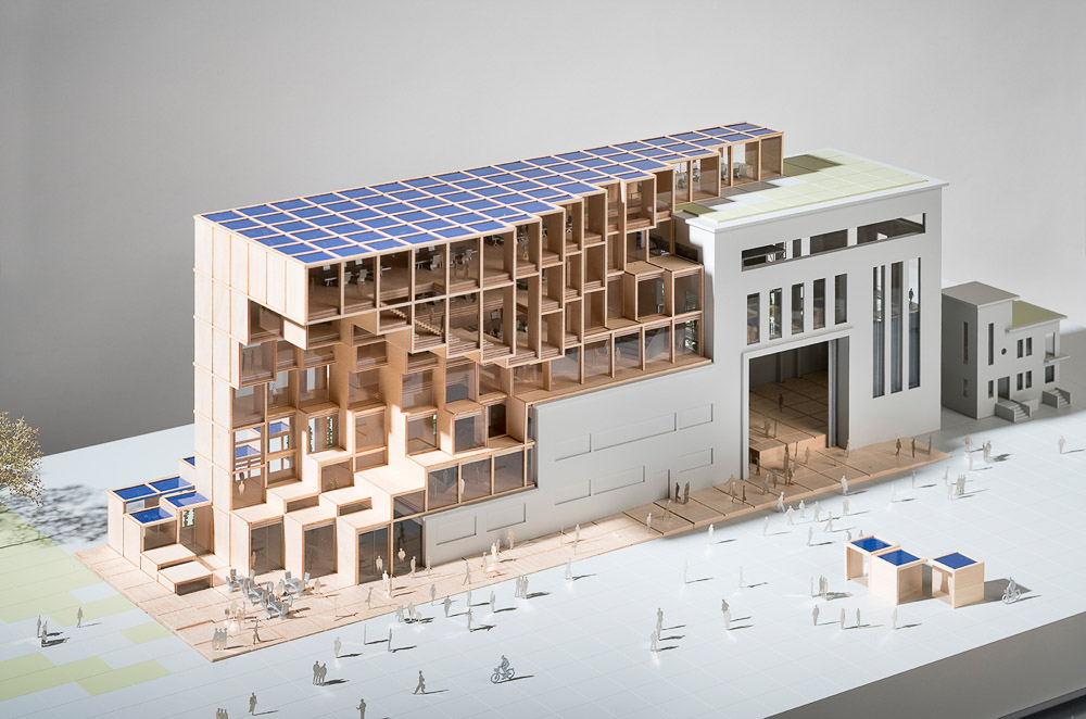 에너지 플러그는 기존 건축과 새로운 건축 간의 시너지, 즉 옛 건축물에 새로운 생명을 불어넣는다. 친환경적이기 어려운 20세기의 오래된 건축물을 보존하면서도, 새로운 용도에 맞게 고치는 것으로 ‘탄소 제로’를 물리적으로 구현한다. 사실, 이 에너지 플러그는 모든 건물에 고정할 수 있는 ‘적응형 프로토타입’이다. 조립식 모듈 목재 구조를 기반으로 하는 디자인이 채광과 환기를 원할하게 만들며, 열 에너지에 대한 손실량은 감소시킨다. 또한, 태양열을 조절해 쾌적하고 편안한 내부 공간을 만들어준다. 남쪽 파사드에 있는 수직 온실은 식량을 생산할 뿐만 아니라, 에어컨 없이도 일 년 내내 쾌적한 내부 환경을 조절하는 곳이다. 세계 최초로 4열의 ‘태양 캐노피’는 건물을 태양으로부터 보호하면서 전력과 열에너지 생산, 빗물 회수, 열에너지 보호 등의 기능을 한다. 이 곳에서는 과학 워크숍, 청정에너지 관련 스타트업, 지역 학교들을 위한 교육 프로그램 등이 마련될 뿐만 아니라, 청정 에너지를 사용하는 것을 보여주는 하나의 대표적 건축 사례로 이러한 혁신적인 움직임을 촉진시킬 수 있다.