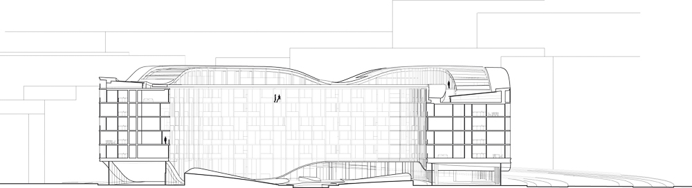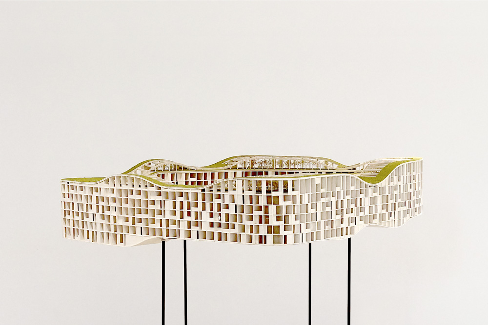 Six floors above the ground-level oasis, the building’s tundra-like roofscape will function as community garden, urban farm, rooftop promenade, meeting place…