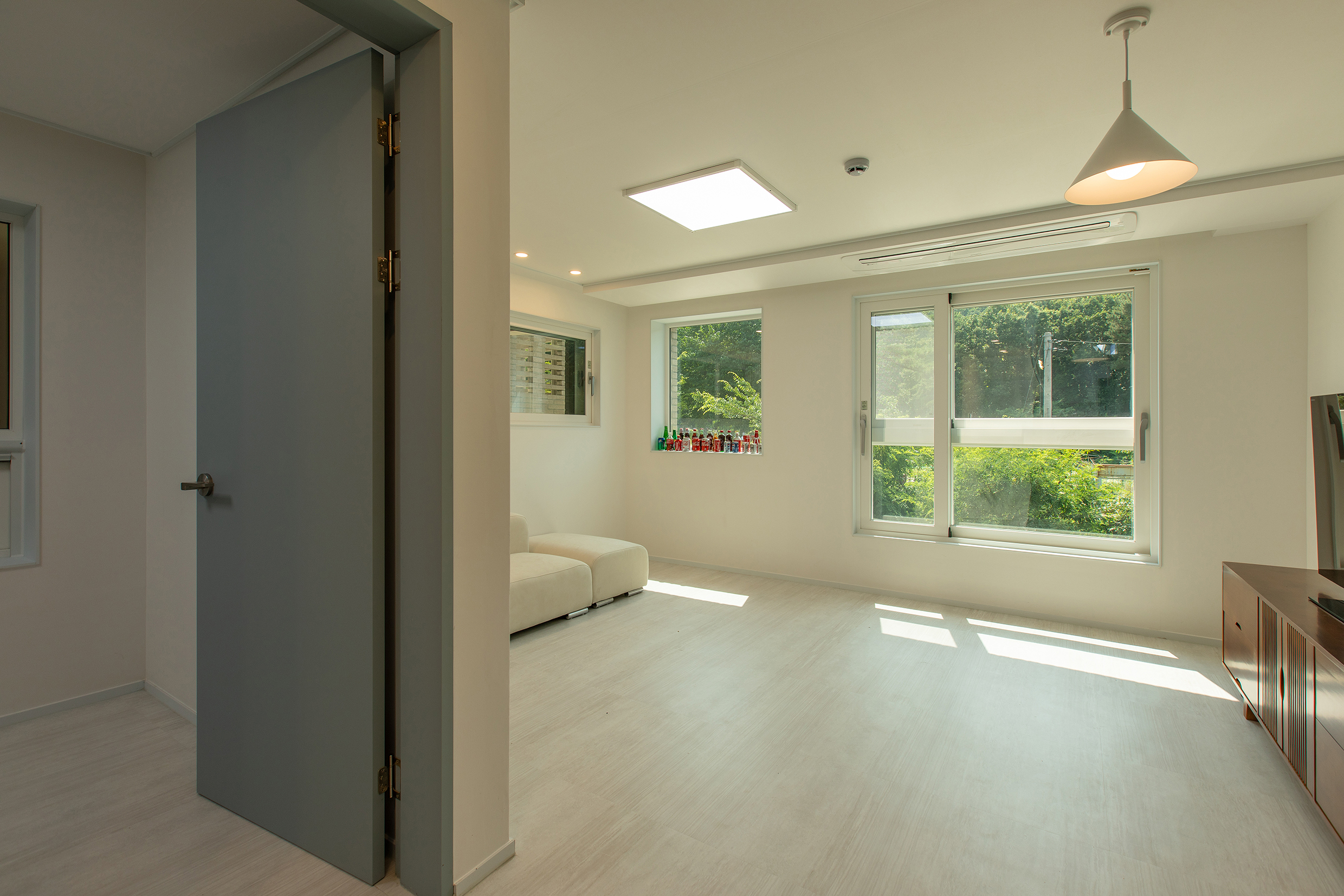 별내 다가구주택은 별내신도시 작은 공원 앞 경사지에 위치한다. 남북으로 약 1.2 미터 가량의 대지의 레벨차이를 활용해서 스킵 플로어의 구성으로 서쪽의 공원 뷰를 다섯 세대 모두 거실에서 즐길 수 있다. 공원 앞 건물로 들어가는 길은 산책로가 된다. 진입로는 선큰정원 위에 떠 있다. 진입로를 따라 들어가 현관 앞에 서면 하늘을 향한 중정이 있고, 각각의 집들이 마주한 창과 발코니가 있다. 이 작은 중정을 통해 남쪽의 빛을 끌어온다. 대지의 등고 차는 자연스럽게 스킵 플로어를 만들어 5세대의 입구들은 모두 다른 레벨에 놓이는데, 포켓공원으로 열린 뷰를 갖는 서쪽으로 주로 거실을 배치한다. 3층 주인세대의 현관으로 들어서면 안방과 작은 방을 동서로 배치하고 중정을 바라보며 계단을 오르면 주방과 거실을 연속적으로 놓아 서쪽의 뷰와 채광을 집 안쪽으로 끌어들인다. 소파의 위치에 약 1.5미터 높은 층고를 형성하며 천창을 두어 수직적인 공간 속에서 사계절의 변화를 느낄 수 있다. 옥상에서는 직접 길러 먹을 수 있는 작은 텃밭과 옥상 조경, 그리고 파고라를 배치해서 계절별로 야외활동을 할 수 있다.