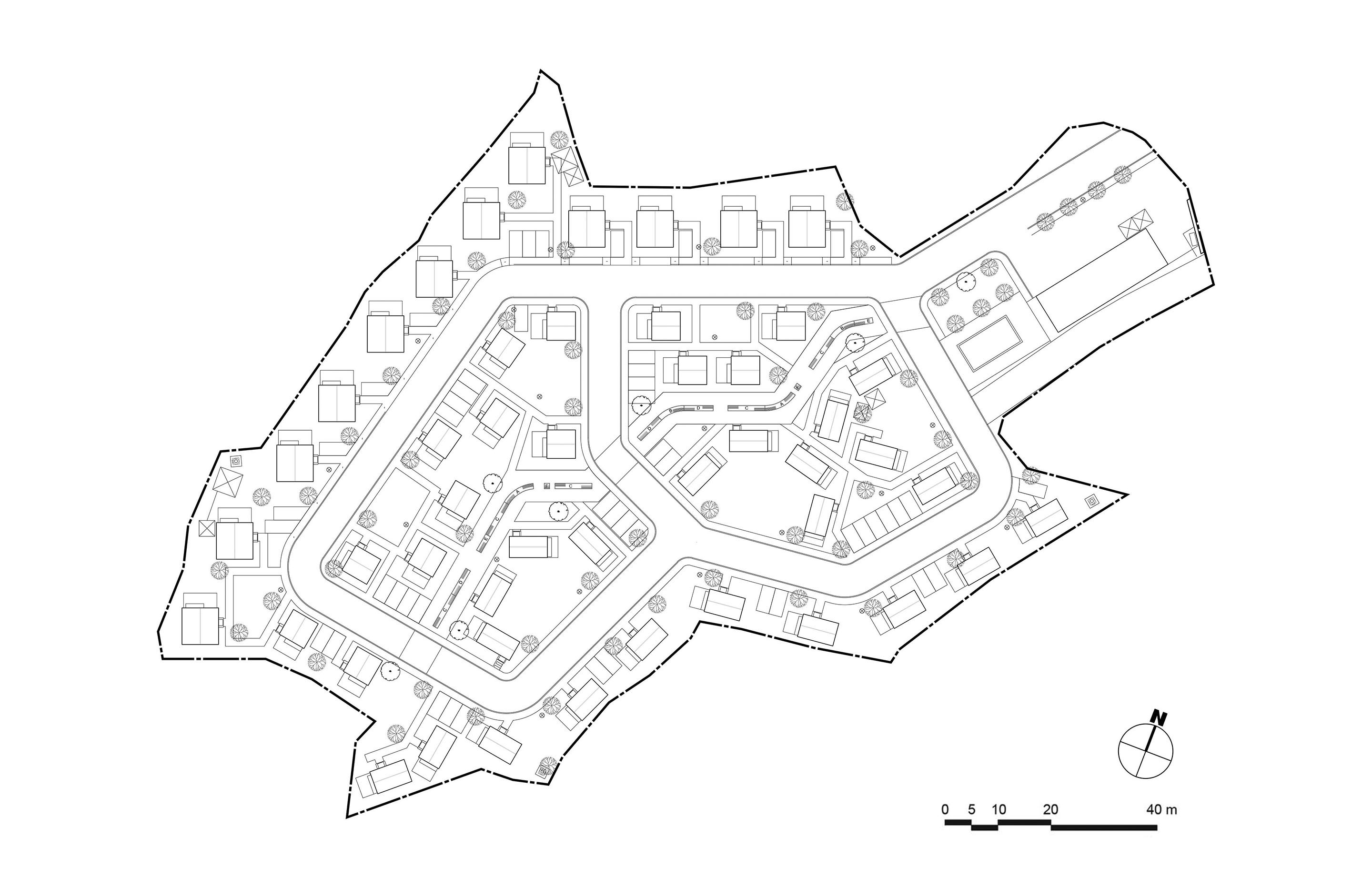 이 마을은 주민센터, 48개의 단독주택, 공원, 편의시설로 구성되어 있다. 구역에 층을 쌓고 차례로 배열됨에 따라 소규모 공원과 공유 공간이 연결되고, 메인 도로는 개별 주택과 연결된다. 전체 부지 계획에 따라 공원을 따로 제한하지 않았다. 공원은 유기적으로 연결되는 곳으로 타운하우스 내에서 주민 개개인 혹은 여럿이 모여 자연과 교감 할 수 있는 공간으로 정의했다. 클러스터링이라는 아이디어는 단순히 개별 주택을 마을로 만든 것이다.
