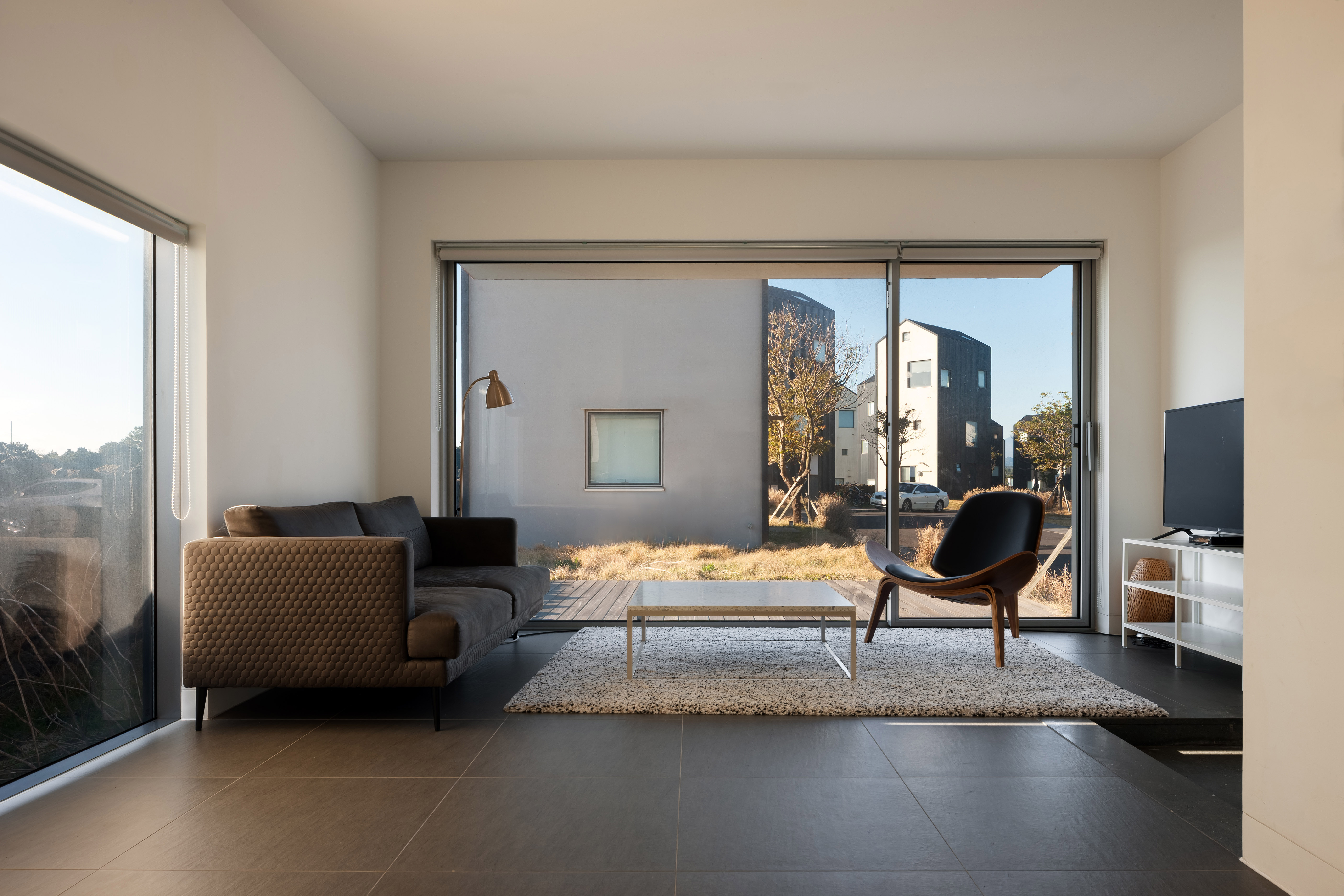 “환경에 대한 가장 적절한 대응책은 무엇일까?” 최소한의 건축 설계와 간결한 공간 분할, 거품 없는 재료라면 소박하면서 심플한 주거지를 만들어낼 수 있다. 물리적 측면에서는 단순하지만 명백하다. 주택은 별다른 기교가 없기 때문에 무게가 있다. 창문은 건물 기본 형태가 주는 무게감을 줄여주고 집 안으로 주변 풍경을 끌어들인다. 또한, 유리의 투명한 표면은 집 내부와 외부환경을 연결해준다. 주택 내부의 구성은 공동체를 중심으로 하고 가족 전체와 구성원 개개인의 요구를 모두 충족 할 만한 넉넉한 공간을 갖추었다. 건물 고유의 아름다움과 기능을 고려하여 재료를 선택했다. 수직으로 쌓아 올린 구조는 점유 공간을 최소화 해주고, 더 많은 유닛에서 바다 전망을 즐길 수 있게 해준다.