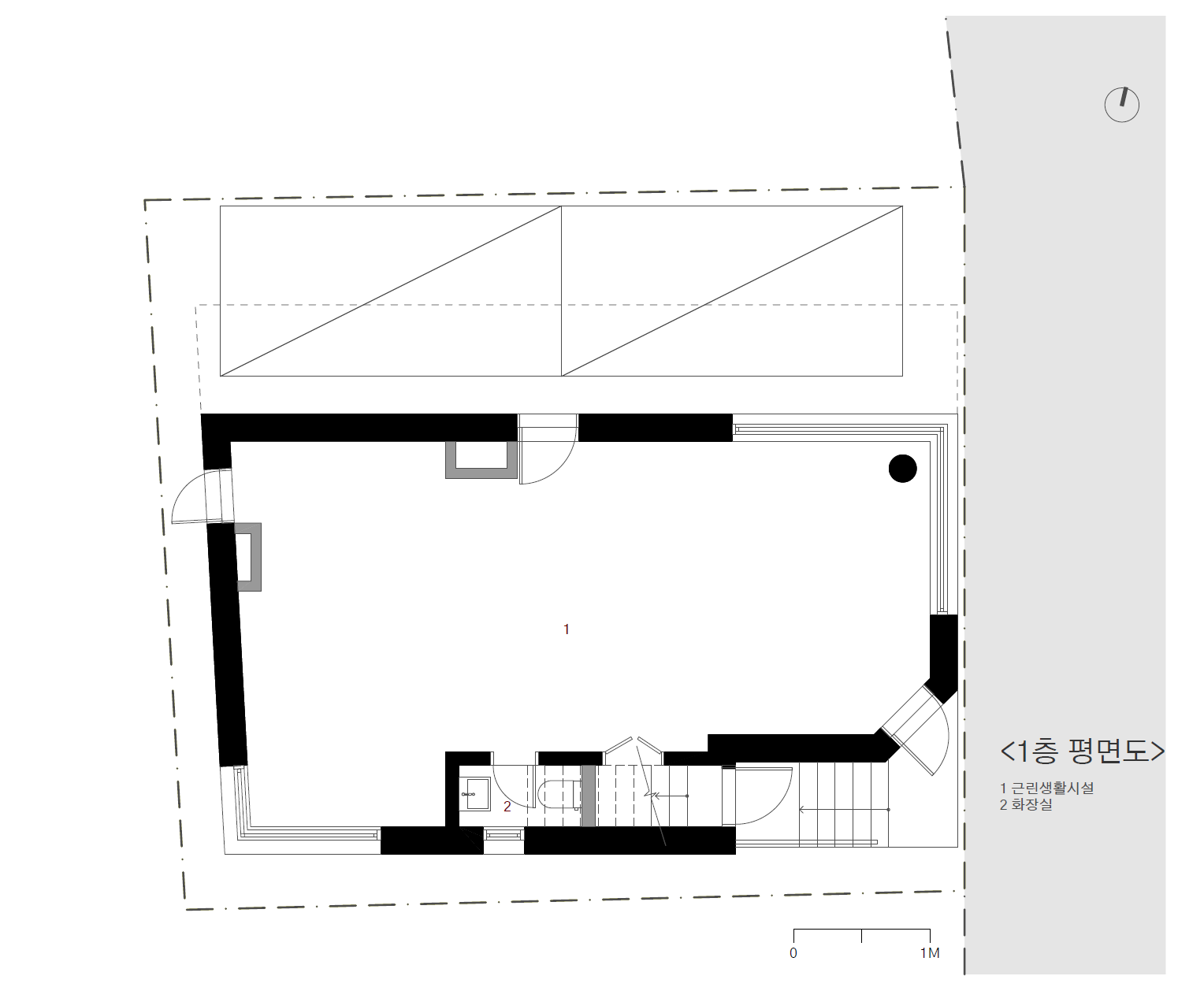 Banseokjip is located on the north side of Gileum Station, in a low-rise residential alley that remains among the large-scale Gileum New Town apartment complexes. The alleyway filled with detached houses corresponds to the apartment complex on the opposite side, and the shops are gradually on the lower floors, and the houses are being filled with store houses that sit on the upper floors. The owner wanted to provide a space in this alley to live with the old woman.