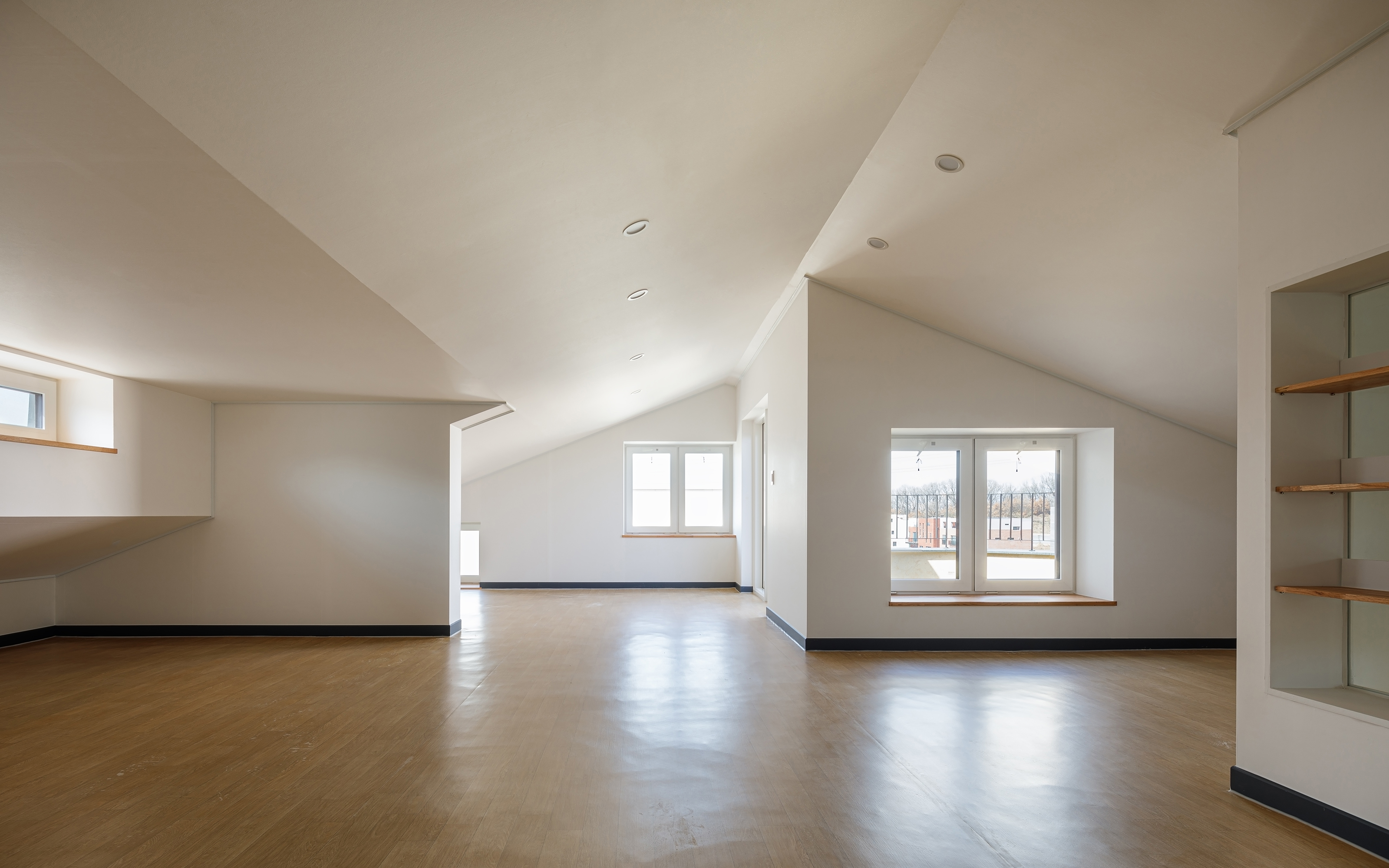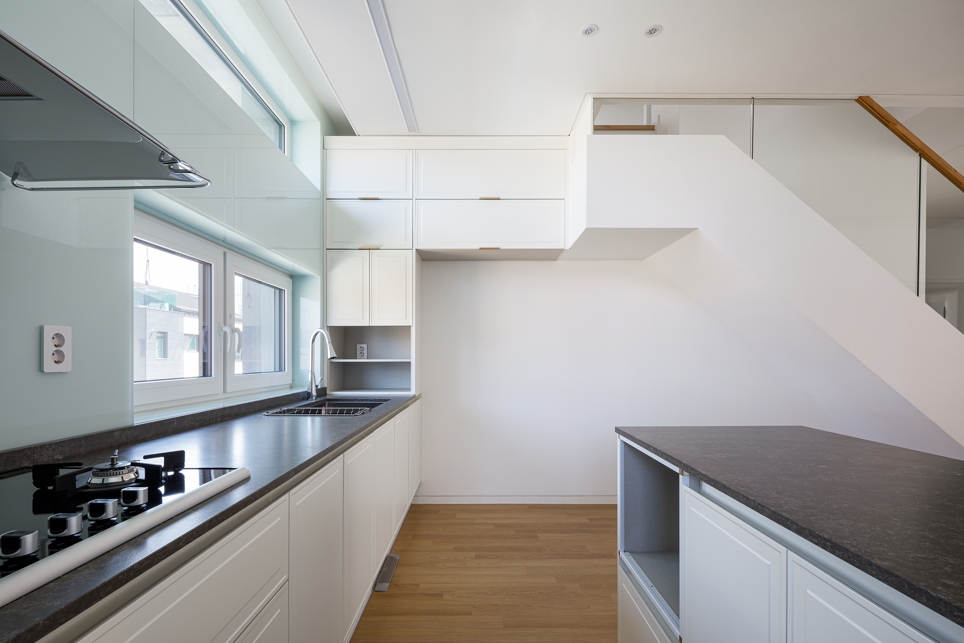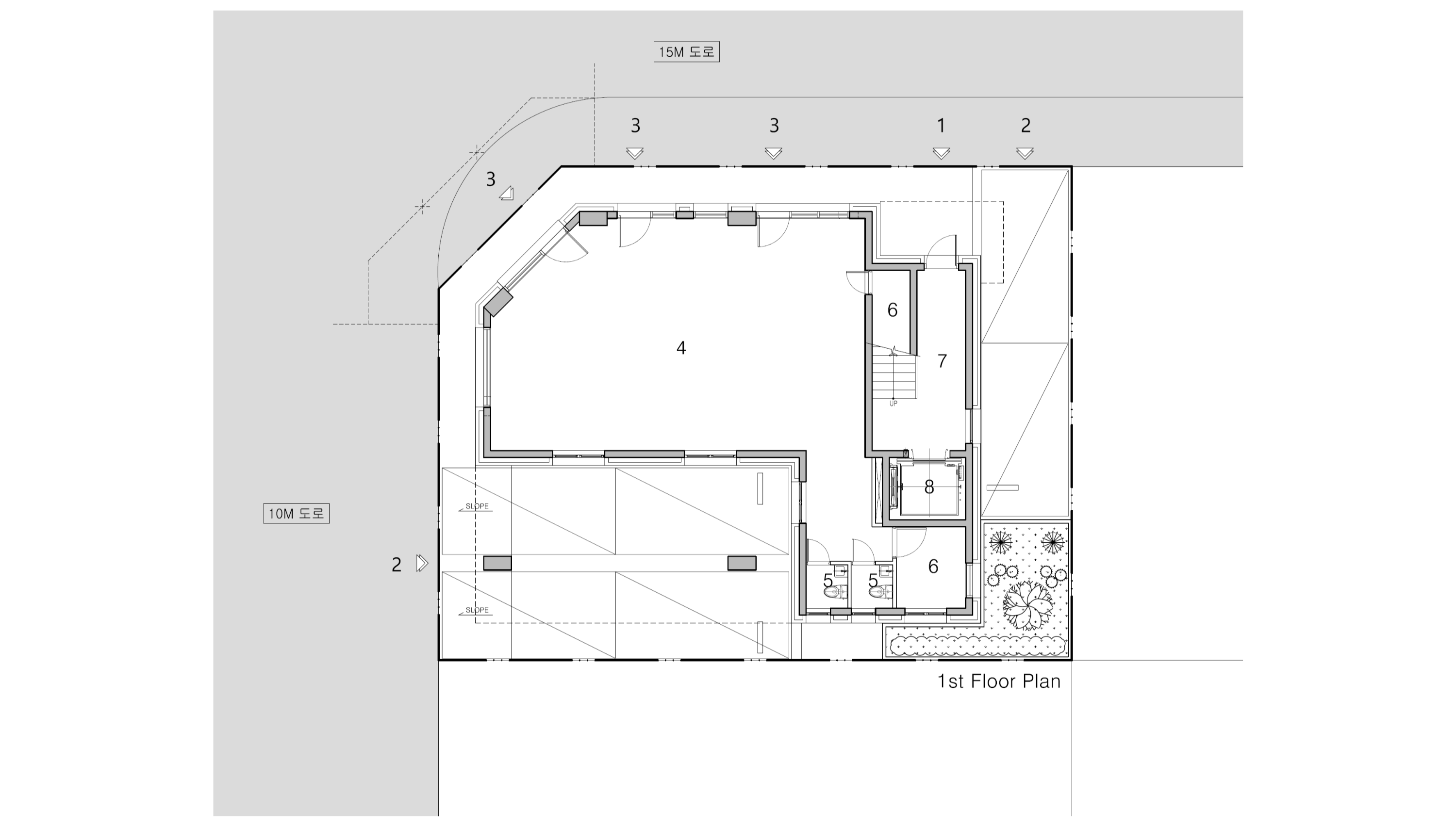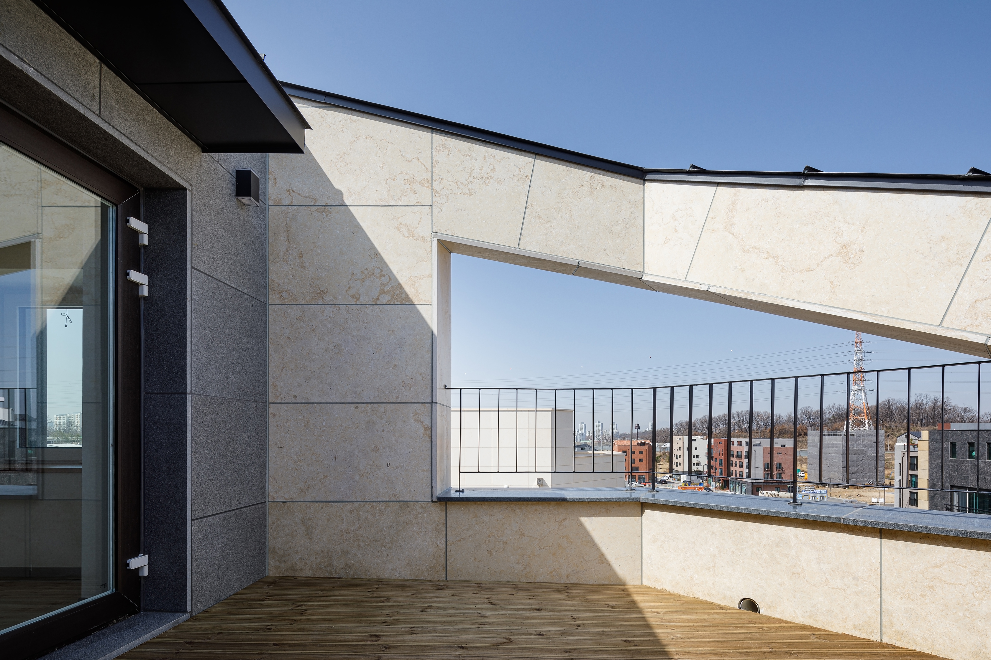 Due to the site’s condition that it is not affected by the right to sunlight, the floor height is higher than that of other houses, and it gives a warm feeling full of natural scenery and light throughout the house. TH Palace, which is located in a corner site, was planned with more focus on the shape and facade composition of the house as more than two sides have frontality. Moreover diagonal elements were appropriately used to give a sense of elevation. A terrace or balcony on the corner side are to allow it to be used as a resting and sharing space for the family, and on the other side, a small terrace that one can use as a private space was separately made, to allow the inside and outside of the house to be freely entered and exited as well as to provide a comfortable rest.