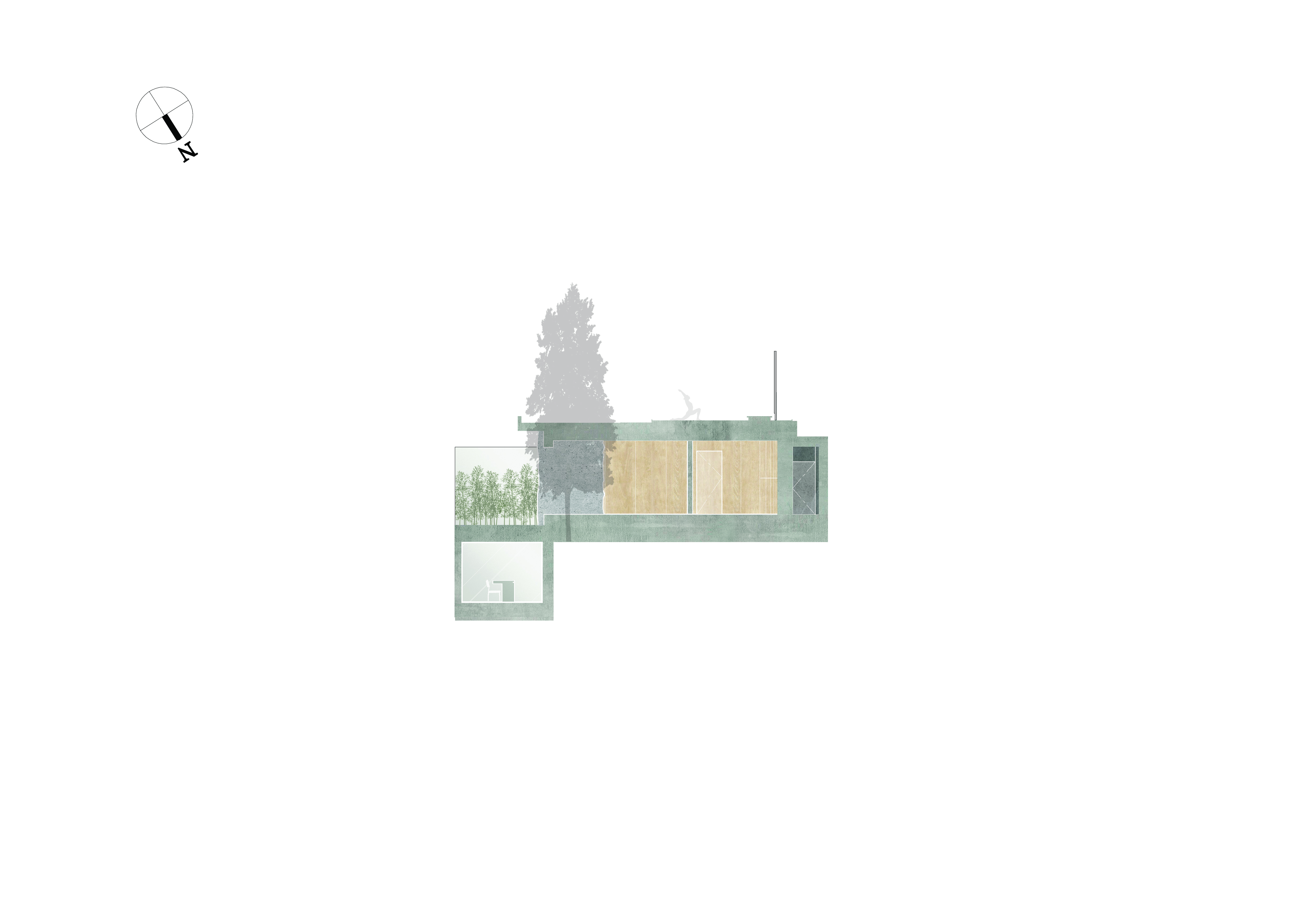 마지막으로 심리적 단계의 공간은 삼매_三昧의 공간, 즉 자신의 성질은 없고 대상으로만 빛을 발하는 고요한 적정_寂靜의 공간이다. 이 개념은 목욕공간과 명상공간에 반영되었는데, 이는 텅 빈 공간의 힘과 분위기를 강조하며 자연과 오브제를 동질화하고 의식과 무의식의 경계가 사유의 교차점을 만들어내는 서정의 공간이 된다.