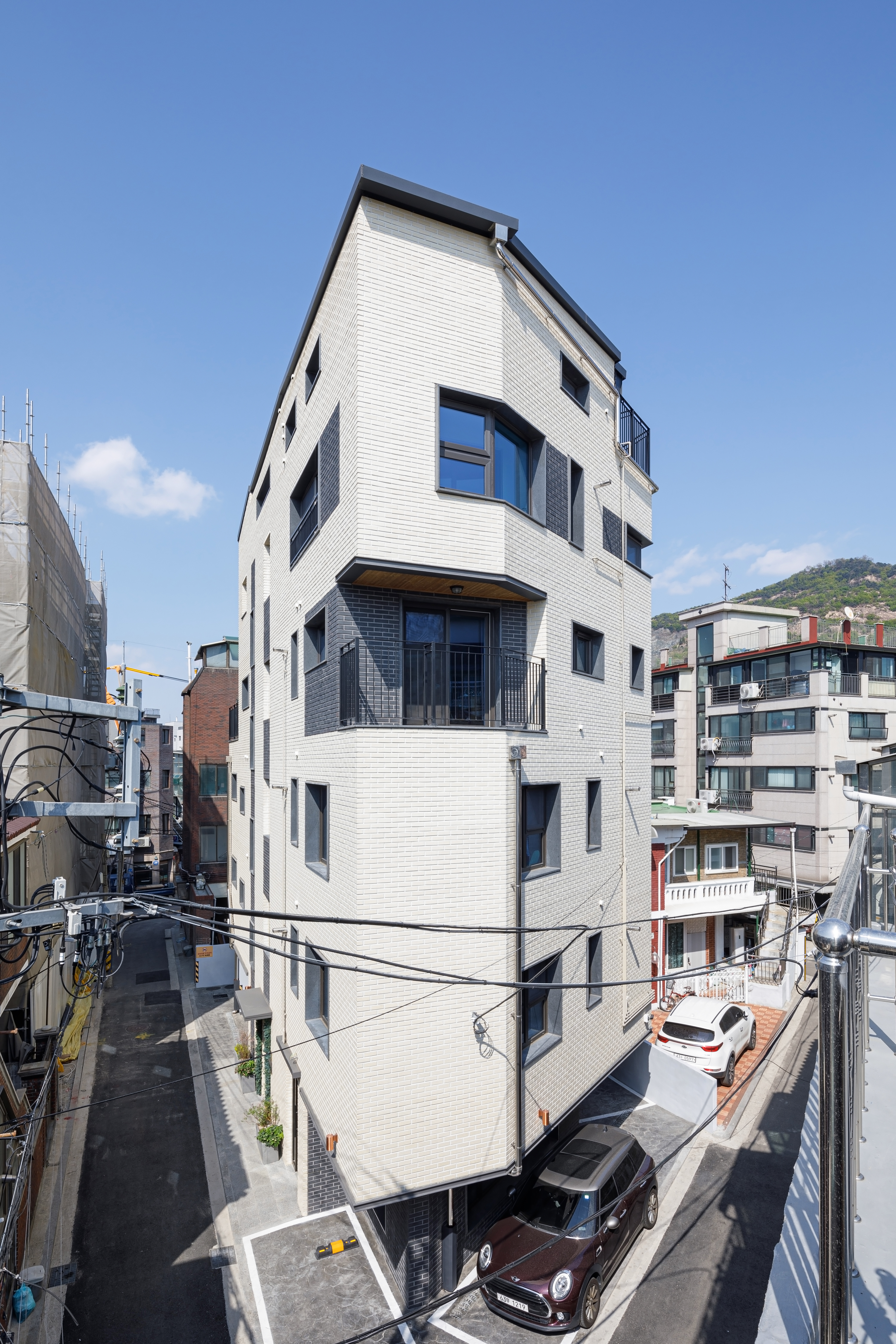 EO Sympathy is located in an old residential development areas in Junggok-dong, Gwangjin-gu, the house is a building that was formed by combining two small plots. It was designed with a commercial..