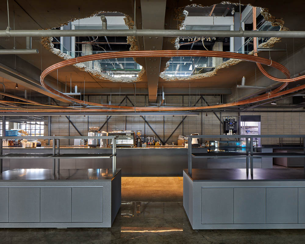 The piping system to deliver a continuous supply of oxygen into the building is the most critical element in its interior design and a tool that brings completely different emotions to people by separating them from the city and their daily lives. Although unseen, they can breathe it in and feel the entirely different air flowing throughout their whole body as it serves as a tactile design element.
