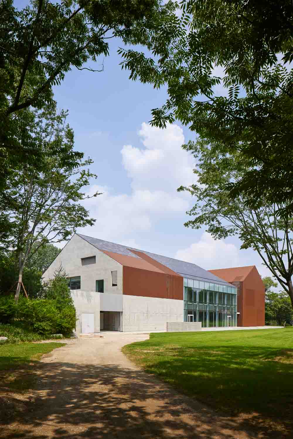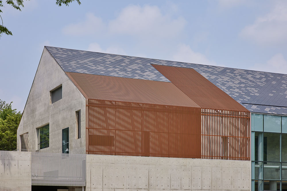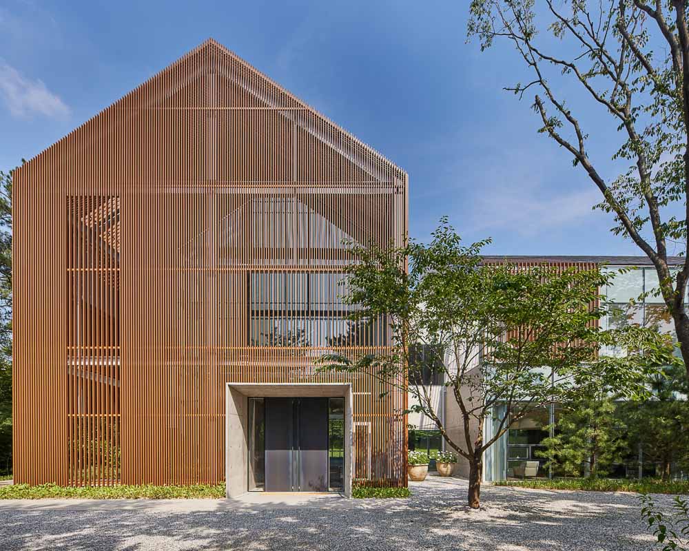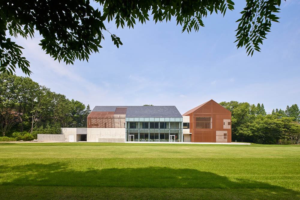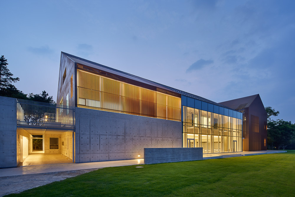 As for the building materials, we started from the consideration of shadows of light. The light creates shadows, exists by them, and we can sense it through the difference. With regard to the entire mass, we intended to maximize the effect of light and shadow with the louver to feel the changes of light, and it would also allow us to connect the surrounding nature visually at the same time. That is the flexibility of louver as a medium connecting the building to the nature.