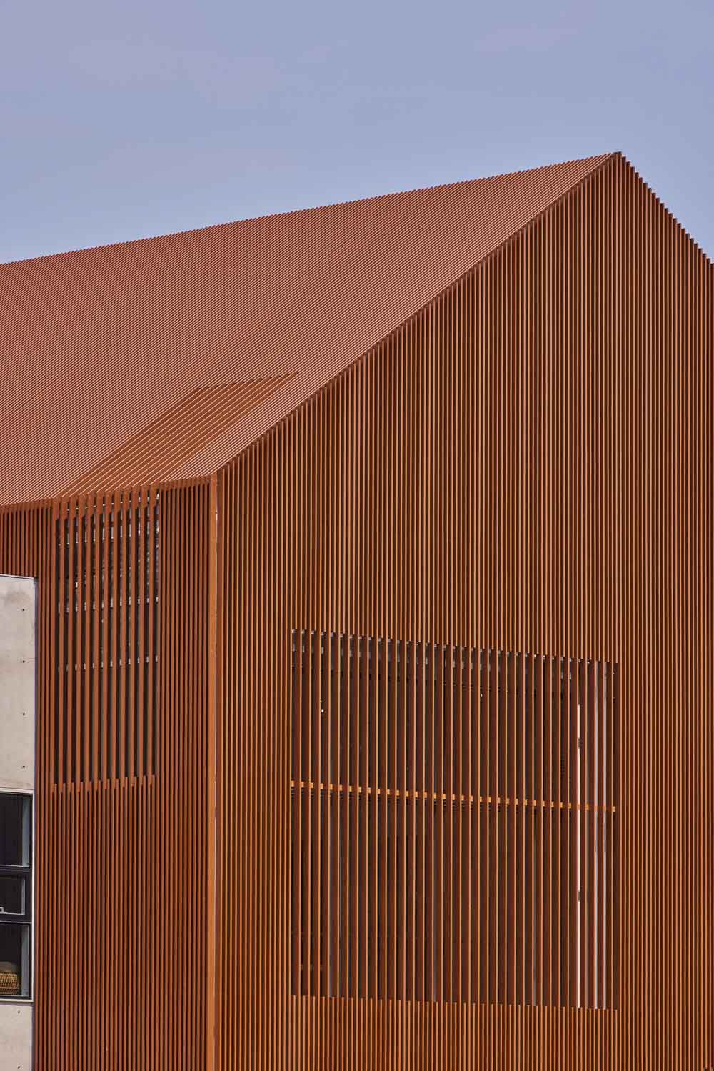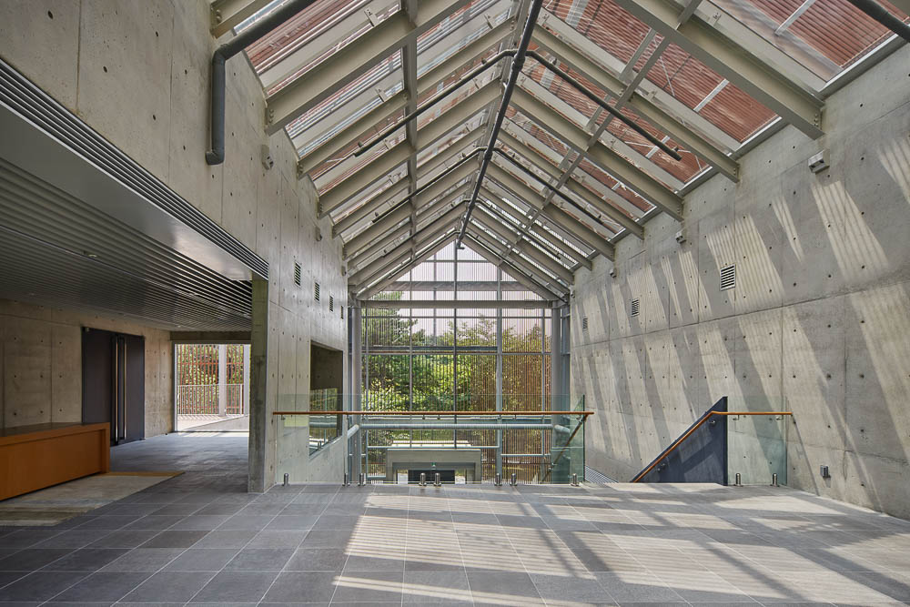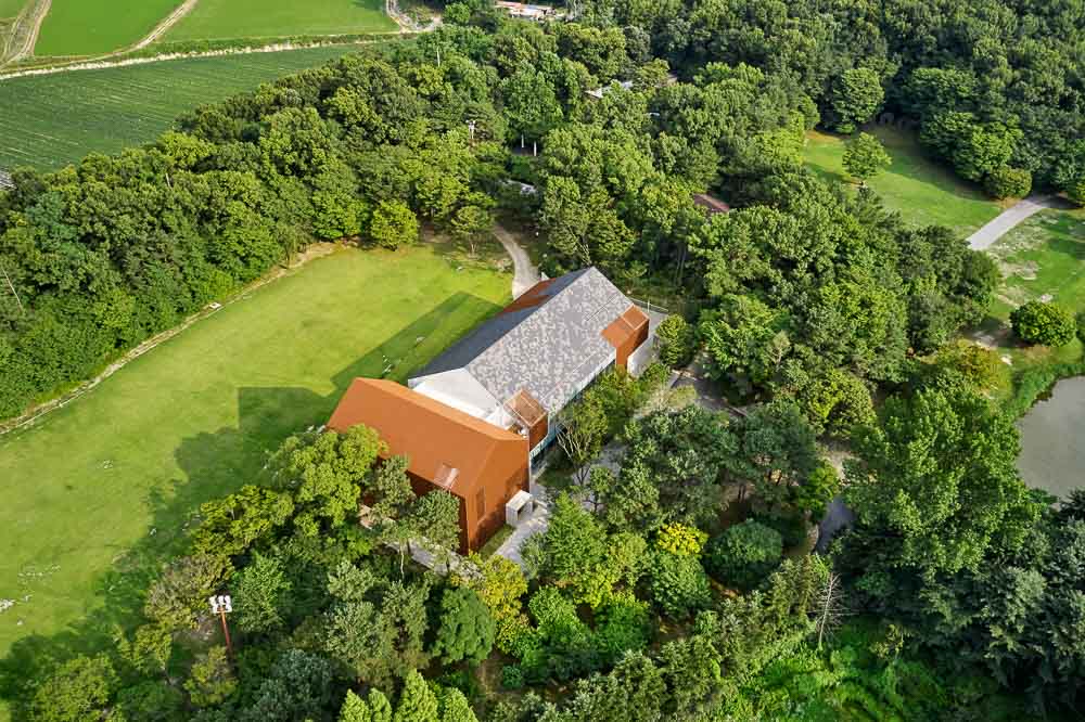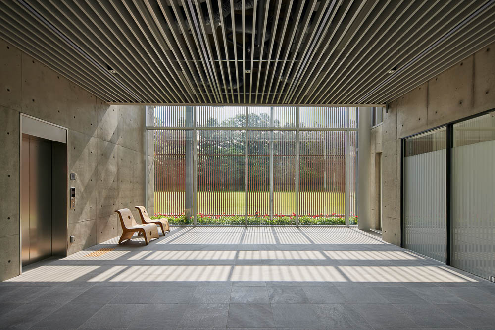 As for the building materials, we started from the consideration of shadows of light. The light creates shadows, exists by them, and we can sense it through the difference. With regard to the entire mass, we intended to maximize the effect of light and shadow with the louver to feel the changes of light, and it would also allow us to connect the surrounding nature visually at the same time. That is the flexibility of louver as a medium connecting the building to the nature.