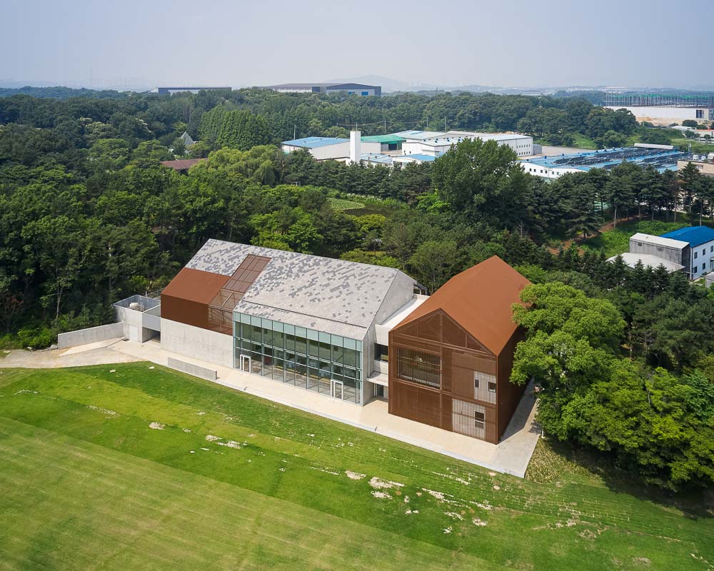 그리고 지붕은 사람이 하나하나 직접 발색한 징크를 통해서 획일화되지 않고 각기 조금씩 다른 느낌의 징크들을 조합하여 자연과 조화를 이룰 수 있도록 했다.