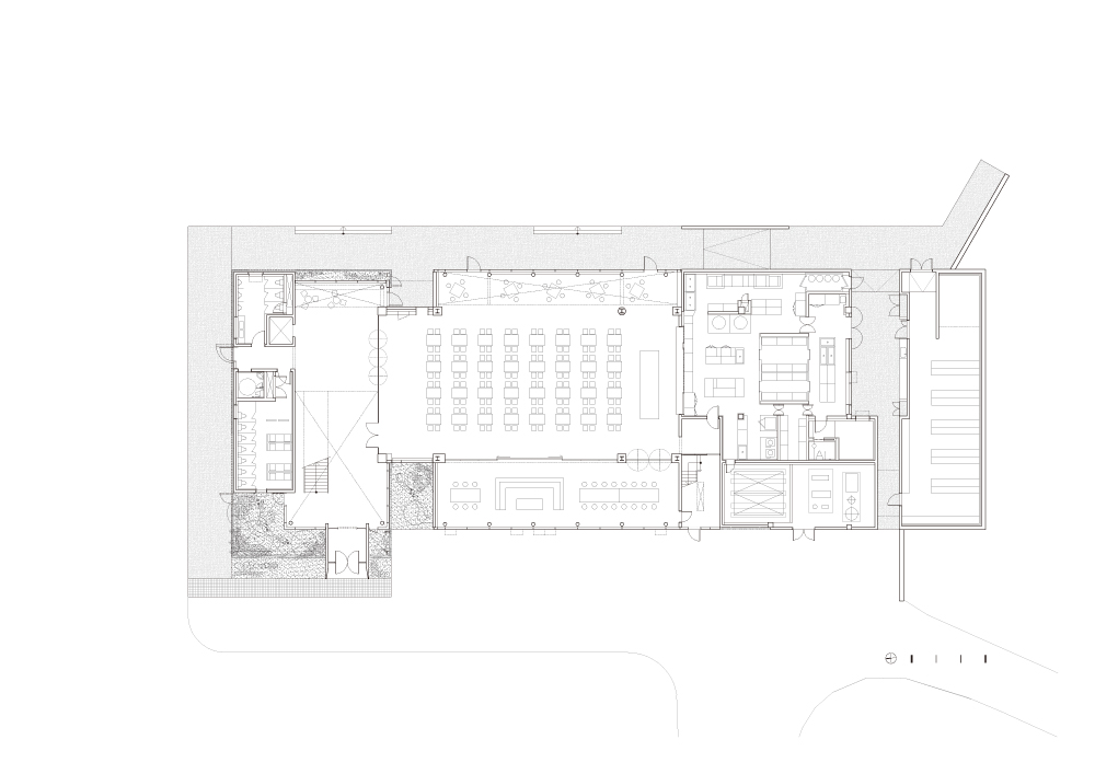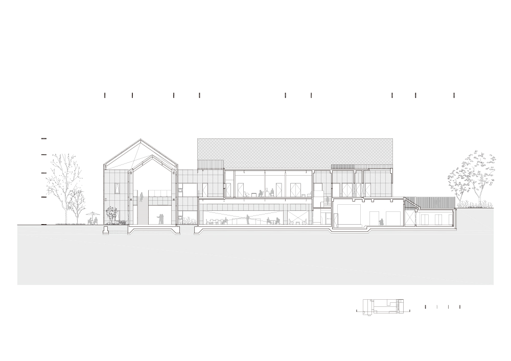 이 건축물은 마임비전빌리지를 방문하는 사람들을 위한 공간으로 기획되었다. 1층은 사람들이 모여서 차를 마시고 식사를 할 수 있는 공간이다. 1층은 특히 주변의 운동장과 연계해서 사용할 수 있게 계획되어 많은 사람들이 외부와 내부를 동시에 사용할 수 있게 했다.