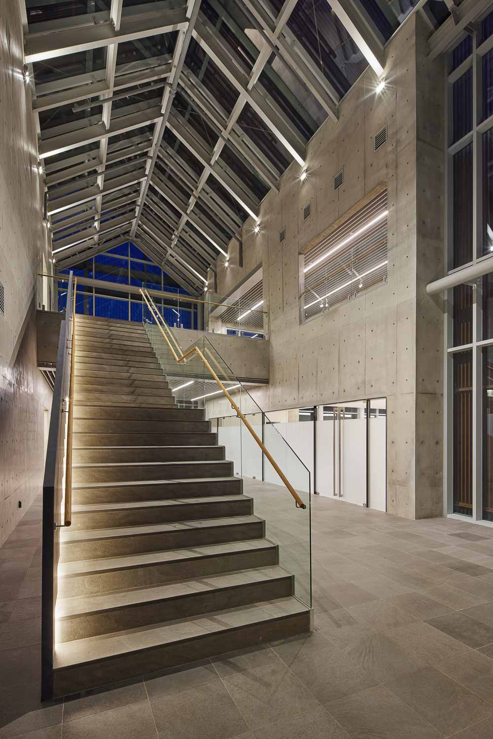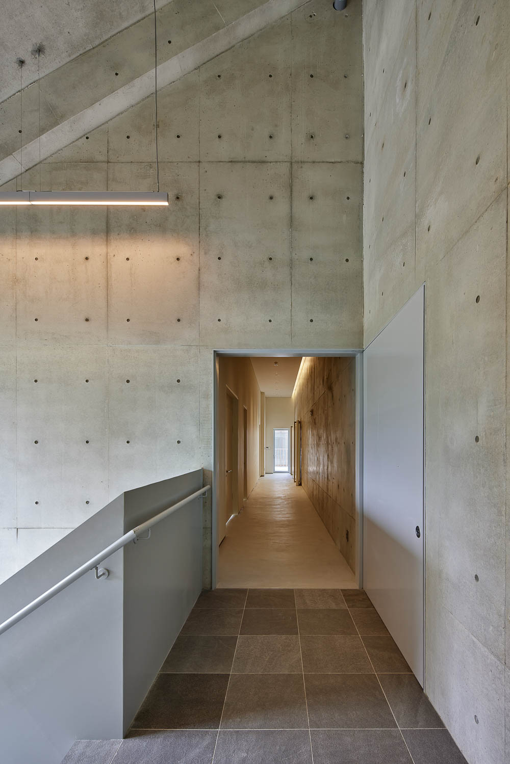 Exterior finish Exposed concrete, Alum extrusion louver, Colored STS steel plate