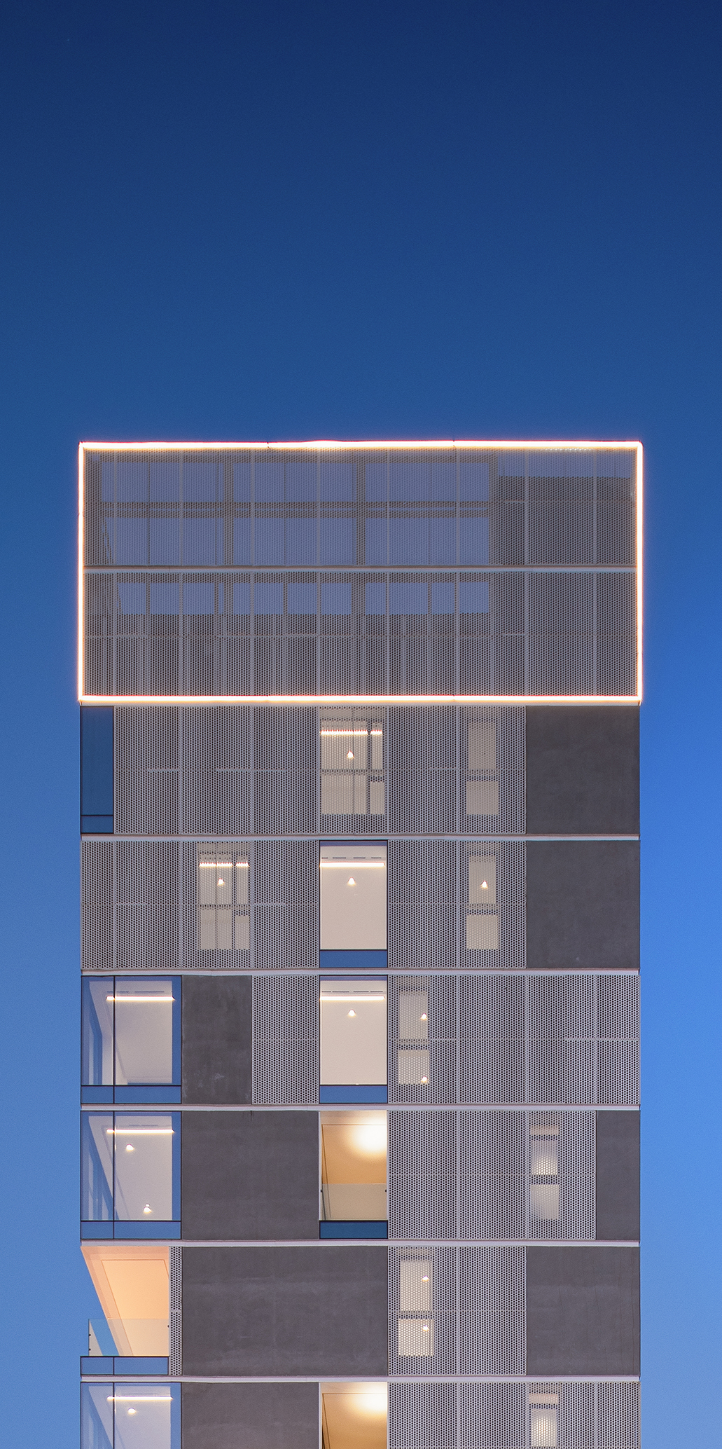 Jade is a midrise multi-unit residential building in Salmiya, Kuwait, that houses 20 independent residential units spread over 10 floors, a double-basement parking, an open plan ground floor with a..