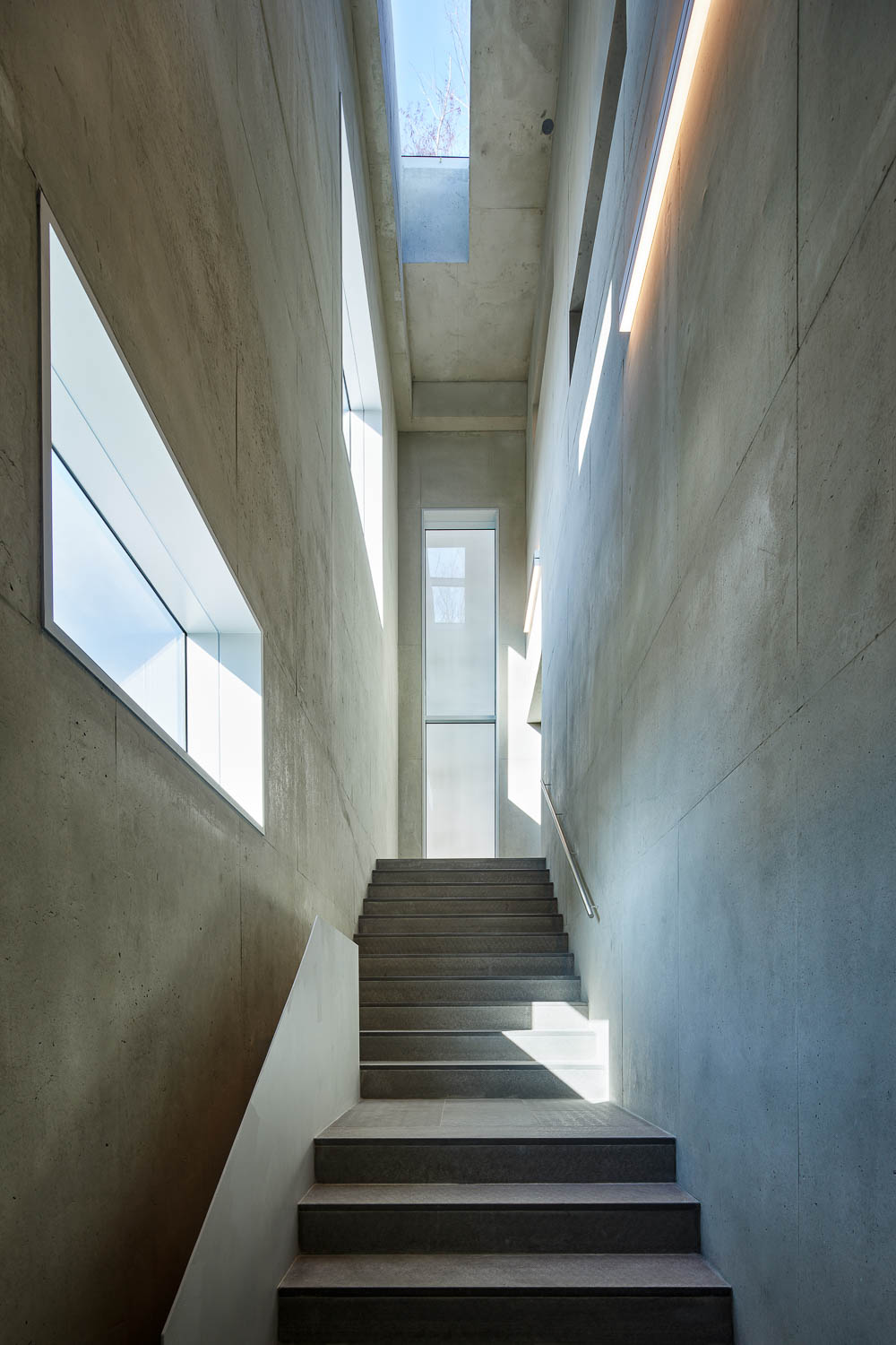 건축의 재료에 대한 고민은 빛에 따른 흰색의 질감에서 비롯되었다. 하얀색의 Sto에 거친 자연적 질감을 줄 수 있는 돌과 벽돌을 통해서 인공적 재료와 자연적 재료의 관계가 어떻게 표현될 수 있는지 보여주고자 했다. 이것은 결국 자연과 인공적인 건축물이 사이에 존재하는 중간지점 혹은 경계에 서있고자 하는 표현이다. 이러한 생각은 내부 마감에 연결되어 자연으로서의 빛을 가장 잘 느낄 수 있게 해주는 건축적 질감으로서 노출콘크리트를 사용하게 됐다.