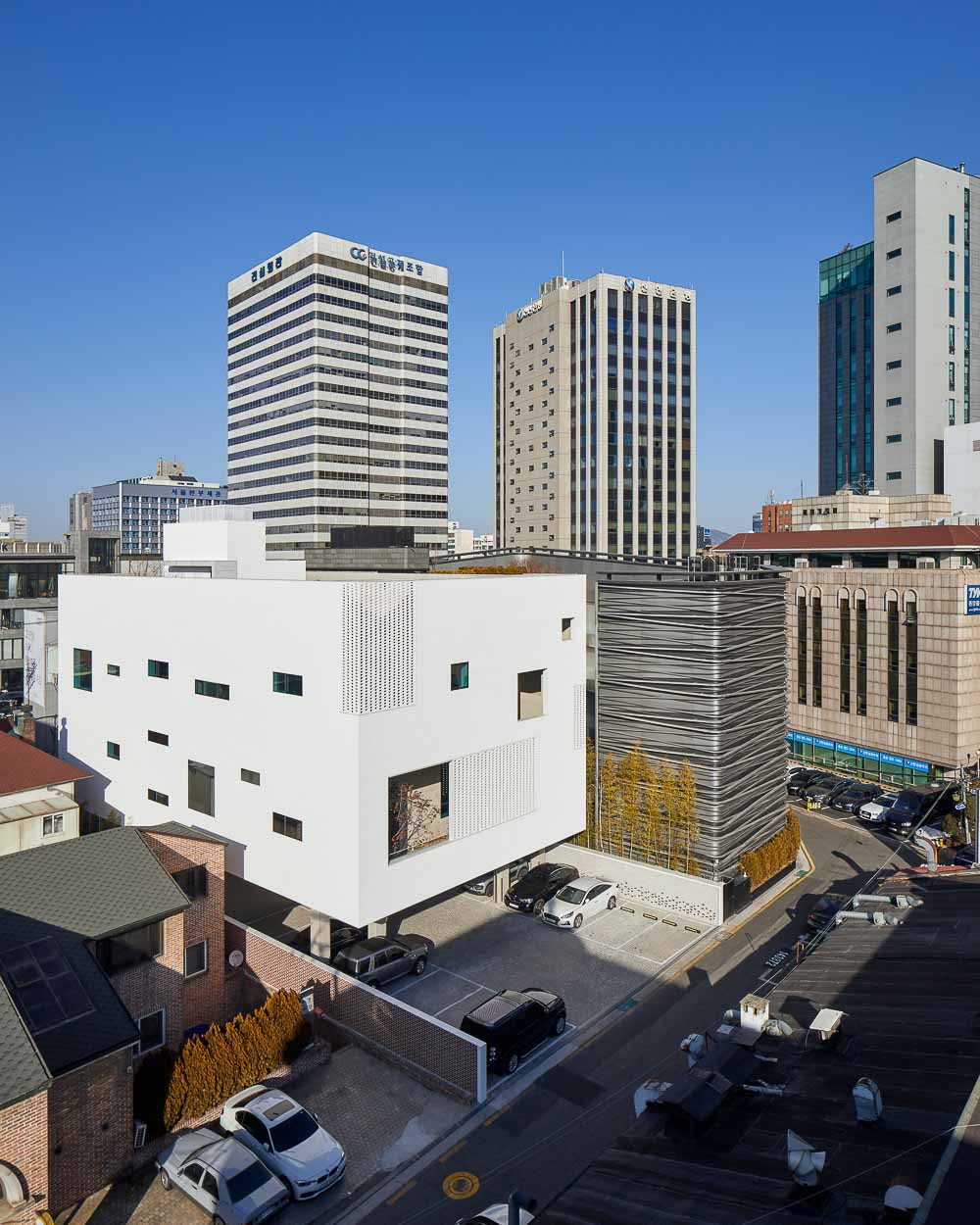 This project was started with making a relationship with cities through simple forms due to the complex context surrounding architectural sites. The sensibility and freshness of space in pure simplicity that avoids a conflict with the neighboring area as much as possible may bring about excitement, expectation and empathy in people. In addition, the white color of mass intended people to feel invisible light that changes depending on time and environment.