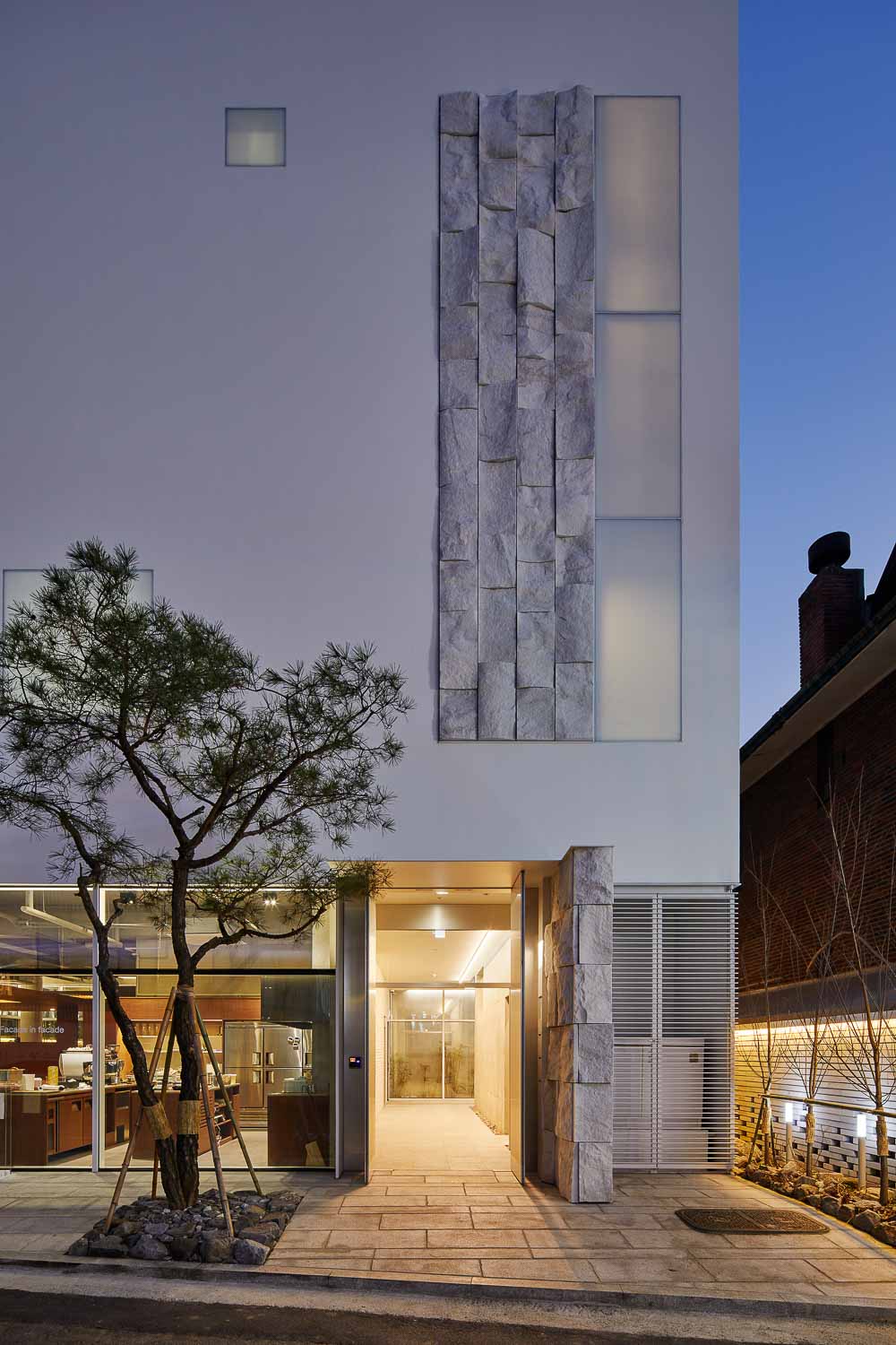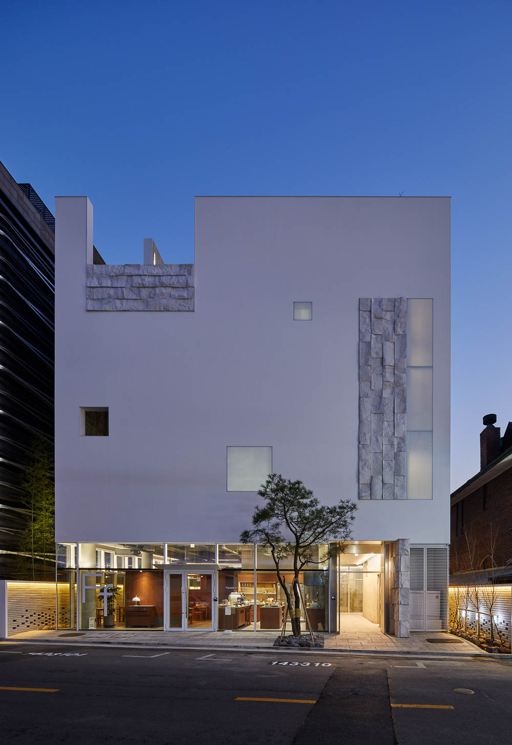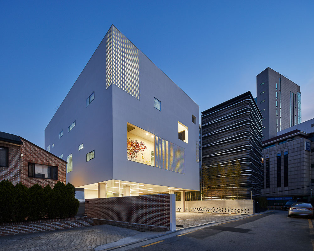 This project was started with making a relationship with cities through simple forms due to the complex context surrounding architectural sites. The sensibility and freshness of space in pure simplicity that avoids a conflict with the neighboring area as much as possible may bring about excitement, expectation and empathy in people. In addition, the white color of mass intended people to feel invisible light that changes depending on time and environment.
