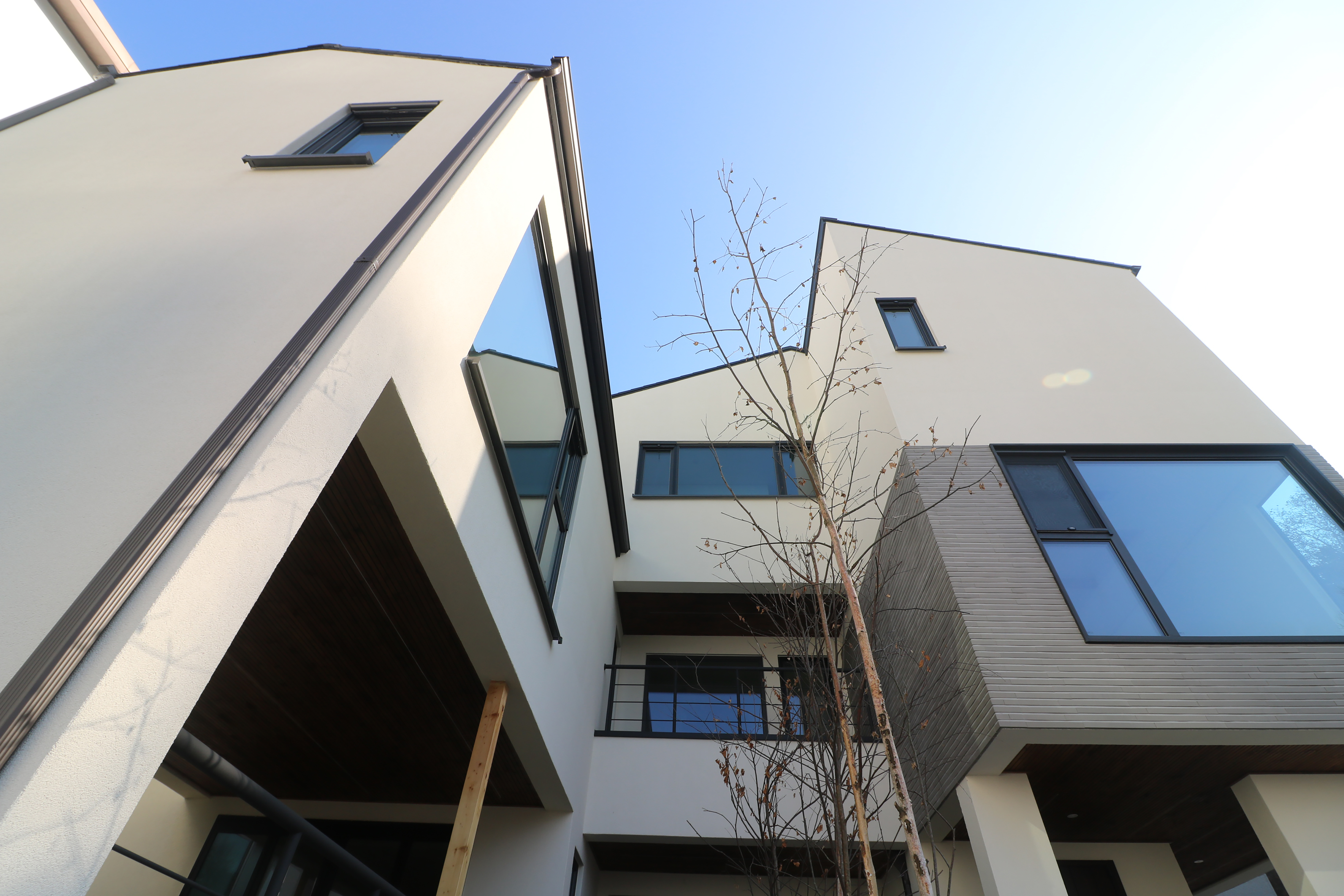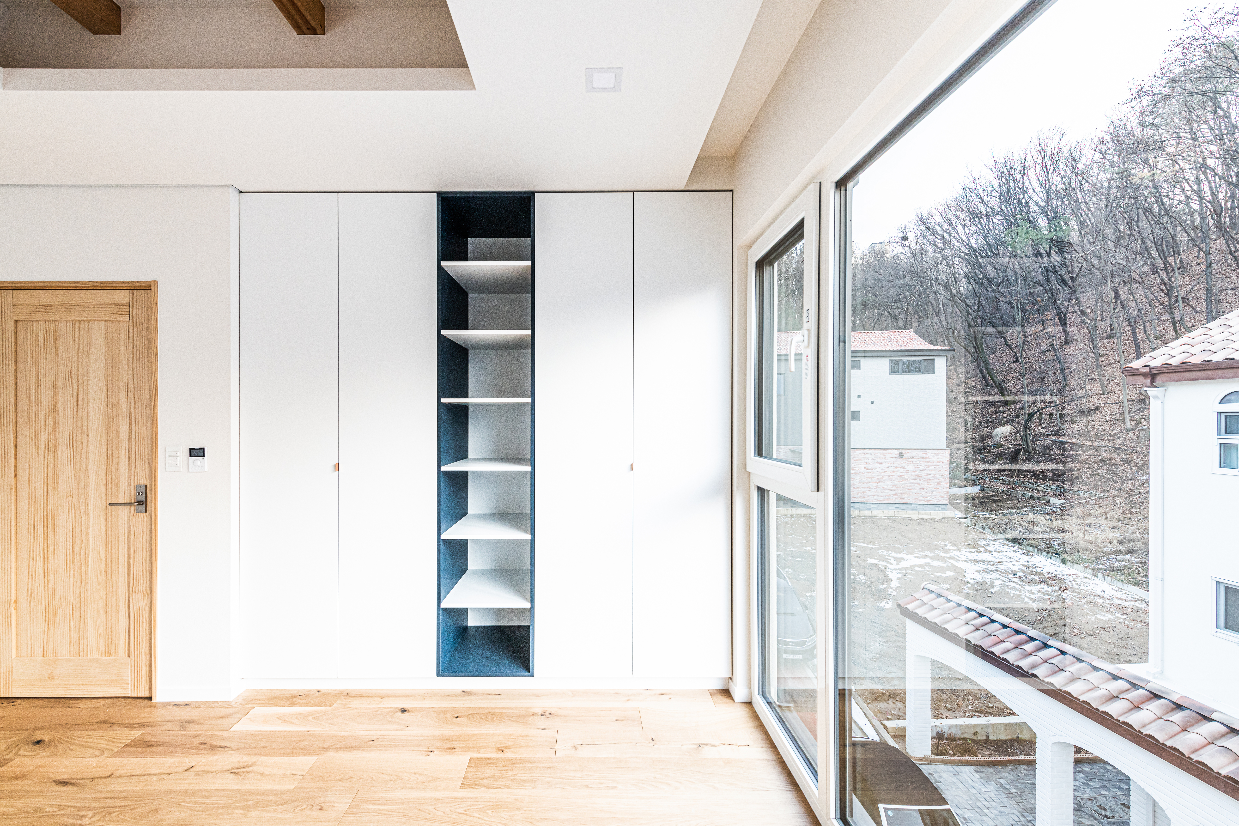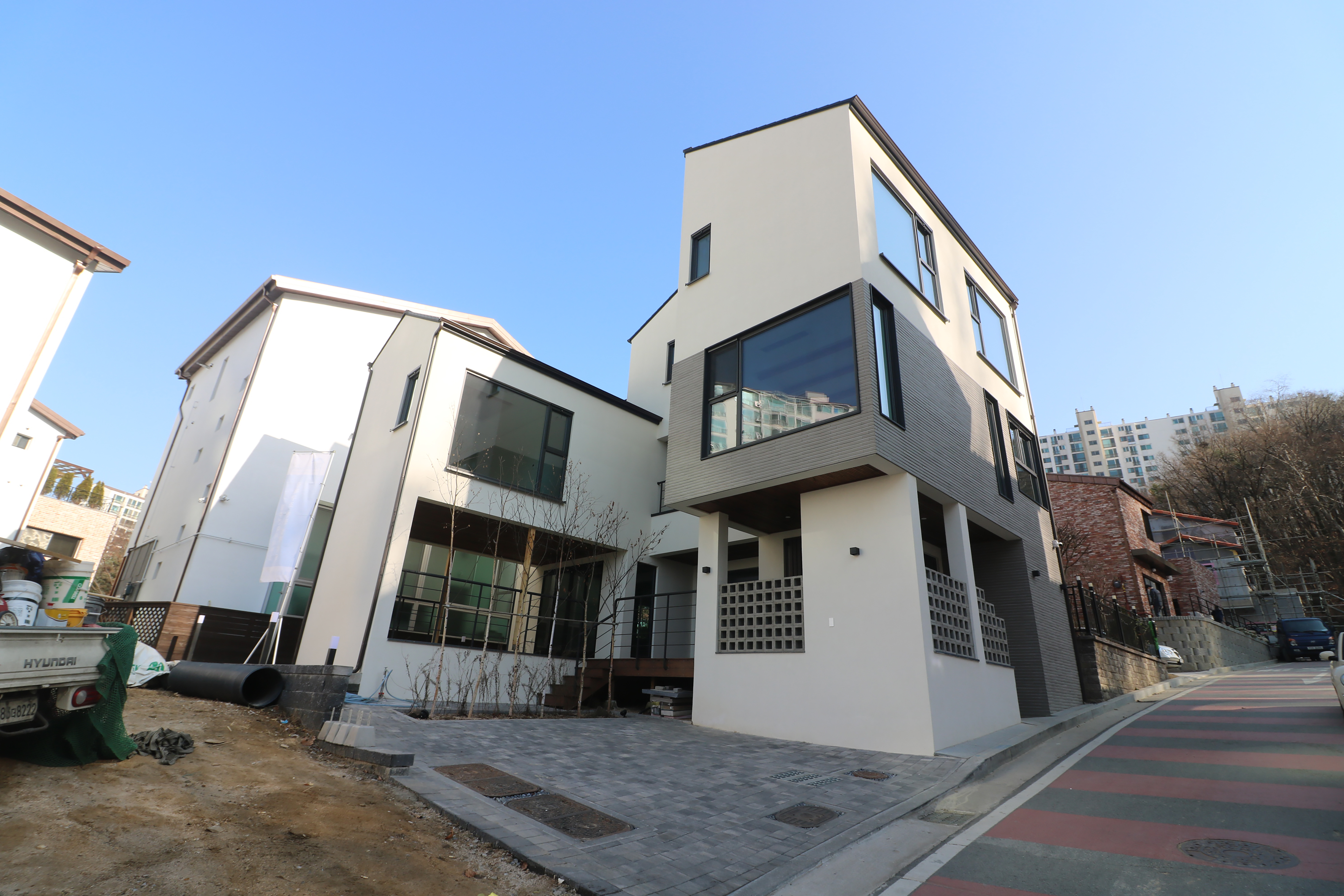 Yongin #6 is located in an urban townhouse located at the foot of Mt. Bora in the Bora housing district near the Korean Folk Village. Due to the guidelines for the complex in the first type district unit planning zone, the color and shape of the house form a sense of unity as a whole. Although it is a city center, it is on a slope surrounded by Mt. Depending on the design, it is a location where you can enjoy nature and the view at the same time. The architect did not miss this part. The completed house has a wonderful view towards the city center and the charm of being able to see nature through the road between the houses in front.