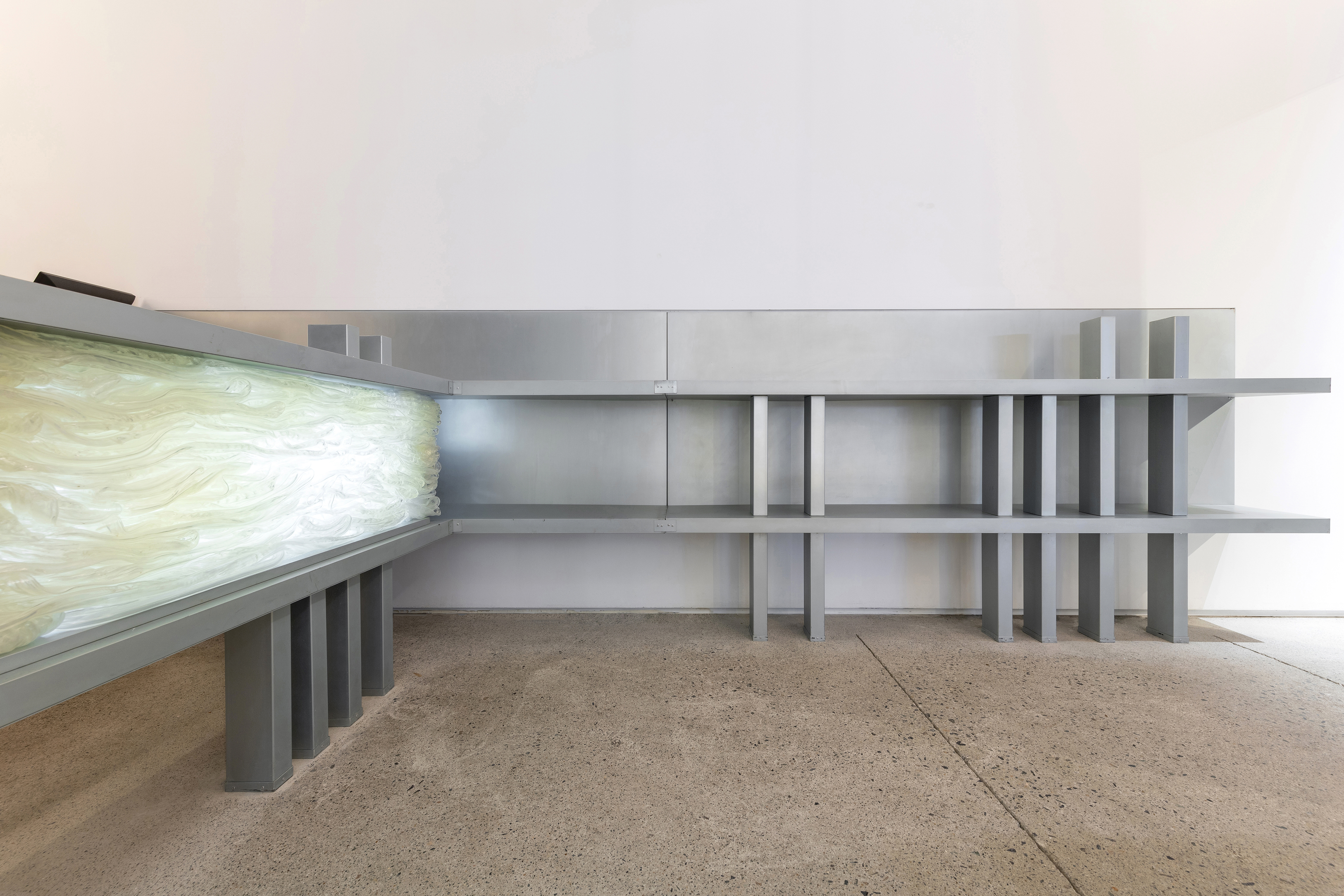 가로수길 뒷편에 위치한 강남 시장 골목은 많은 음식점과, 주점, 까페로 가득한 곳이고, 오래된 노포에서부터 트렌디한 가게들까지 다양한 종류의 상업공간들이 한데 섞여있는 곳이다. 너무 상업공간의 밀집도가 높았기 때문에 숨쉬기조차 힘들 것 같은 이 거리에서 우리는 길을 가는 사람들에게 여유를 주고 위치한 건축물의 존재감을 드러낼 수 있는 방향으로 접근하고자 했다. 먼저 콘크리트 건축물의 입면 구조를 그대로 1층까지 드러낼 수 있도록 파사드를 구조화해서 정리하고 이를 통해 건축물이 가진 느낌 (강남 시장 골목에서 드물게 스케일을 가진 건물이다)을 길을 지나는 사람들에게 느낄 수 있게끔 하고자 했다. 좁은 실내의 특성상 톤앤 매너를 다양하게 가져가는 대신, 시그니처 아이템인 스콘과 베이커리 제품들을 드러내는 곳에만 오가닉(Organic)한 형성을 사용해 작업하는 강영민 작가의 오브제들로 가구를 구성했고, 이를 통해 밖에서 지나가면서 보더라도 한 눈에 내부의 구조를 알 수 있도록 의도했다. 스툴, 테이블 같은 가구 역시 건축물의 외부 흐름을 그대로 동일시하여 디자인하고 제작했고, 작가의 오브제, 커스터마이징 된 가구 등을 통해 아티장 베이커리가 가진 특징을 고객이 고스란히 느낄 수 있기를 바라는 의도가 들어있다. 테라스는 외부에 있지만 내부에서 봤을 때 연속성을 가지고 내부 공간과도 같은 느낌을 갖게 한다. 이는 내외부의 동일한 마감 사용을 통해 좁은 공간임에도 불구하고 건축적인 스케일을 체감할 수 있도록 고안한 포인트이다.