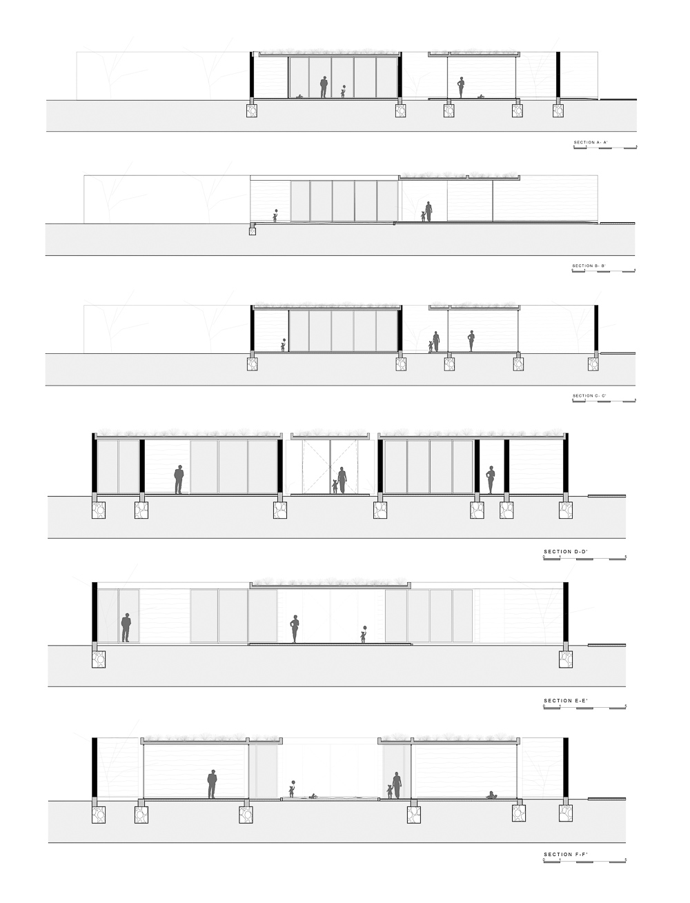 이 센터는 4개의 넓은 공간으로 구성되어 있다. 2개의 큰 교실은 다시 2개로 세분화되며 식당과 관리 구역으로 나뉘다 양옆의 파티오로 구성된 공간은 시각적으로 환경과 소통하여 교실이 폐쇄적인 공간이라는 편견을 없앤다. 아이들의 놀이공간 역할을 하는 중앙 마당은 앙상블의 중심이 된다. 다양한 연령대가 만나, 놀면서 배우고 배우기 위해 놀 수 있는 여러 질감과 재질로 이루어진 장소다.