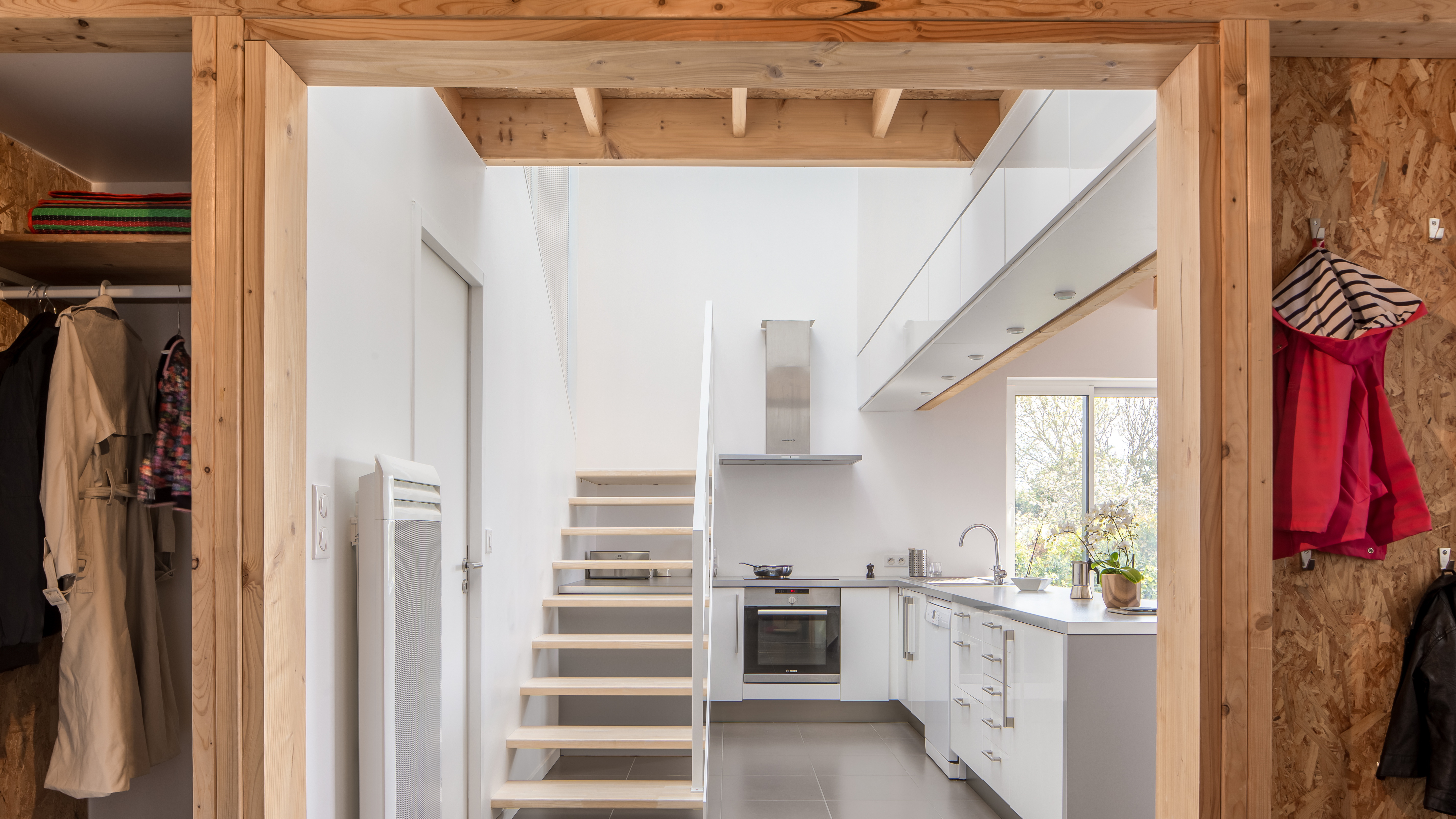 집을 구성하는 다양한 재료는 서부의 연필향나무 클래딩, 혼합 슬레이트/아연 지붕, 흰색 벽 코팅 및 검은색 스테인드 목재 등 주변 색상 및 요소의 다양성과 함께 메아리친다. 기능적 배치는 생물기후학적 설계 원칙과 부지의 조건을 기반으로 한다. 북쪽의 주차장은 음향 및 기후 스크린을 생성하고 주요 공간은 남쪽의 바다를 향하며 침실은 동쪽을 향한다. 집의 중앙에는 채광 창을 설치하여 대부분의 공간에 자연광을 들이고, 계단을 따라 있는 철망은 위의 구름의 움직임과 함께 계속 변화하는 투명도를 제공한다. 이 매우 특정한 철망은 현지 어부들이 조개를 잡기 위해 사용하는 것이다. 내부에서 드러나는 목재 구조는 건설 과정을 완벽하게 제어하기 위해 디지털 방식으로 사전 제작되었다.