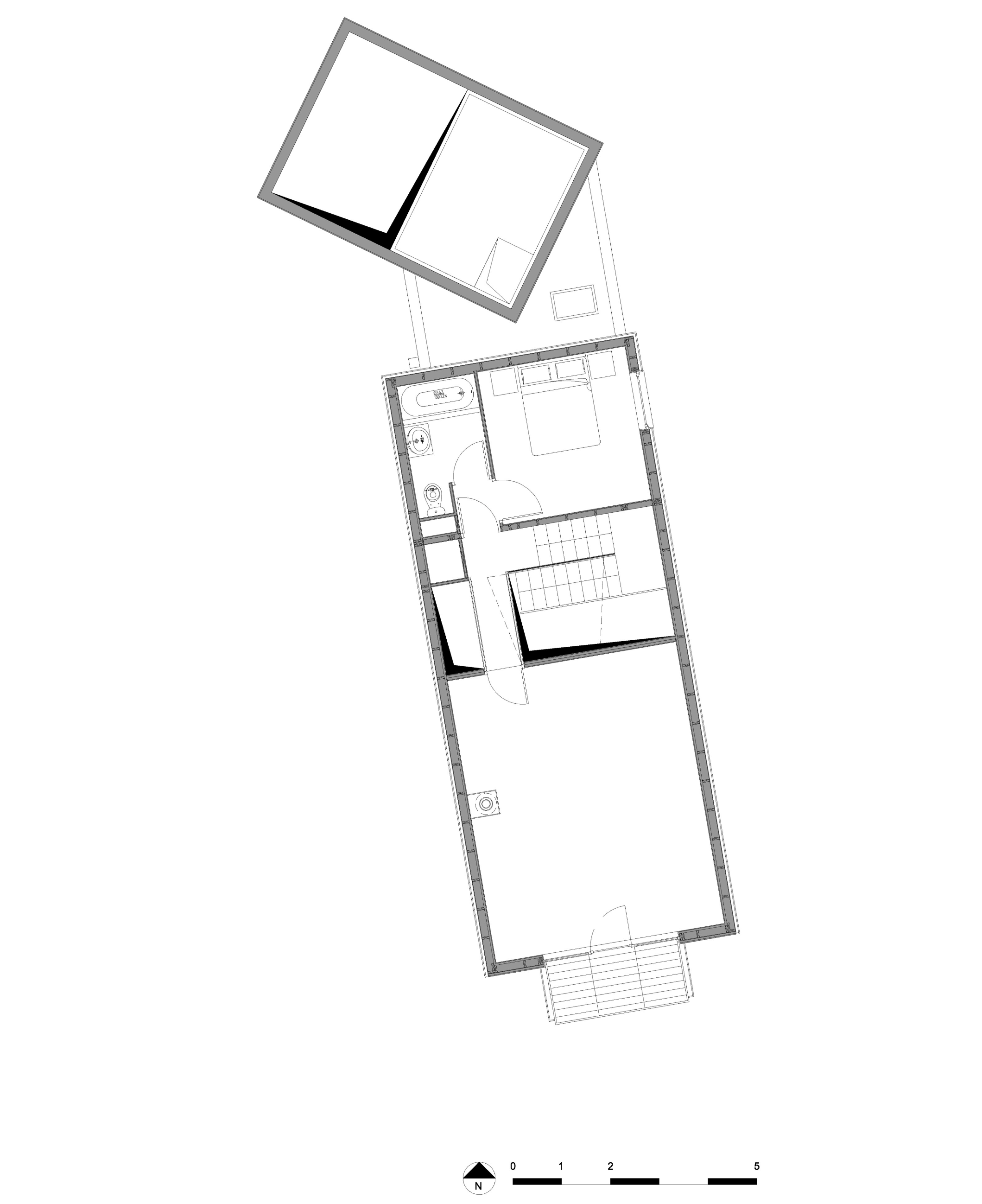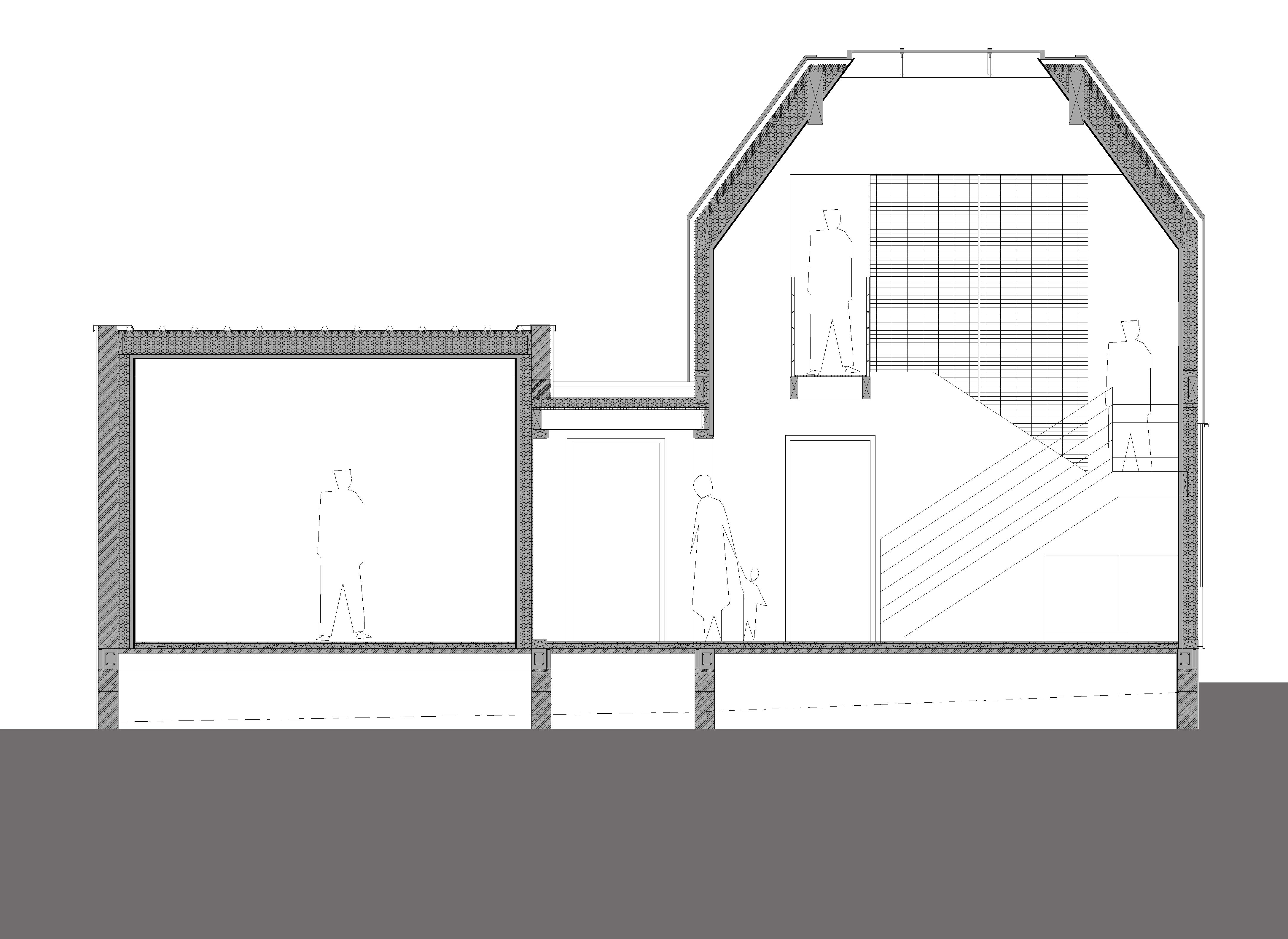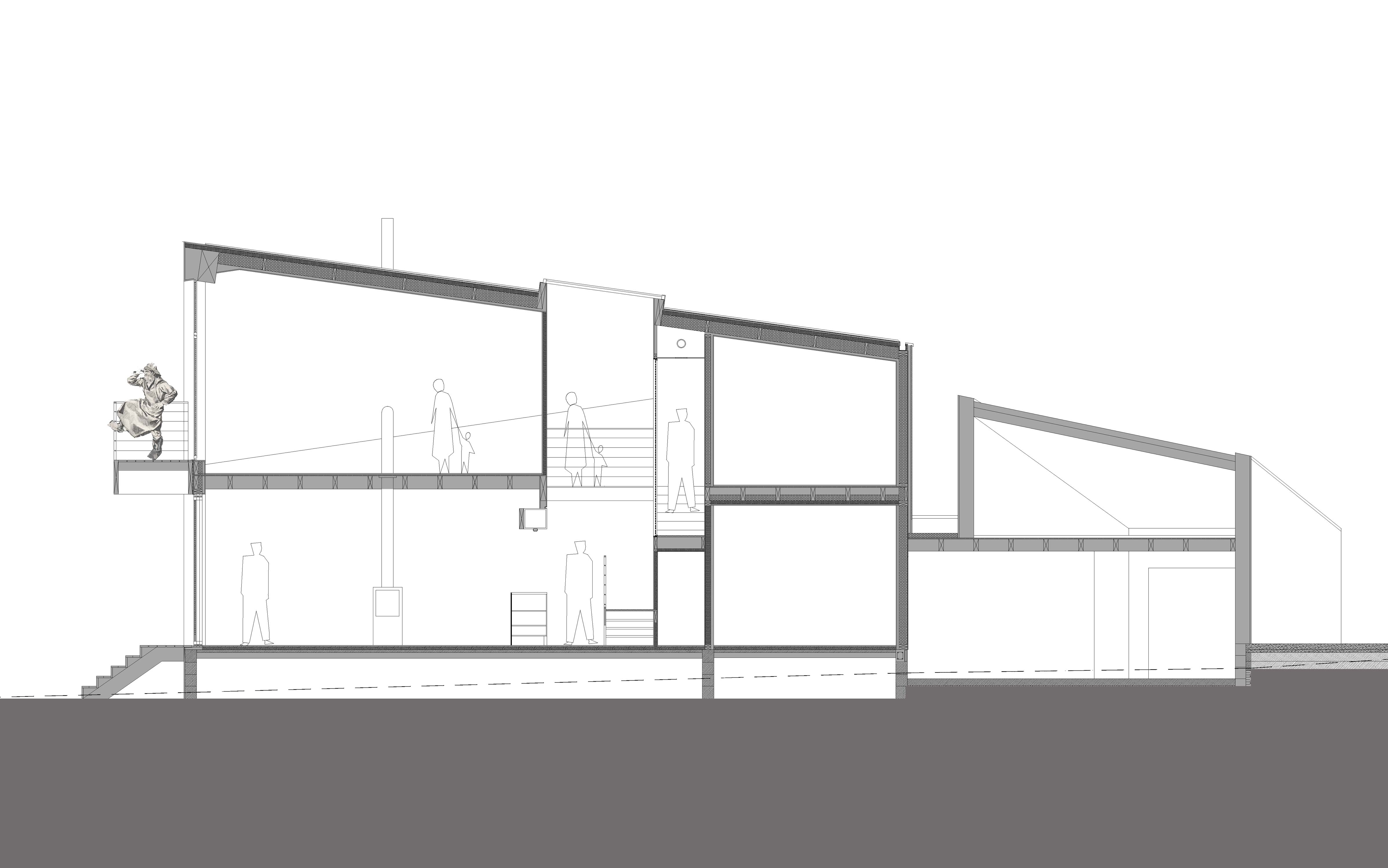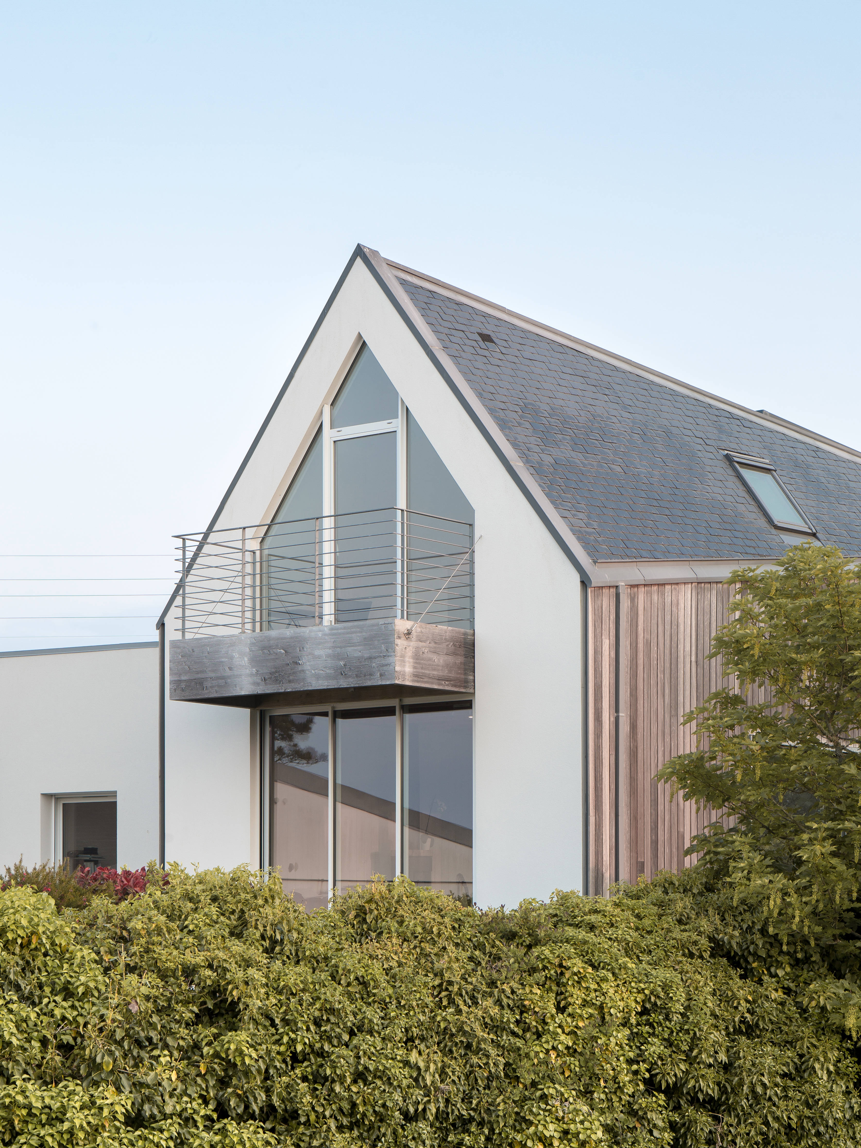 이 프로젝트는 블록의 가장자리이자 마을 입구에 있는 좁고 불규칙한 대지에 위치하고 있다. 위치의 특성을 고려할 때 전통적인 소형 주택은 주변 경관에 강한 영향을 미치게 된다. 따라서 건축가는 집을 세 개의 볼륨으로 나누기로 하고, 각 볼륨은 토지 구획의 한쪽 가장자리와 평행하도록 했다. 헛간과 같은 목조 구조의 본관이 아래에 위치하고 두 개의 낮은 블록이 토지의 상부를 차지한다. 3개 면으로 된 슬로프 지붕과 여러 층은 건물의 크기를 최소화하면서 공간을 최적화하여 주변 경관에 미치는 영향을 최소화하면서 바다 전망을 제공한다. 지역 전통 헛간 주택을 단순히 재해석하는 것 이상으로, 이 프로젝트는 매우 독특하고 불규칙한 토지와 광범위한 건축 유형을 가진 특정한 도시 조직에 대한 해답이다. 이 프로젝트는 역동적이며, 프로젝트의 관점은 지속적으로 변한다. 남쪽에서 보면 전통적인 헛간 가옥이 반향을 일으키고 북쪽에서 보면 매우 현대적인 라인을 보여준다.