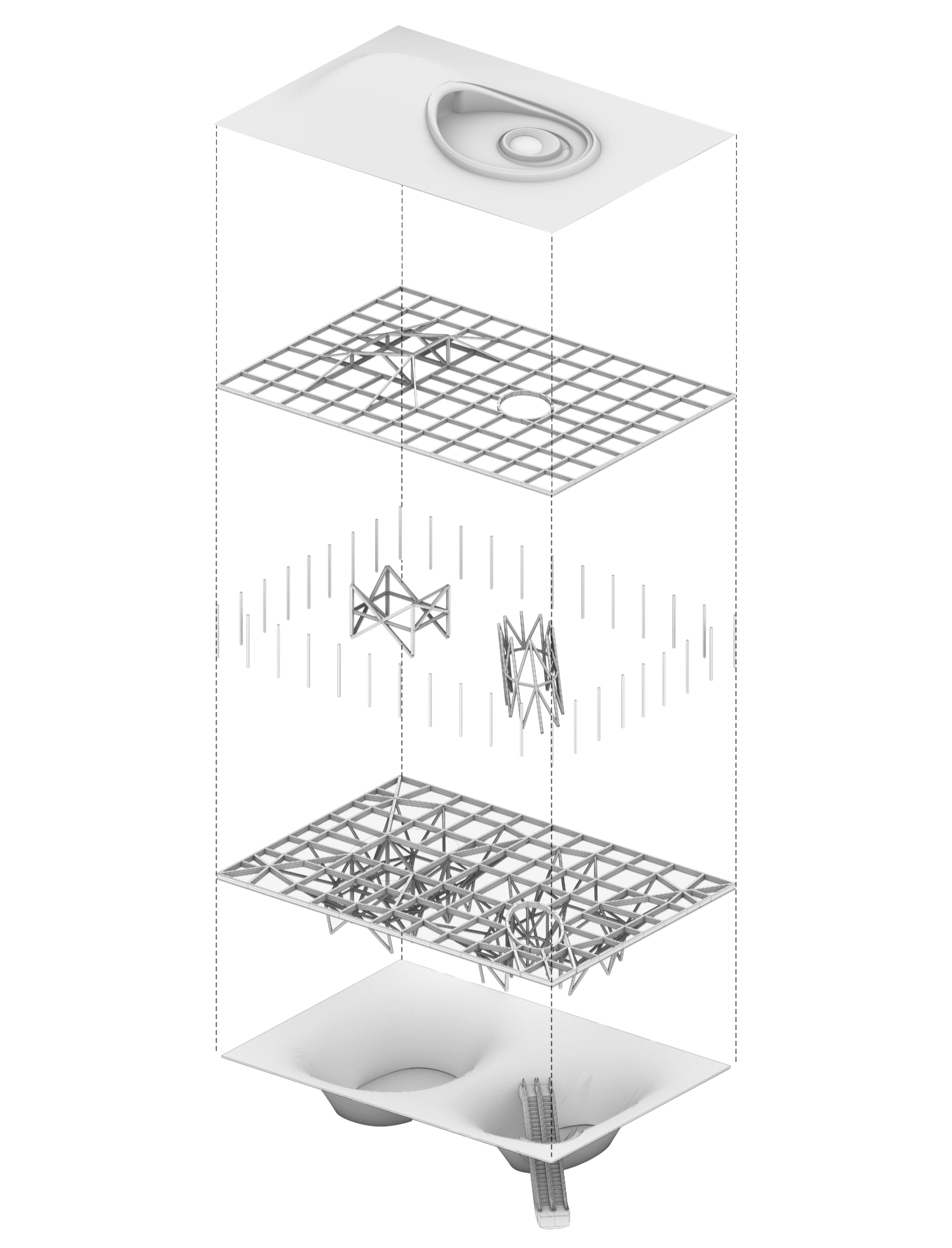 The sculptural quality of this building not only creates an identifiable presence for the new district, but also a unique immersion experience for the residents and visitors alike. The contrast between the complexity of organic base and simplicity of the upper volume is coherent with the duality of Chinese architecture tradition: the integration of the artificial intervention with nature. To achieve the sculptural quality and surface effect of the lower portion for the building, a combination of digital fabrication with local crafts were experimented to produce precast GFRC panels. The mass and weight of the lower portion reference local historical city wall and gateway. The sculptural base of the community center features a dynamic surface of rippling effect to emanate tactile and sensory experience. The upper portion of the community center is wrapped around with curved high performance low-iron glass unit, forming a light-filled interior space for community gathering and activities.
