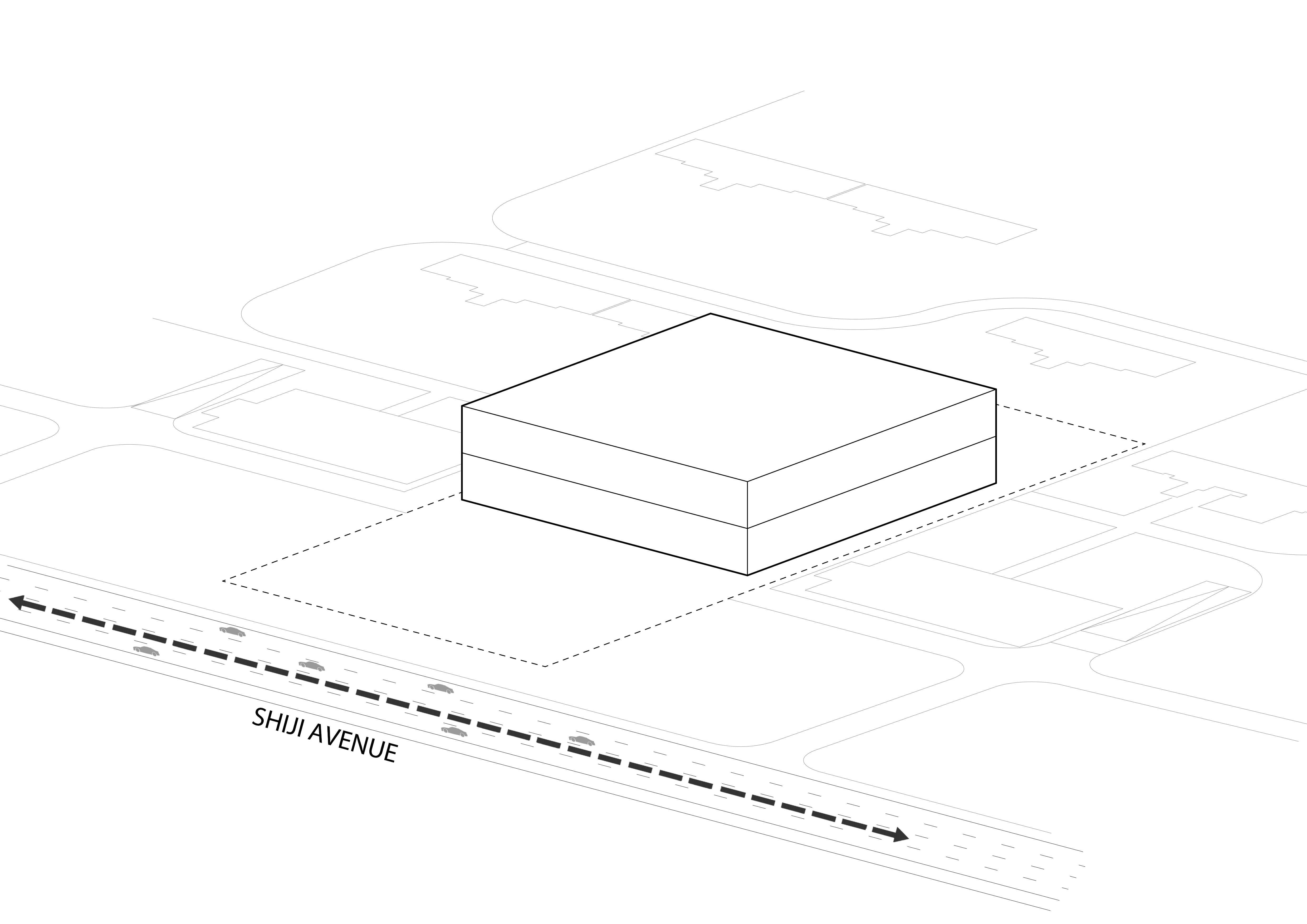 Beyond the scope of community center itself, the LAND project is designed as an urban structure which aims to provide intimate pockets of public space. Land Community Center hovers over the entry plaza of the residential neighborhood along the main boulevard of Fengdong district. By elevating the gallery, exhibition space and community service center above ground, this community center frees up more open space for the neighborhood, providing a civic place for casual gathering and communal activities. The gravity-defying structure offers pedestrian friendly protection from extreme weather conditions such as harsh sunlight and rain. The landscaped plaza can be accessible for residents of the neighborhoods nearby.