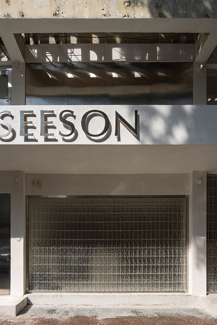 SEESON의 플래그십 스토어는 사이공 유산의 가장 중요한 축 중 하나인 Nam Ky Khoi Nghia 거리의 오피스 빌딩 1층에 위치하고 있다. 남키코이응아, 후인 툭캉, 파스퇴르, 르로이의 4개의 중앙 거리로 둘러싸인 이 블록은 프랑스 빌라, 공화국 시대의 건물, 상업용 건물 등 다양한 시대의 여러 층이 공존하는 도시 퇴적물로 가득 차 있다. 도시 건물의 건축 자체는 60년대와 70년대 남베트남의 근대 건축 운동의 상징이기도 하다. 다양한 시간의 개입에 의해 변형된 건물의 원래 외관을 복원하는 것, 대부분의 사람들에게 영향을 미칠 수 있는 개입을 최소화하는 것, 그리고 건물의 구조, 다양한 수준의 표면 침투가 가능한 재료의 미장센에서 자연광을 주요 요소로 사용하는 것이 프로젝트의 건축적 의도이다. 소리와 촉감을 사용하여 도시 공간에 휴식을 만들고자 프로젝트는 시작되었고, 직접적이거나 미세하거나, 찬란하거나, 부드럽게 반짝이는 빛의 흔들림을 억제하고, 들쭉날쭉하거나 투명한 표면을 통해 움직일 때, 비로소 체감의 진동을 일으키게 한다.