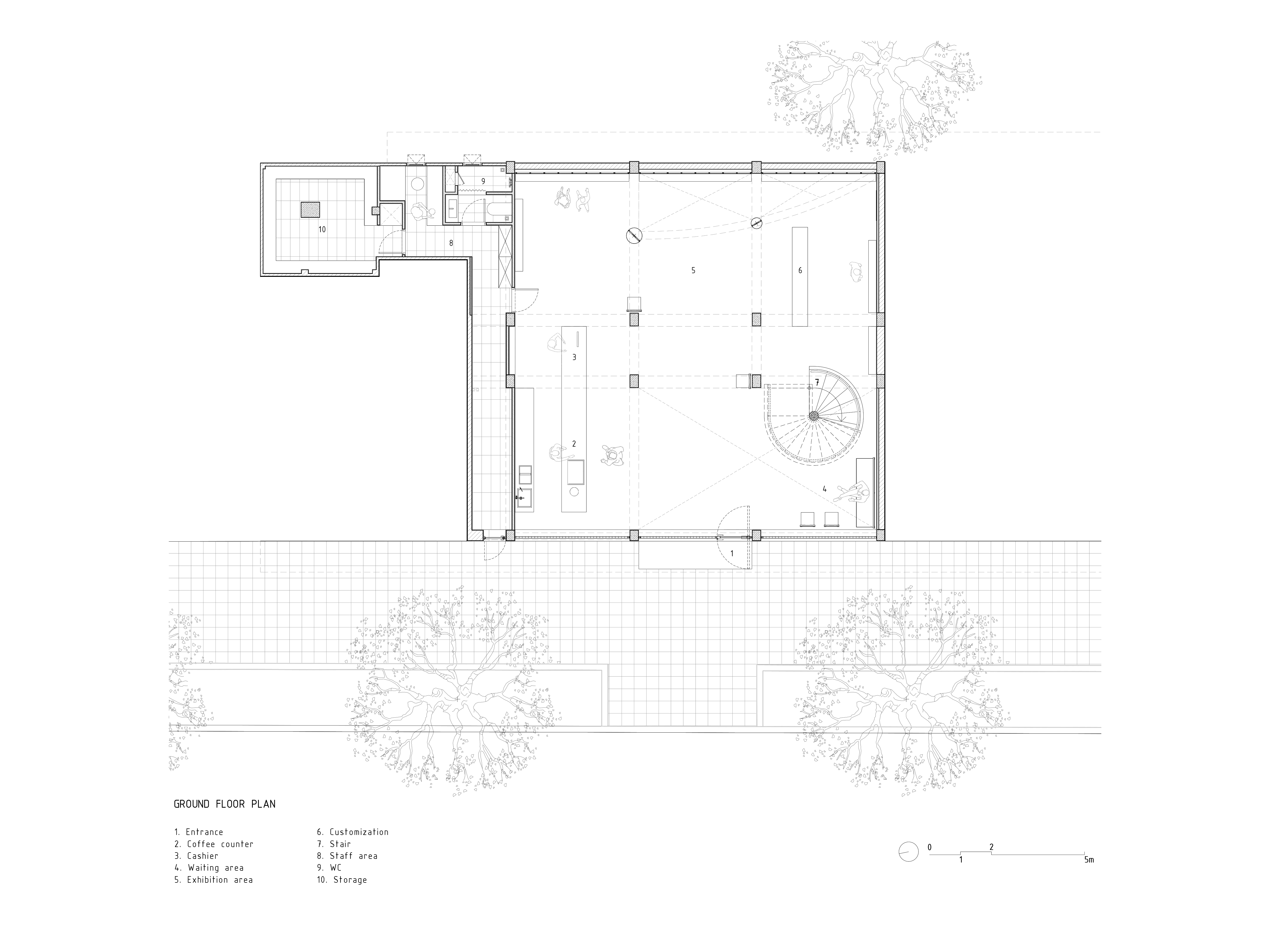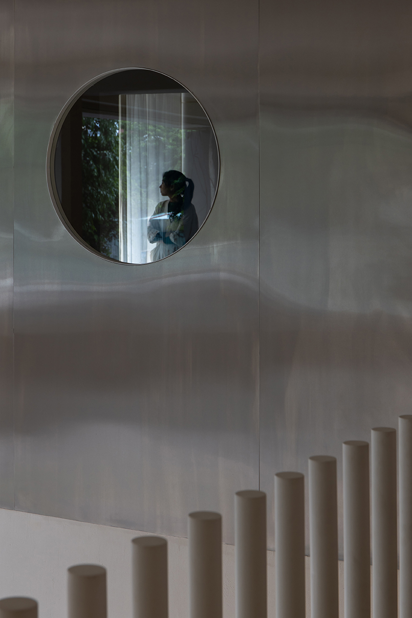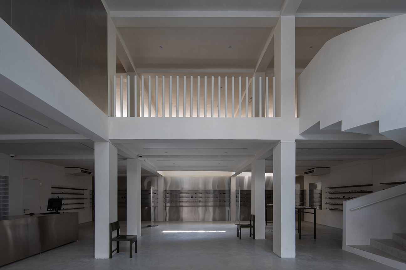 Our renovation of SEESON’s flagship store is located on the ground floor of an office building on Nam Ky Khoi Nghia street, one of the most important axes of Saigon’s heritage. The block, bounded by the four central streets of Nam Ky Khoi Nghia, Huynh Thuc Khang, Pasteur and Le Loi, is filled with urban sediments, the co-existence of multiple layers of various eras, including French villas, Republic-era buildings, commercial buildings. The architecture of the building itself is also emblematic of the Modern Architecture movement in South Vietnam in the 60s and 70s, characterized by the combination of concrete materials and a rational, solid framework, an interweaving between the language of Modernism and traditional brise-soleil details. In such a context, the work of revealing and creating dialogues, or the increasingly rare openings for the memories of the city to emerge, is the architectural intention of the project: to restore the original facade of the building which has been transformed by various interventions of time; to minimize interventions that would affect the main structure of the building; to use natural light as a main element in this mise-en-scène of materials that carry different levels of surface penetration. Our motivation is to create a break in the urban space, using sound and touch, as we uncover a dimension of memory; to arrest the vacillations of light that is either direct or scattered, brilliant or softly sparkling, as it moves through jagged or transparent surfaces; to evoke the vibrations of the body as it moves through a dream world between the virtual and the real.