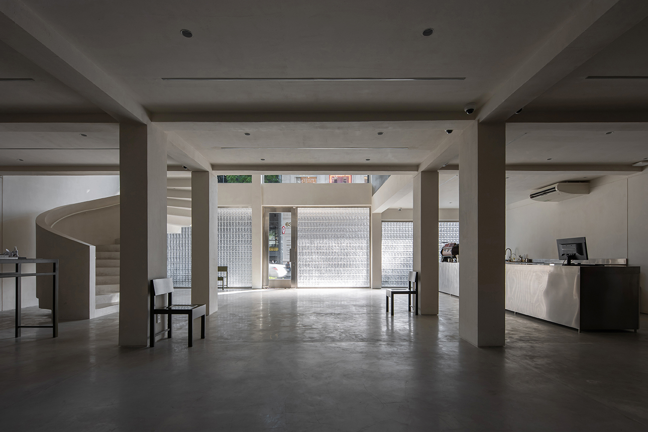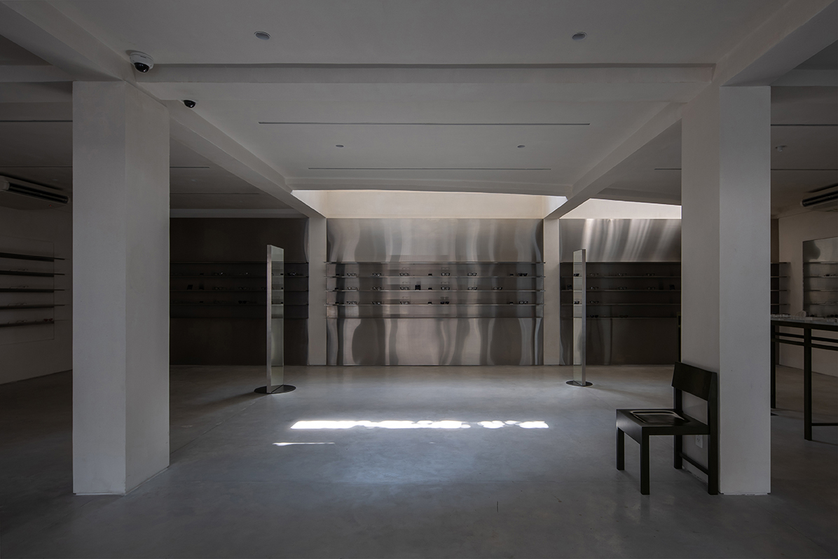 Our renovation of SEESON’s flagship store is located on the ground floor of an office building on Nam Ky Khoi Nghia street, one of the most important axes of Saigon’s heritage. The block, bounded by the four central streets of Nam Ky Khoi Nghia, Huynh Thuc Khang, Pasteur and Le Loi, is filled with urban sediments, the co-existence of multiple layers of various eras, including French villas, Republic-era buildings, commercial buildings. The architecture of the building itself is also emblematic of the Modern Architecture movement in South Vietnam in the 60s and 70s, characterized by the combination of concrete materials and a rational, solid framework, an interweaving between the language of Modernism and traditional brise-soleil details. In such a context, the work of revealing and creating dialogues, or the increasingly rare openings for the memories of the city to emerge, is the architectural intention of the project: to restore the original facade of the building which has been transformed by various interventions of time; to minimize interventions that would affect the main structure of the building; to use natural light as a main element in this mise-en-scène of materials that carry different levels of surface penetration. Our motivation is to create a break in the urban space, using sound and touch, as we uncover a dimension of memory; to arrest the vacillations of light that is either direct or scattered, brilliant or softly sparkling, as it moves through jagged or transparent surfaces; to evoke the vibrations of the body as it moves through a dream world between the virtual and the real.