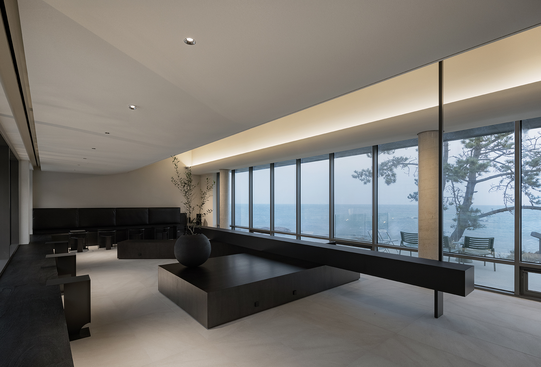 It also paid attention to the regional nature of out-of-town areas. It was necessary to have a composition to enjoy a comfortable rest and watch the sea outside the crowded city center of the sea. The shape of the space is simple, but visually, the background of the gaze becomes a landscape.