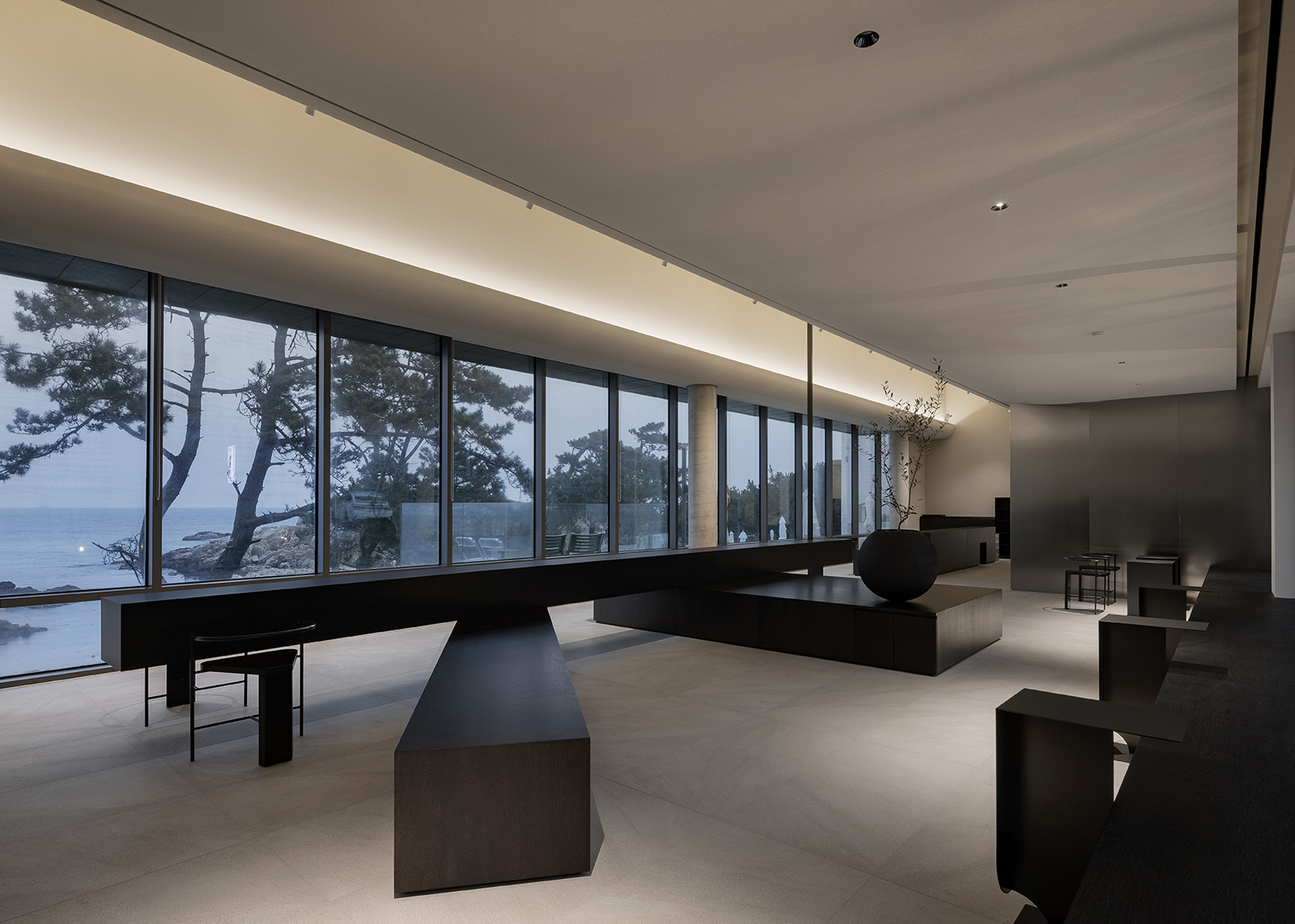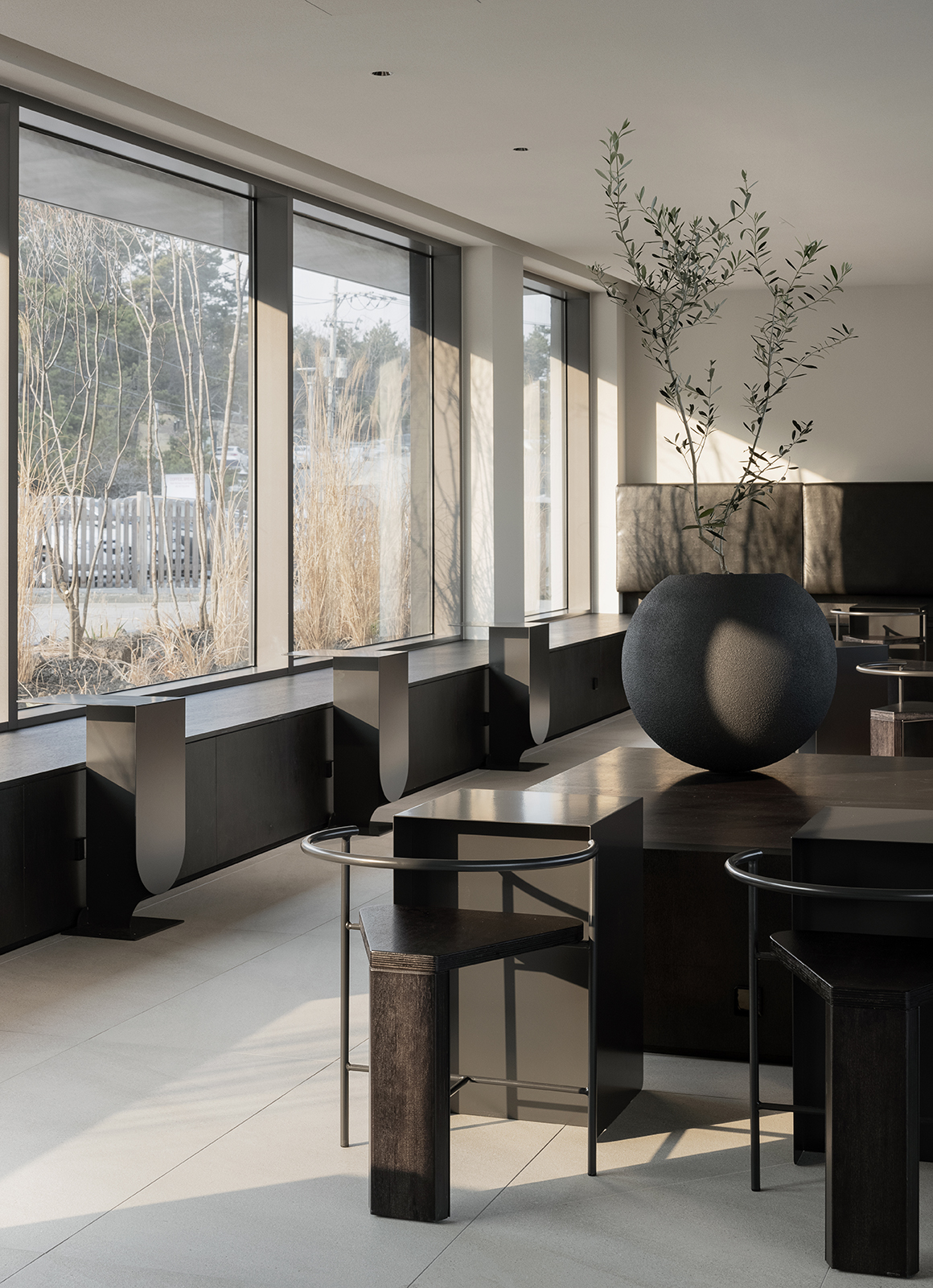 시외 지역이란 지역성에도 주목했다. 복잡한 도심을 벗어나 편안한 휴식을 즐기며 바다를 관망하기 위한 구성이 필요했다. 공간의 형태는 단순하되 시각적으로 시선의 배경이 풍경이 되도록 하였다.