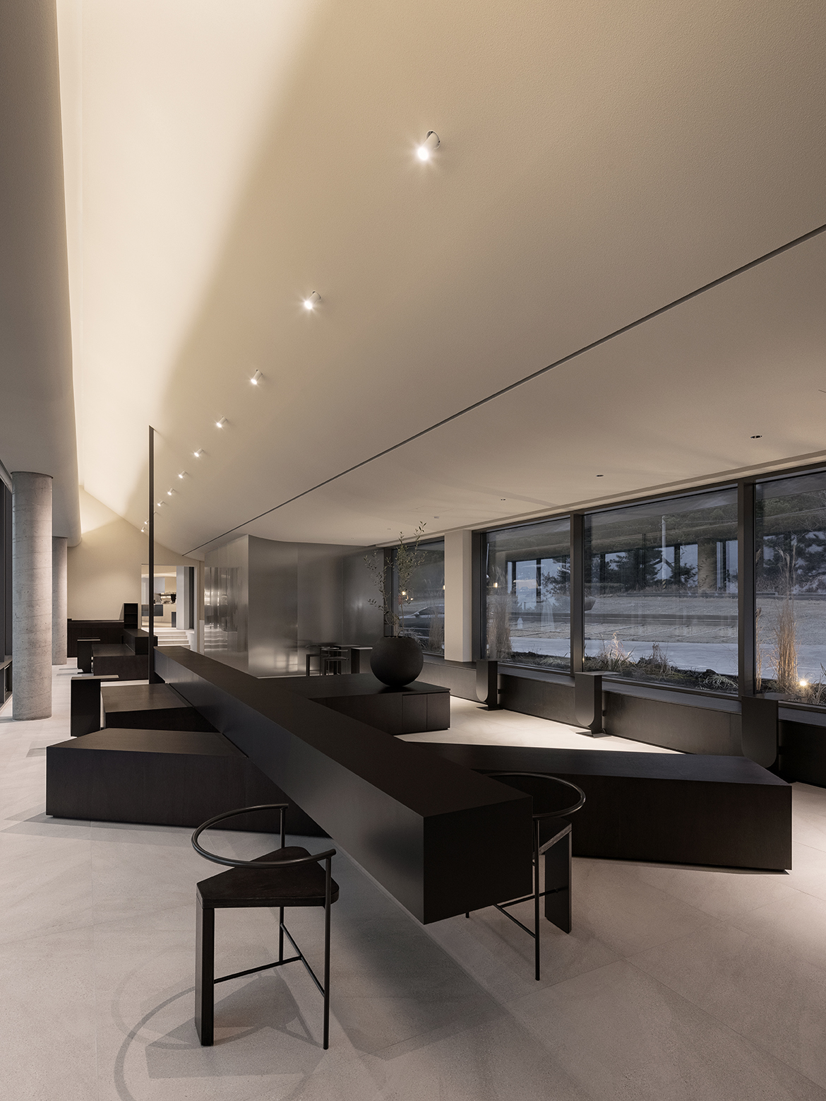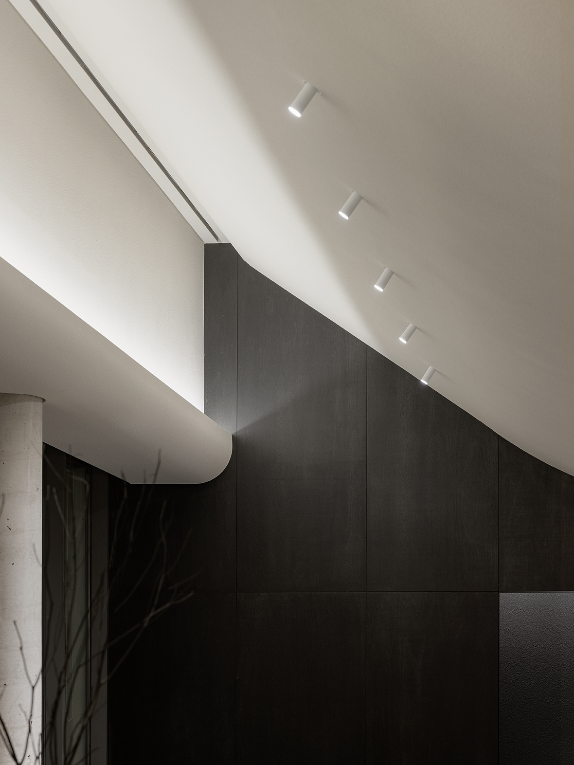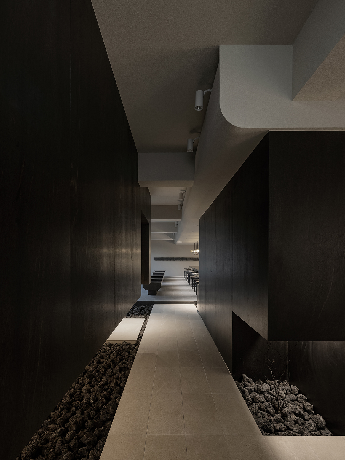 The existing space consisted of a simple straight line. We formed a curved ceiling to create a soft and comfortable atmosphere. In order to create a comfortable and minimal atmosphere without being complicated, the basic elements of the figure using dots, lines, and surfaces were expressed three-dimensionally in each of the three separate buildings.