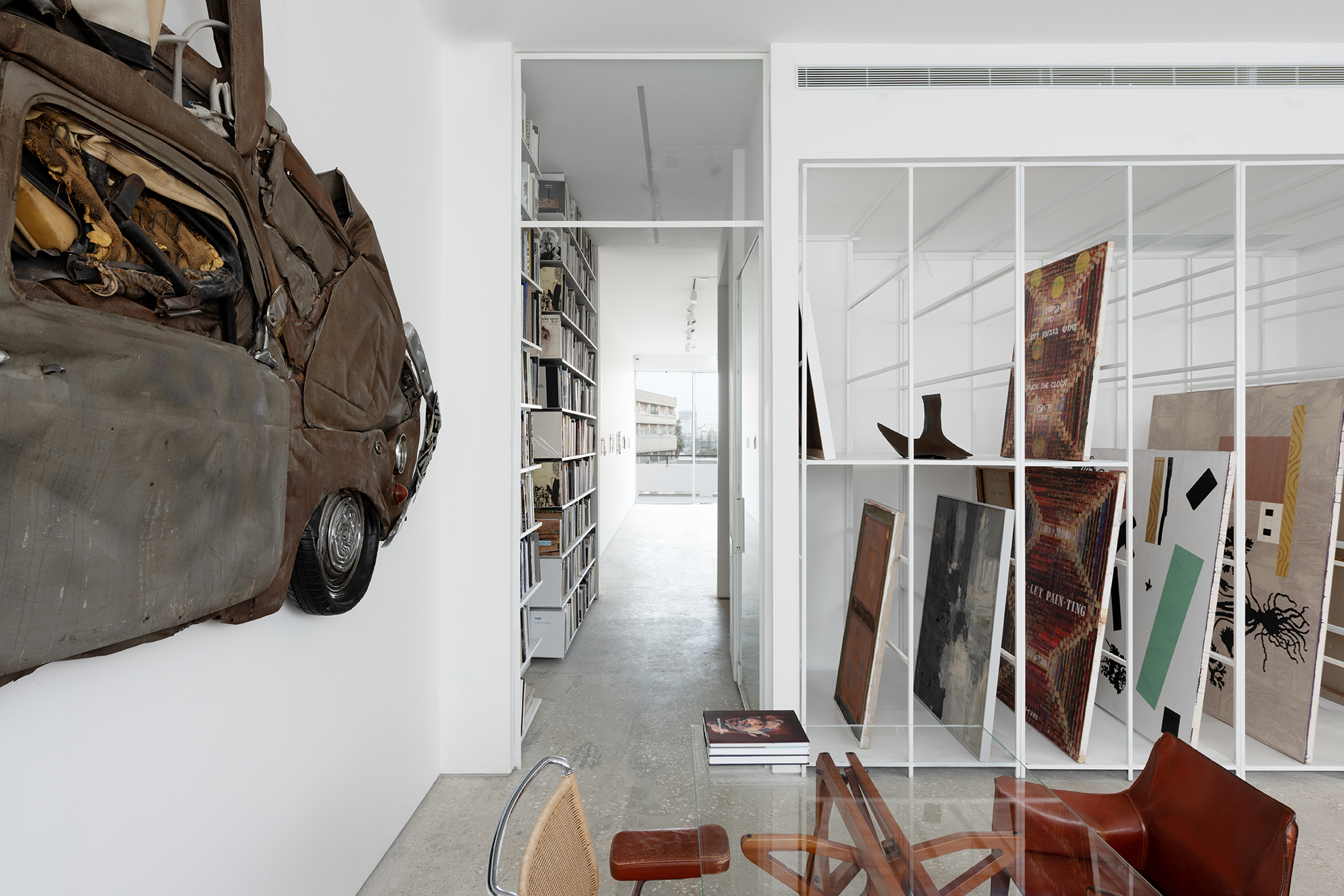 The old façade was dismantled, and replaced by transparent glass, framed in steel and with a semi transparent curtain behind it. Time spent in the gallery is undisturbed and calm but is not detached from its surroundings. The depth of the corridor prevents the entry of direct sunlight, which illuminates the front display areas with softened light. The gallery and its unique exhibits are now open to a wide corridor which runs along the length of the entire building, inviting passers-by to enter. The gallery has a distinct presence in the industrial area. It both illuminates and is visible from a distance, but is not separated from or alien to the Sapir Center.