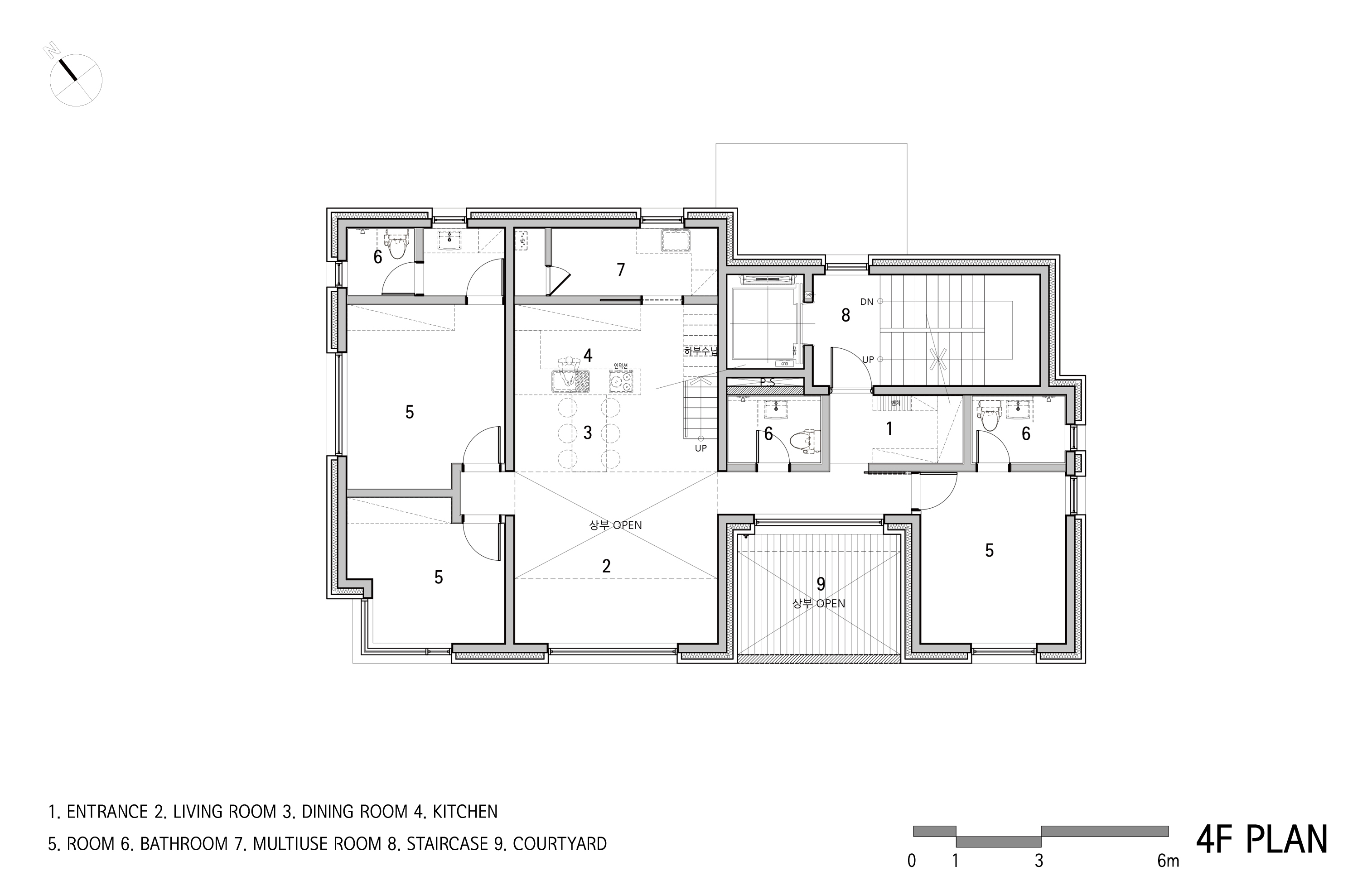 주인세대의 경우 부모님과 함께 사는 주택이지만, 각자의 프라이버시를 고려하여 공간을 분리했다. 기존의 단독주택 마당 역할을 하는 4층의 중정은 세대 간의 프라이버시를 위한 공간이면서 가족들이 모이는 공간으로도 활용할 수 있도록 했다.