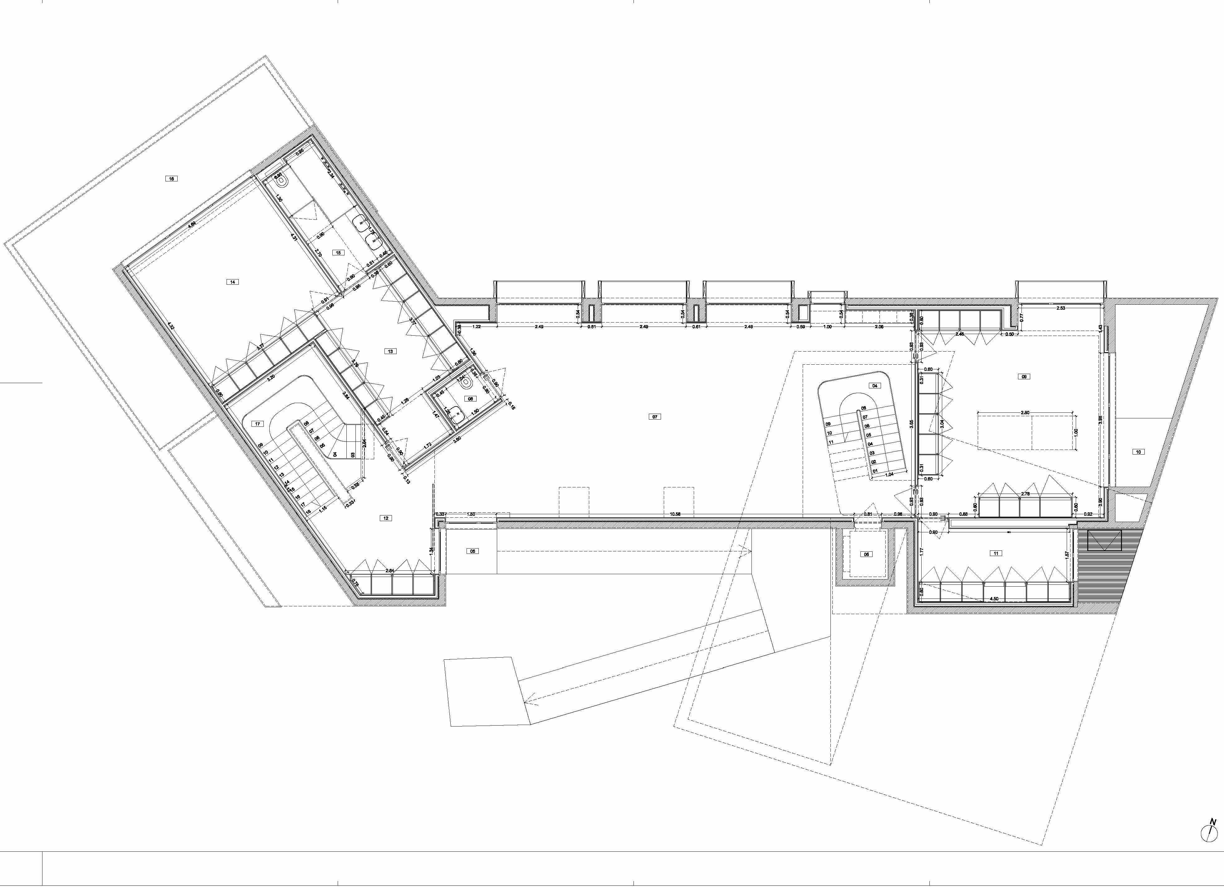 The features of the house are developed over three different floors, facing North and descending the land, following and\ ‘traversing’ the unevenness that it offers, in a coherent functional hierarchy in height, and whose spatial progression is made in a descending direction, that is: functional area, social area and private area.