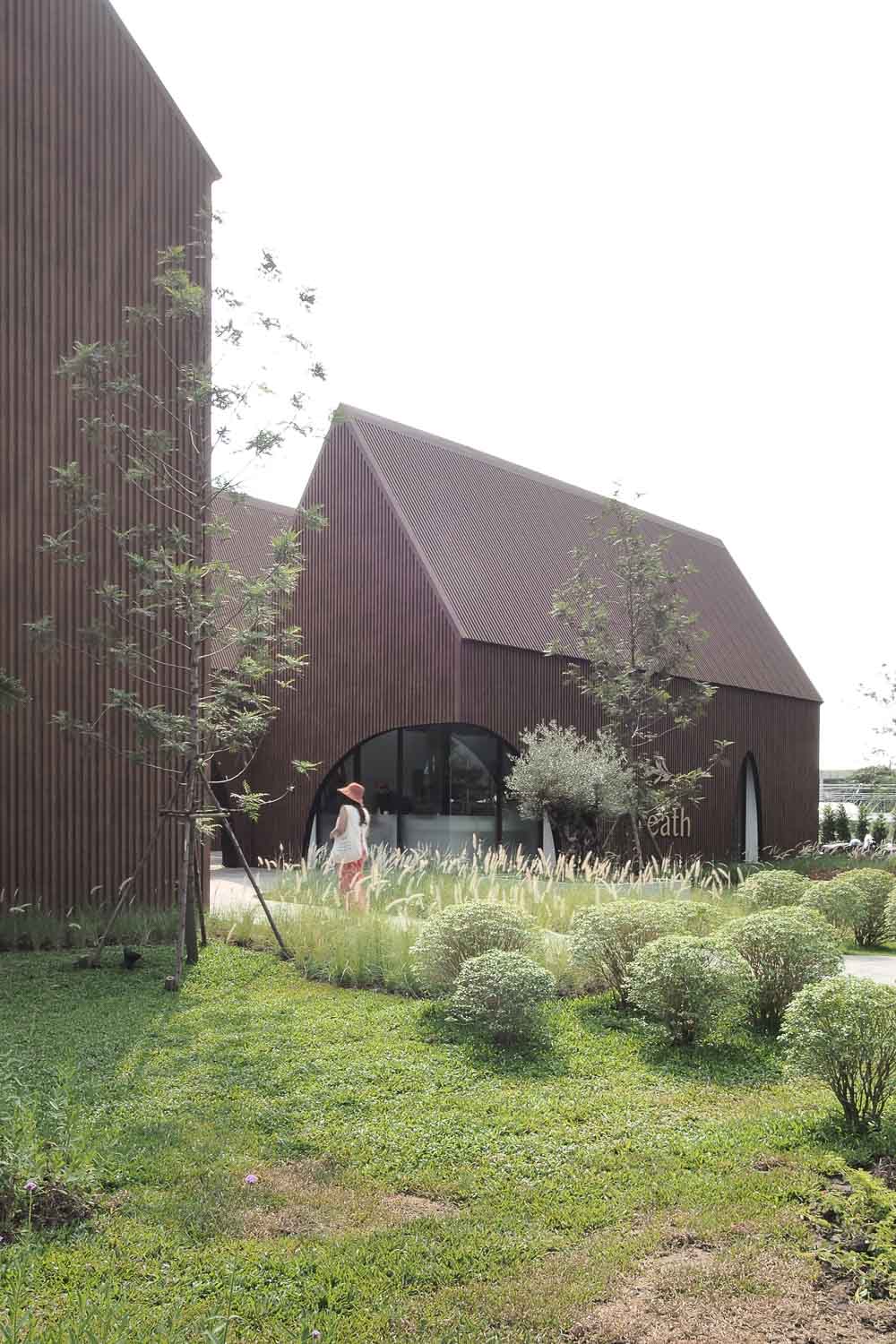 ‘테이크 어 브레스 카페’는 숲 속 헛간에서 영감을 받은 프로젝트로, 3개의 건물로 나누어진 프로젝트다. 각 공간은 기능에 따라 나뉘었는데, 가장 먼저 눈에 들어오는 높은 종탑과 카페, 레스토랑, 주방으로 구성된다.