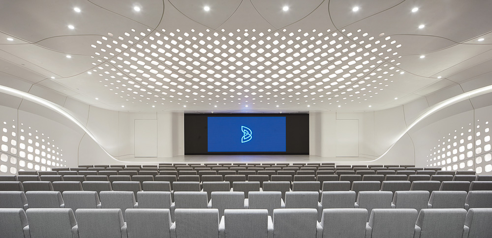 Visitors enter beneath the 15m high dome which further enhances natural ventilation and allows passive daylight to enter the building. In addition to the central courtyard and open-plan office, the headquarters incorporates smart meeting rooms, an immersive visitors center and an auditorium.